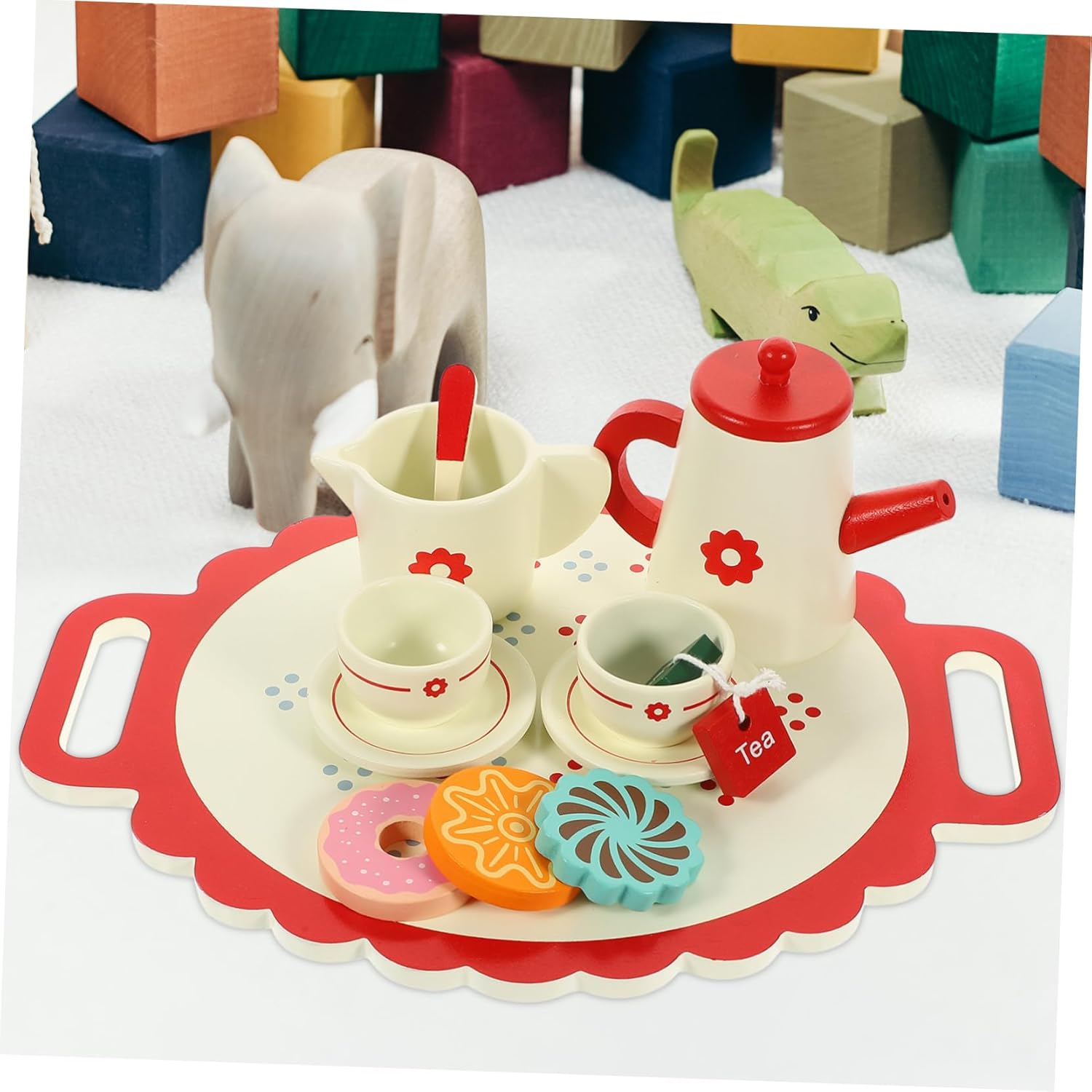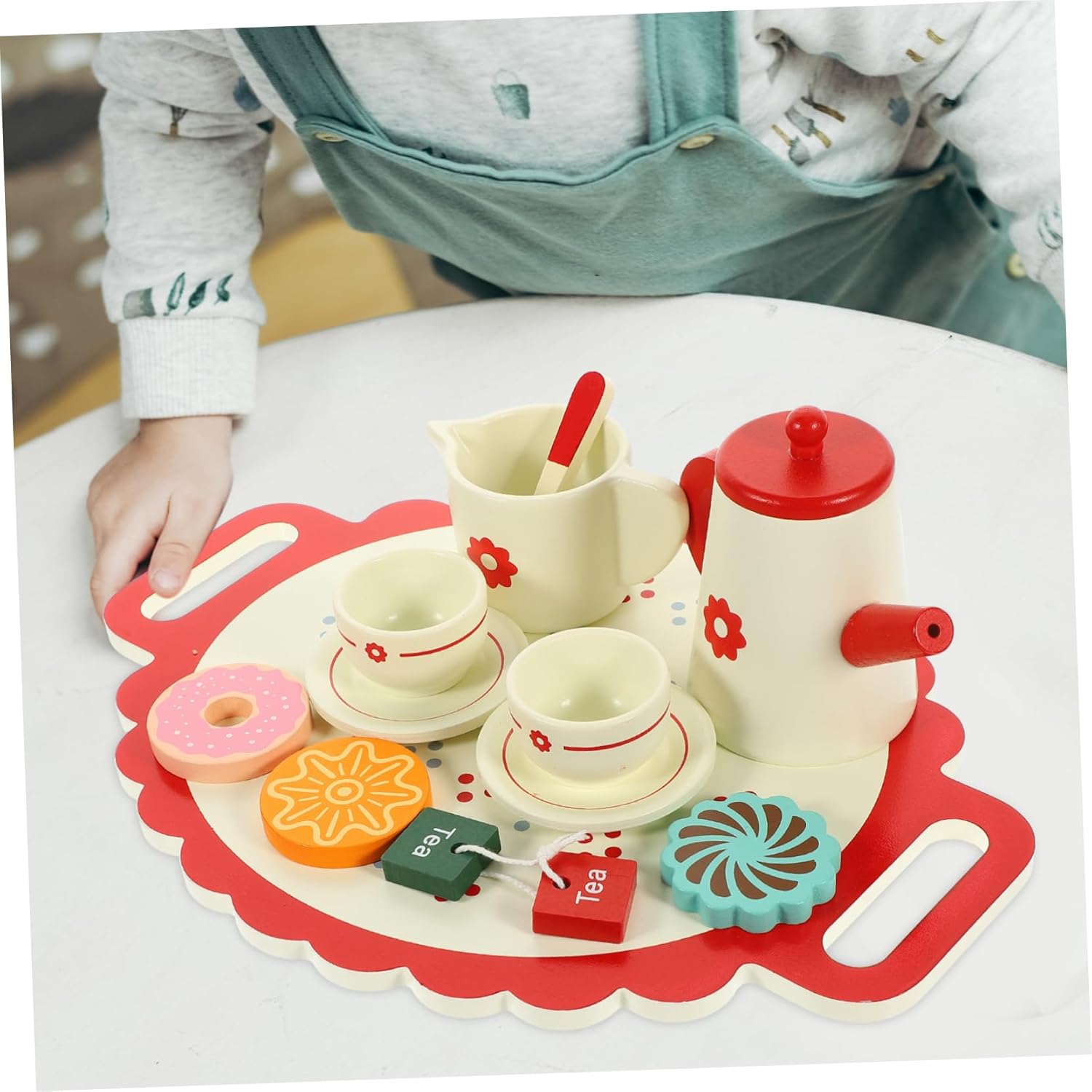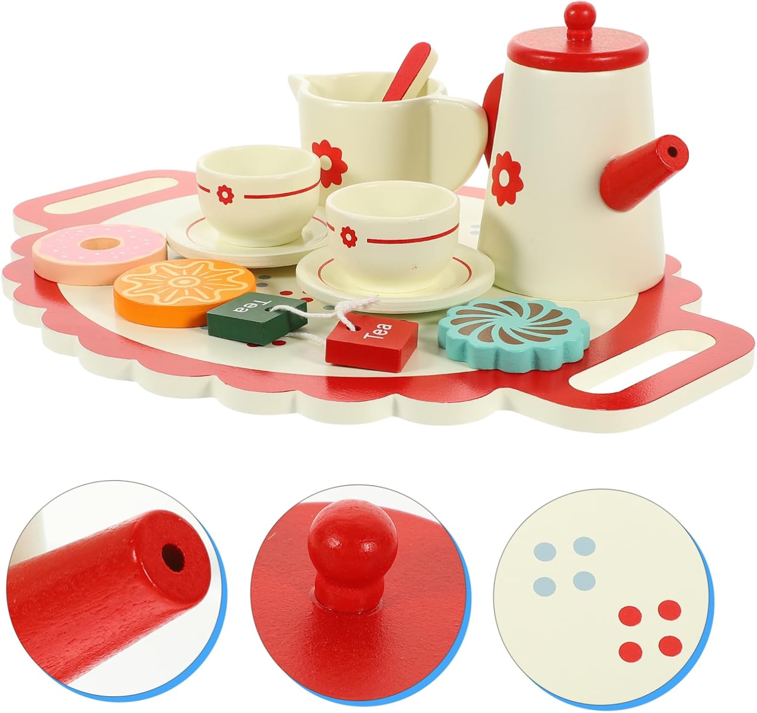 Teiera giocattolo: il set da tè giocattolo è realizzato in materiale di legno con bellissimi , che possono proteggere la vista dei bambini e aumentare la loro percezione dei , set da gioco per il tè pomeridiano Giocattoli per il tè pomeridiano: possono essere utilizzati anche come oggetti di scena per la fotografia, giocattoli per bambini, ornamenti da scrivania, realizzati artigianalmente, lisci e rotondi, senza sbavature, set da gioco per il tè pomeridiano. Set da gioco per il tè pomeridiano: progettato per il gioco di finzione, incoraggia i bambini a migliorare la creatività, le abilità sociali e l'immaginazione, giocattolo da tè Giocattolo da tè: ha un design semplice, ma è molto pratico da usare, offrendoti un set da gioco per il tè pomeridiano. La piccola decorazione può essere utilizzata come per parenti, amici, compagni di gioco e per te stesso.