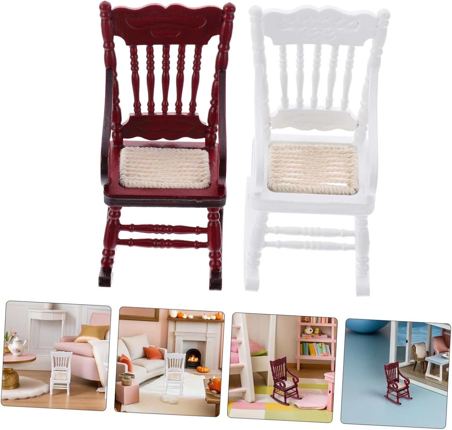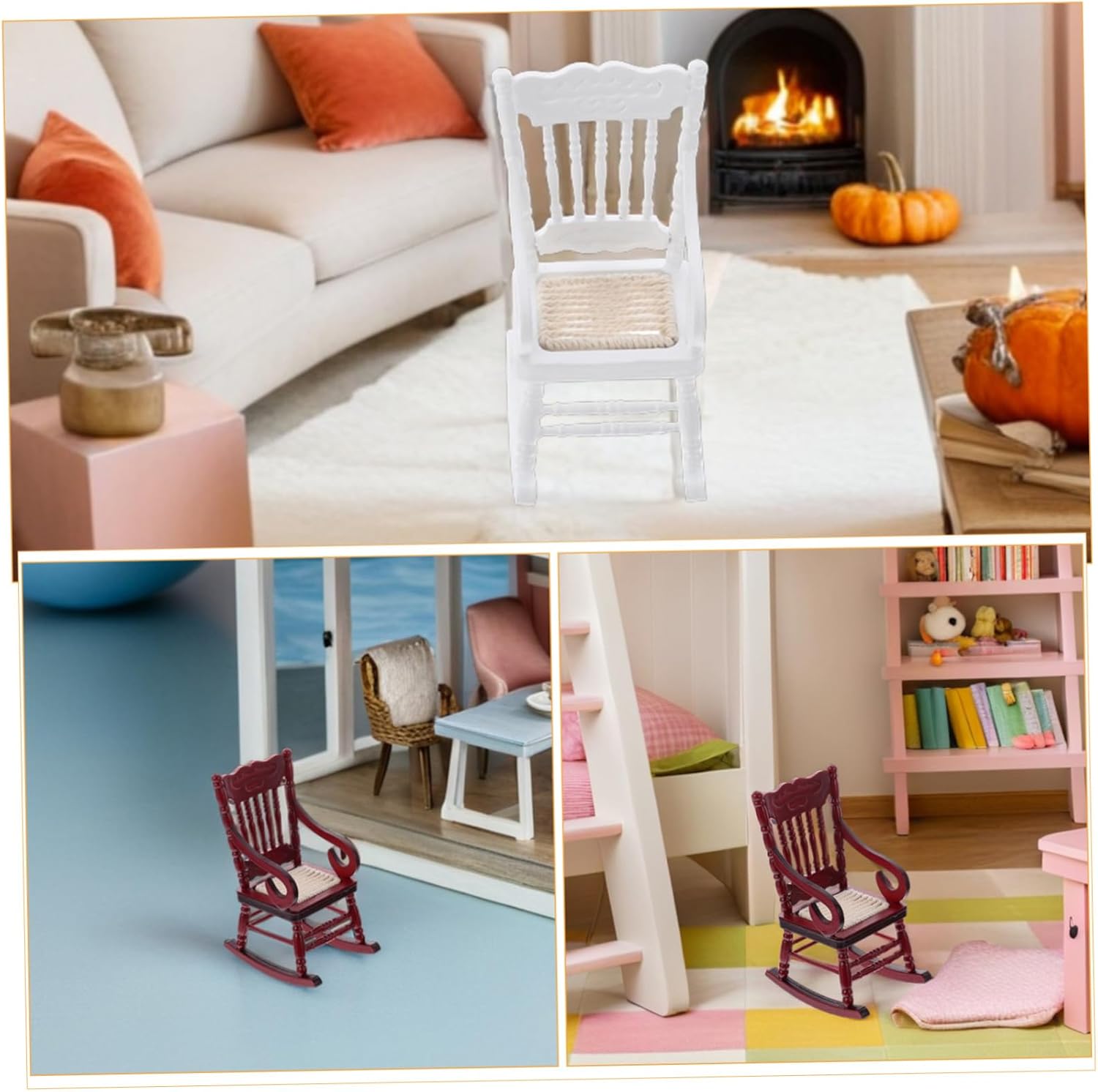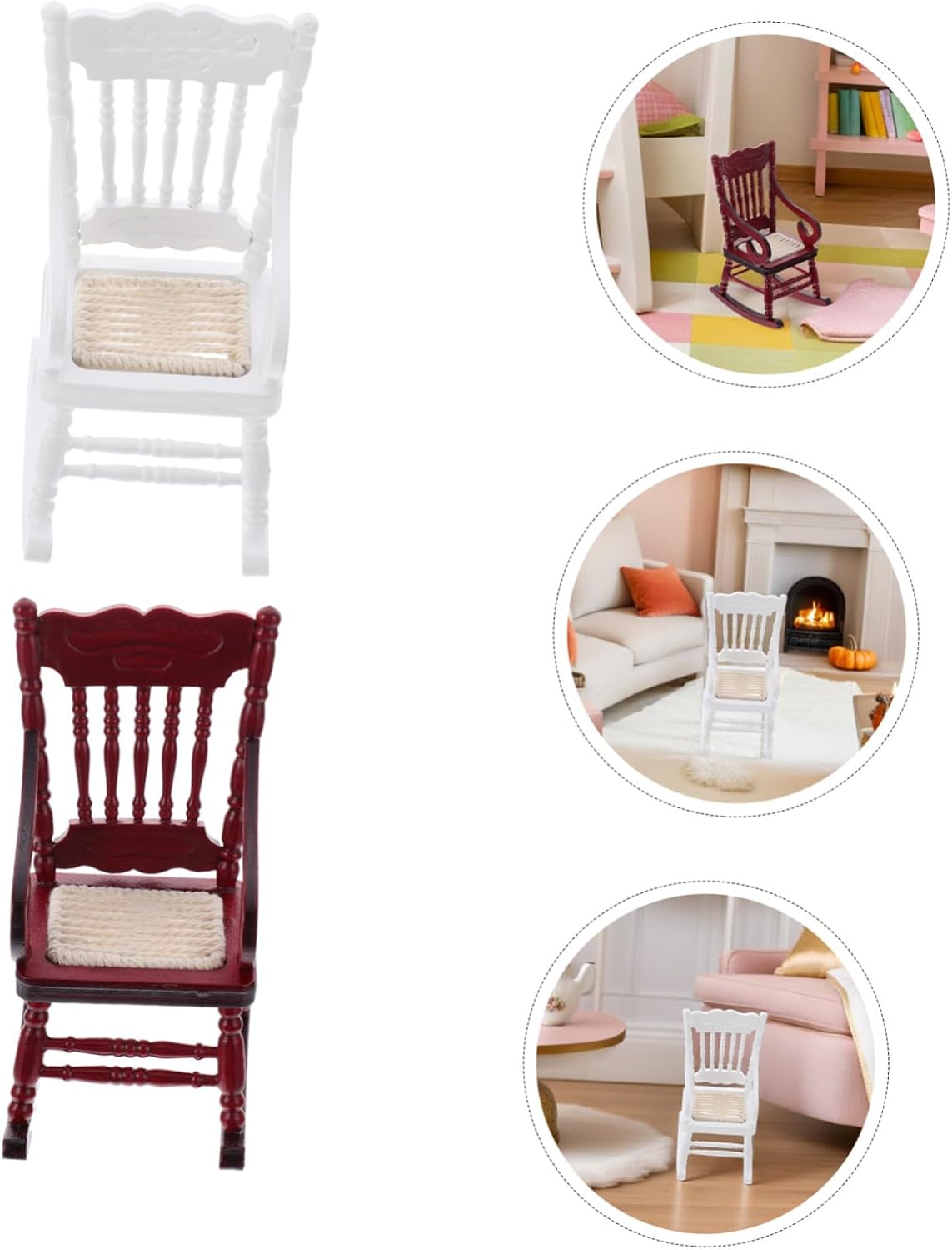 Uso multiuso: ottimo per decorare la casa delle bambole, il giardino delle fate o come mini mobile per progetti creativi fai da te e artigianato, mini sedia a dondolo per casa, piccoli oggetti di scena per il paesaggio Compatta e leggera: la piccola sedia a dondolo giocattolo è facile da maneggiare e posizionare, il che la rende una comoda aggiunta ai set di sedie a dondolo in miniatura per case delle bambole, mini sedia di simulazione, sedia a dondolo per case delle bambole Compatta ed elegante: la sedia a dondolo in miniatura è leggera ed elegante, il che la rende un'ottima aggiunta alle di sedie a dondolo in miniatura per case delle bambole o allestimenti di mobili per case minuscole, decorazioni per case delle bambole, mobili per case delle bambole Esposizione creativa: usa questa mini sedia a dondolo come accessorio per una poltrona in miniatura o come piccolo accessorio paesaggistico per migliorare la tua casa delle bambole o l'allestimento del giardino delle fate, mobili giocattolo per la casa delle bambole, accessorio per una poltrona in miniatura Dettagli realistici: l'intricato design di questa sedia a dondolo in miniatura per casa delle bambole aggiunge fascino e realismo, rendendola un pezzo eccezionale in qualsiasi set di mobili per casa delle bambole, decorazione di paesaggi in miniatura, sedie per casa delle bambole