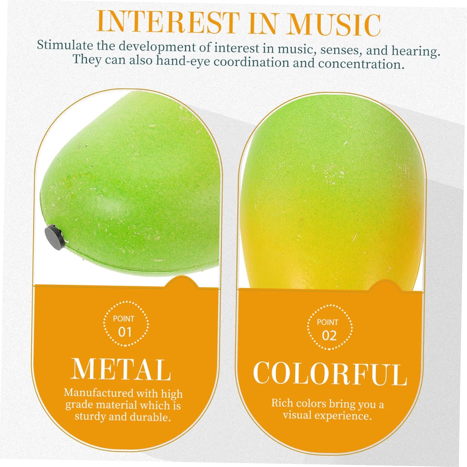 Giocattoli di simulazione musicale di frutta: stimolano lo sviluppo dell'interesse per la musica, i e l'udito, migliorano anche la coordinazione occhio-mano e la concentrazione, giocattolo di percussioni musicali di frutta Strumento a percussione a forma di frutta: questo strumento a percussione per la frutta ha dimensioni compatte, rendendolo facile da tenere e suonare per i , strumento a percussione musicale a forma di frutta Frullatori per frutta durevoli: l'eccellente lavorazione del nostro prodotto vi regalerà uno strumento musicale shaker Strumenti di progettazione di frutta simulata: lavorazione meravigliosa e garanzia di dettagli raffinati, giocattolo a percussione musicale per Strumenti musicali per : lo strumento a percussione musicale a forma di frutta può anche coltivare la coordinazione occhio-mano e la concentrazione di una persona, giocattolo per strumenti musicali per