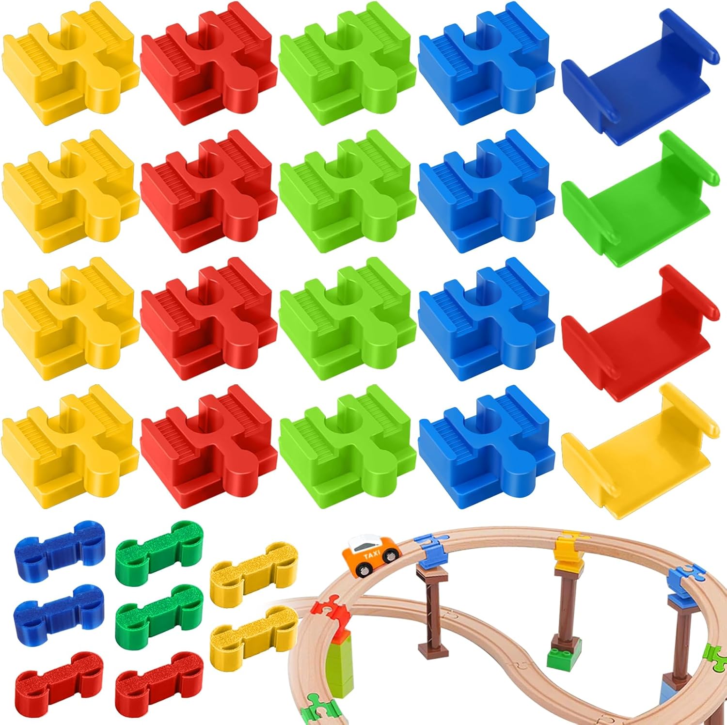 Legno resistente: realizzati in legno resistente con venature naturali, questi connettori sono entrambi belli e valorizzano l'ambiente domestico, Legno naturale: realizzati in legno resistente con venatura naturale, questi connettori sono resistenti e aggiungono un tocco caldo ed estetico casa, Design colorato: stimola la creatività dei e il riconoscimento dei colori con vivaci connettori per binari in legno, migliorando l'interazione precoce, Colori creativi: il design e colorato i a sviluppare la creatività e il riconoscimento dei colori, rendendo l'apprendimento precoce divertente e coinvolgente Progettato con precisione per garantire i collegamenti, impedendo ai treni di deragliare e garantendo un'esperienza di gioco ,