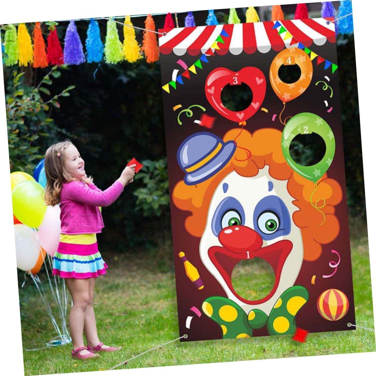Gioco del lancio appeso: il gioco del lancio può aiutarti ad avvicinare sempre di più le tue famiglie, striscione da circo Striscione da circo - per decorazioni di feste, layout di festival di carnevale, striscione per troupe circensi Lancio di sacchi di sabbia: è dotato di stampa digitale automatica ad alta precisione, striscione da circo Bandiere da appendere a forma di clown: realizzate in poliestere, possono essere utilizzate più volte, striscione da circo Striscione da circo: il gioco del lancio di sacchi di sabbia è leggero e portatile, un buon gioco interattivo, giocaci con i tuoi o le tue famiglie alla festa di natale, striscione da circo