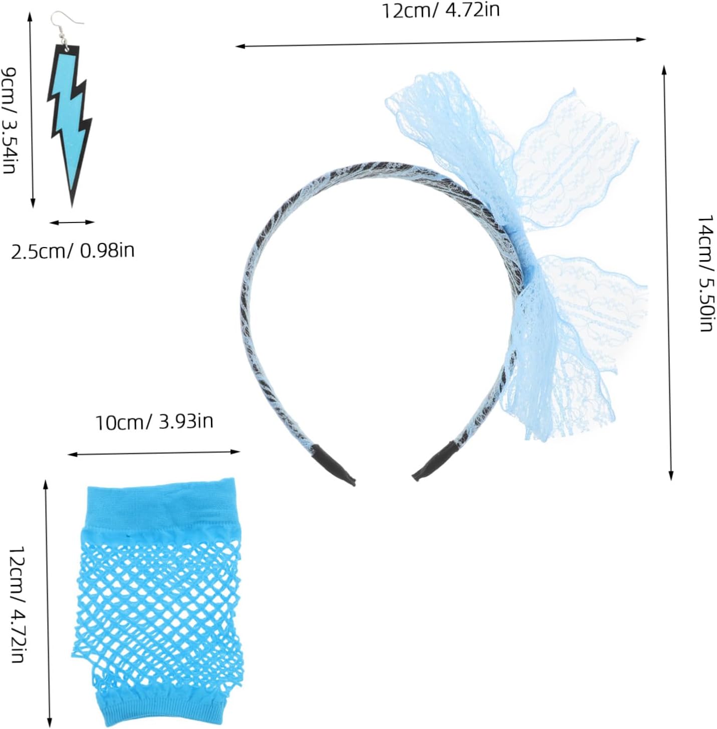 Il pacchetto include 1 x fascia per capelli 2 x orecchini 2 x guanti Caratteristiche -Colore: orecchini con cerchietto in pizzo blu - Libertà di movimento delle mani: guanti senza dita da donna in pizzo e rete, senza dita, massimizzano il comfort e la destrezza, consentendo di ballare e festeggiare senza restrizioni, il tutto in autentici guanti retrò senza dita. -Dimensioni: 9,00X2,50X0,50 cm/3,54X0,98X0,20 pollici copricapo da festa - Dimensioni: 14,00X12,00X2,40 cm/5,50X4,72X0,94 pollici Accessori per feste anni '80 -Abbinamenti eleganti: mescola guanti in pizzo per abiti da donna in stile anni '80 per abbinamenti creativi, assicurando che ogni costume retrò anni '80 si distingua durante eventi a tema o serate con guanti da ballo. -Materiale: guanti in poliestere e rete - Atmosfera anni '80: guanti a rete al neon e gioielli al neon ricreano insieme l'iconica moda a tema anni '80 per copricapi da festa e guanti in maschera, ha bisogno di un abito da festa anni '80 -Informazioni sul prodotto:Accessori per feste retrò -Dimensioni: 11,00X10,00X0,10 cm/4,32X3,93X0,04 pollici guanti punk senza dita da donna - : questi guanti da festa promettono morbidezza e durata per un uso prolungato alle feste in discoteca o ai balli di fine anno, guanti senza dita per donne in pizzo Informazioni sulle merci guanti senza dita a rete Questi guanti da ballo e guanti a rete fanno risaltare i guanti da donna. Guanti in stile vintage Aggiungi un tocco alla tua collezione di accessori per feste anni '80 con guanti senza dita al neon ed eleganti guanti in pizzo per uno stile vintage, abbinati a orecchini con cerchietto in pizzo retrò