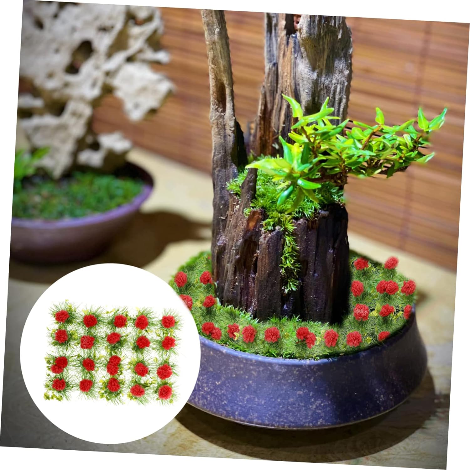 Forniture per tavoli di sabbia: hanno un'elevata resistenza alle alte temperature, che è facile da usare, quindi possono essere utilizzate più volte, mini pianta da casa Ornamento in miniatura: durevole, sicuro e riciclabile, realizzato con materiali di , utilizzato a lungo, decorazione con grappoli di fiori Modelli di grappoli di fiori: riempili in una , un vaso, un cilindro di o un vassoio decorativo per creare una sensazione di natura, simulazione di grappoli di Fiore di simulazione: ideale per modelli di tavoli di sabbia o modelli di edifici, anche per micro ornamenti paesaggistici, decorazioni in miniatura Decorazione micro paesaggio: design leggero, portatile da portare dove serve, fiore in miniatura