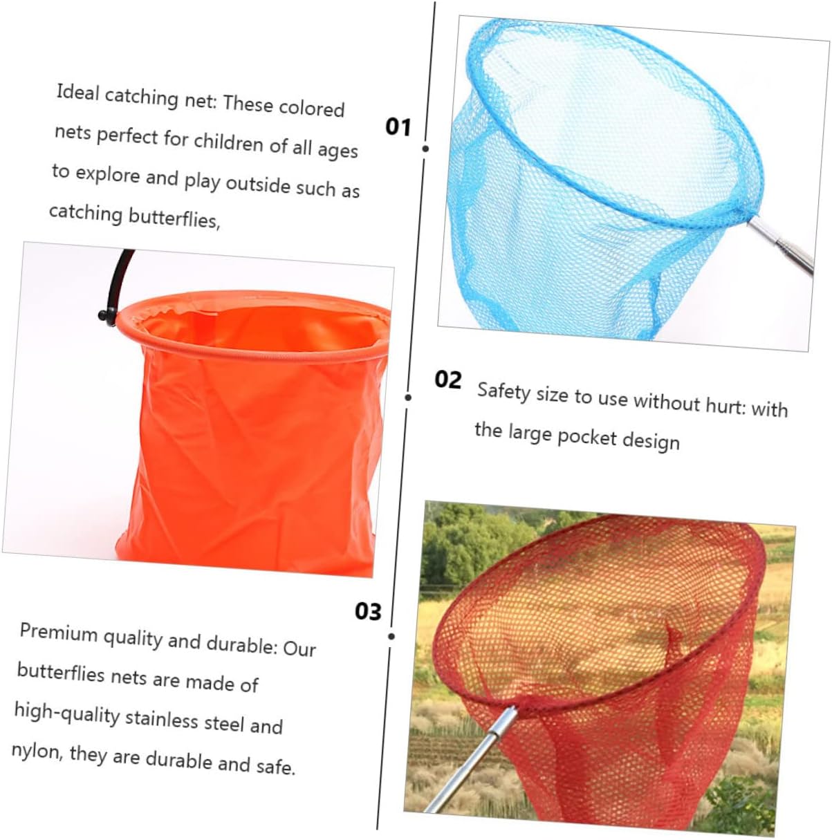 Qualità premium e: nostre reti da sono realizzate in acciaio inossidabile e nylon, retino per farfalle estensibile, retino per farfalle Rete da telescopica: palo telescopico può essere allungato, è possibile regolare la lunghezza adeguata per catturare insetti, rete da Design telescopico: corto o lungo, come preferisci; puoi regolare la lunghezza della rete ritraendo suo palo , rete , giocattolo per all'aperto Retino da : queste reti colorate sono perfette per i tutte età vogliono esplorare e giocare all'aperto, ad esempio catturando farfalle, insetti, pesci e altro, reti da , retino retrattile per farfalle Giocattolo per : nostre retine sono progettate specificamente per i , ottime per catturare farfalle, pesci, insetti, ecc., retine per insetti
