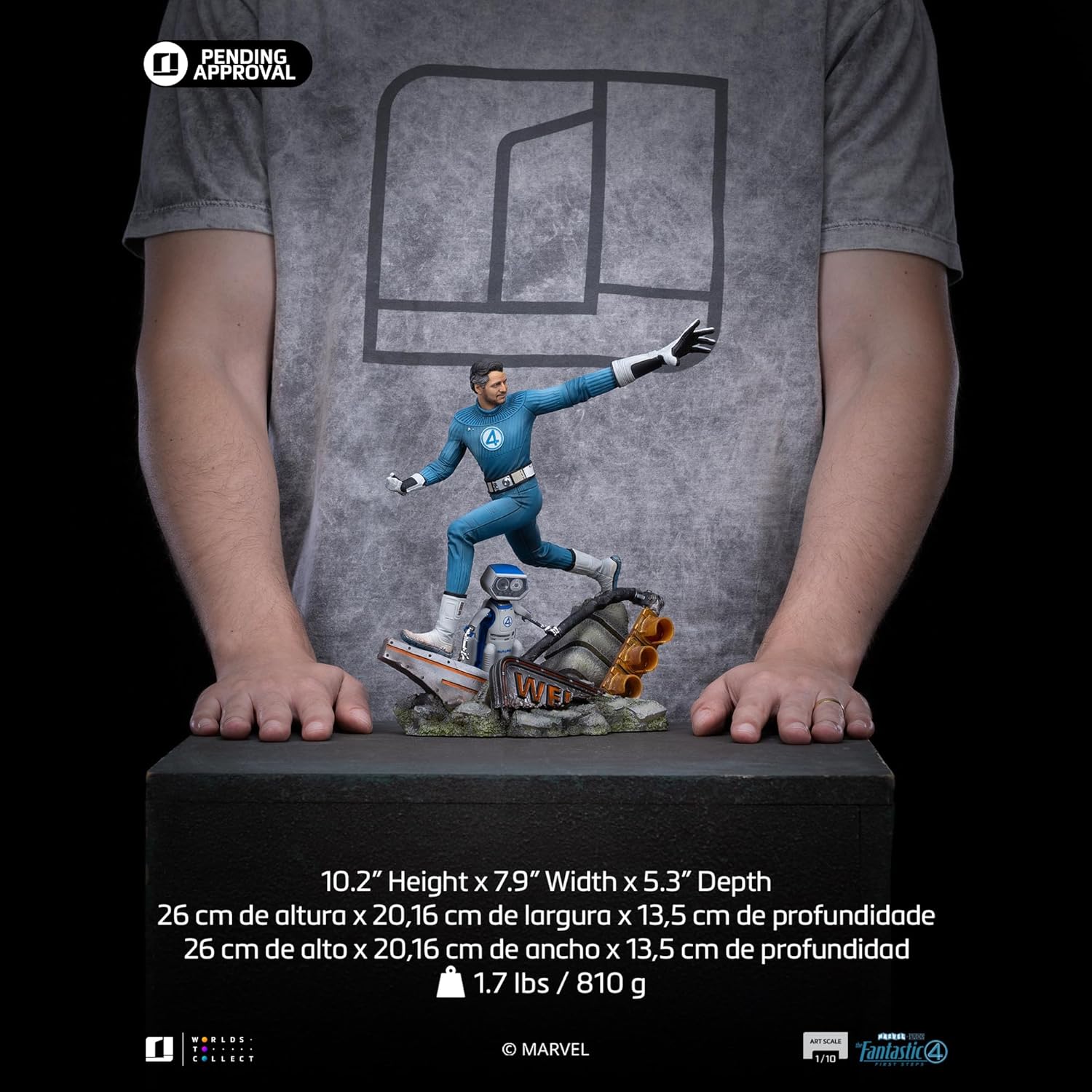 Ufficiale, dettagliata e durevole: questa statua di Mister Fantastic è meticolosamente realizzata e dipinta a mano con un'incredibile attenzione ai dettagli, catturando l'essenza del personaggio. Prodotto con licenza ufficiale: la statua di Mister Fantastic è un prodotto con licenza ufficiale, assicurando che i fan del franchise ricevano un oggetto da collezione autentico e di alta qualità. Perfetta per la visualizzazione: la statua ha un'altezza di circa 26 cm di Mister Fantastic ed è fornita in una confezione sicura con grafica mozzafiato, rendendola perfetta da esporre su una collezione, scrivania o scaffale. Ottimo regalo: Mister Fantastic è un'ottima idea regalo per i fan di tutte le età del franchise di Mister Fantastic, sia come regalo di compleanno o per un'occasione speciale (Natale, Giorno dei Re...), che si tratti di collezionisti o semplicemente fan del personaggio. Dimensioni: 26 cm di altezza 20,16 cm di altezza 13,5 cm di profondità, inclusa la base espositiva.