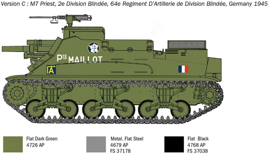 Kit modello dettagliato in plastica in scala 1:35 del carro armato M-7 Priest Howitzer. Il modello di serbatoio assemblato ha una lunghezza di 17,2 cm. Il montaggio indipendente è accompagnato da istruzioni di montaggio passo passo o illustrate. Le istruzioni di montaggio sono ovviamente incluse nella fornitura. Le singole parti devono essere assemblate esattamente in base alle istruzioni di montaggio. Le parti possono essere verniciate secondo le proprie idee. Attrezzi, colla e vernici non sono compresi nel kit in plastica. Questi devono essere acquistati facoltativamente.