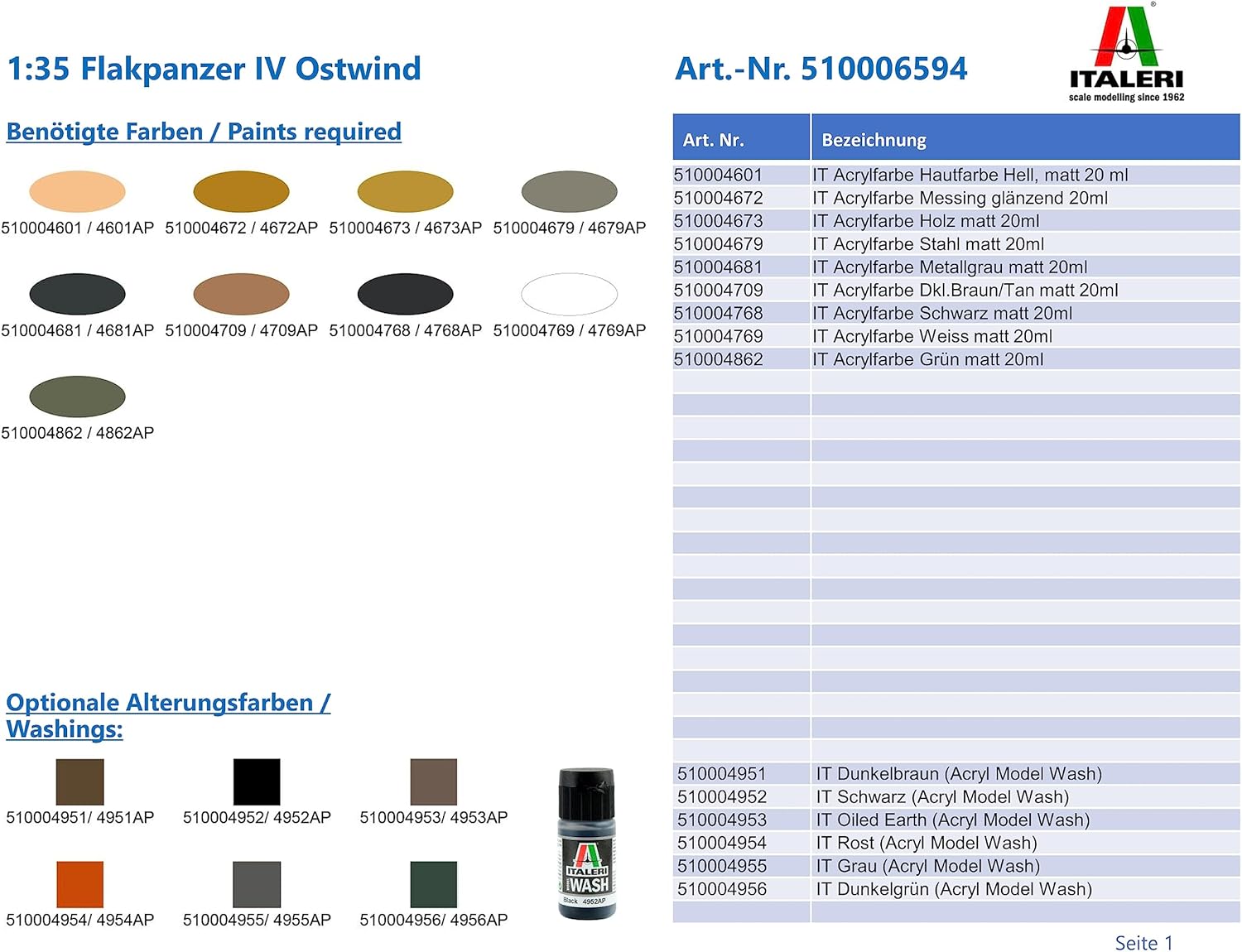 Kit modello dettagliato in scala 1:35. Il kit di alta qualità di Italeri deve essere assemblato da solo. Il montaggio indipendente è accompagnato da istruzioni di montaggio passo passo o illustrate. Le istruzioni di montaggio sono ovviamente incluse nella fornitura. Le singole parti che si adattano perfettamente devono essere assemblate in base alle istruzioni di montaggio. Le parti possono essere verniciate secondo le proprie idee. Attrezzi, colla e vernici non sono compresi nel kit in plastica. Questi devono essere acquistati facoltativamente.