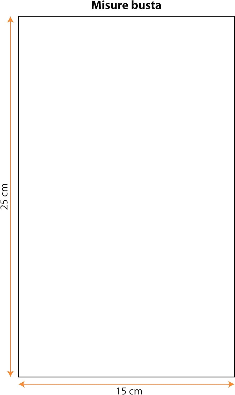 Materiale per il contatto con gli alimenti, ideale per confezionare prodotti come biscotti, dolci, torte, spesa ed anche regali Molto pratico e con motivo natalizio, ideale per il periodo invernale ma anche per compleanni, feste e cerimonie in genere Materiale: Plastica (polipropilene), spessore 30 micron (My), trasparente e resistente, 100% Made in Italy Dimensioni: 15 x 25 cm (base 15 cm e altezza 25 cm) Confezione da 50 pezzi, stesso colore, stessa misura, Nastro regalo non incluso