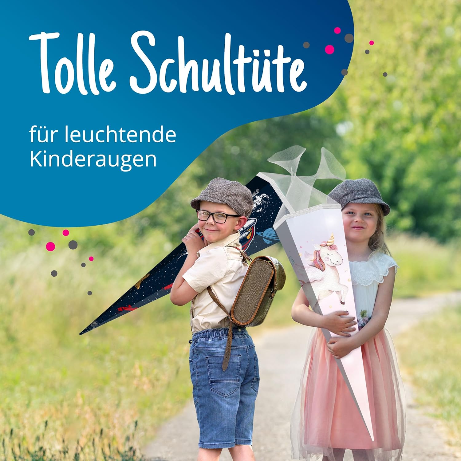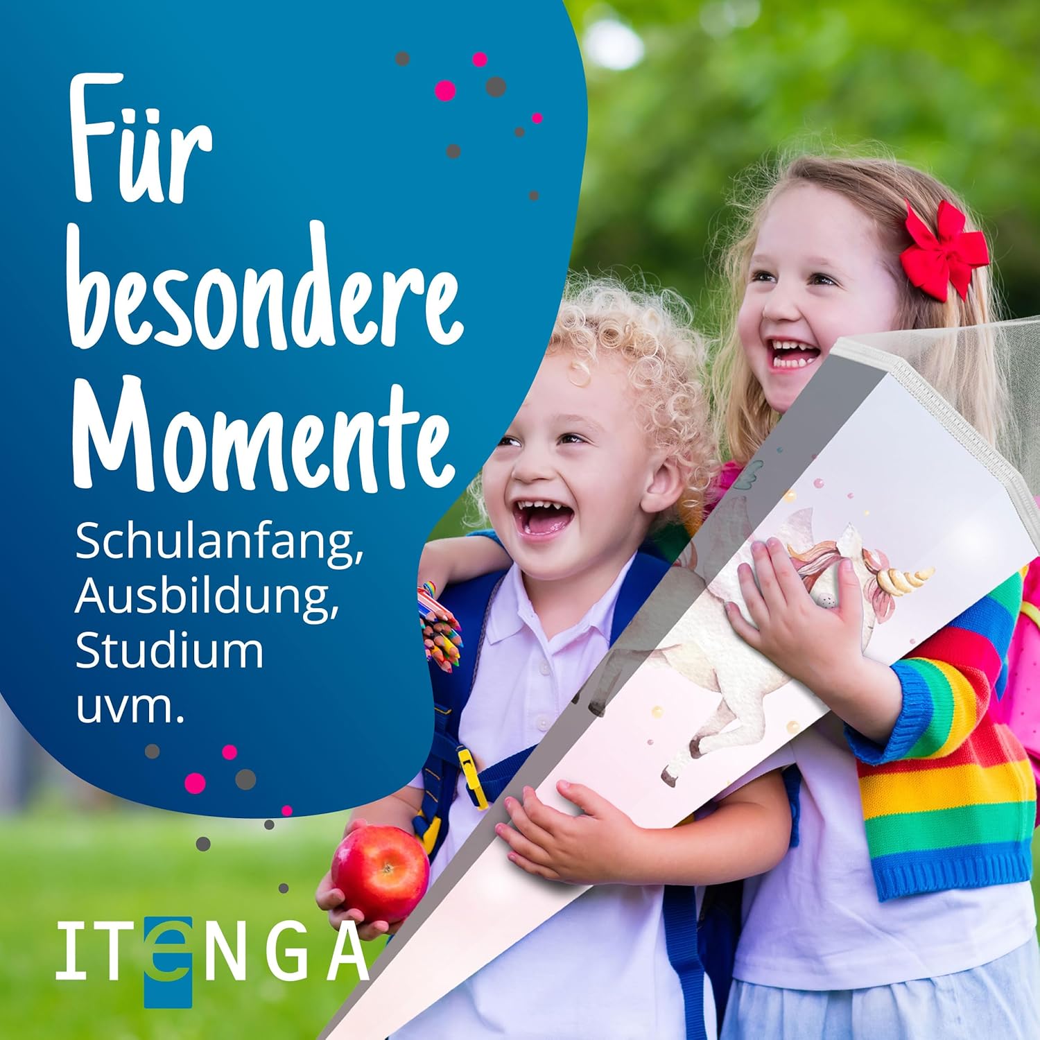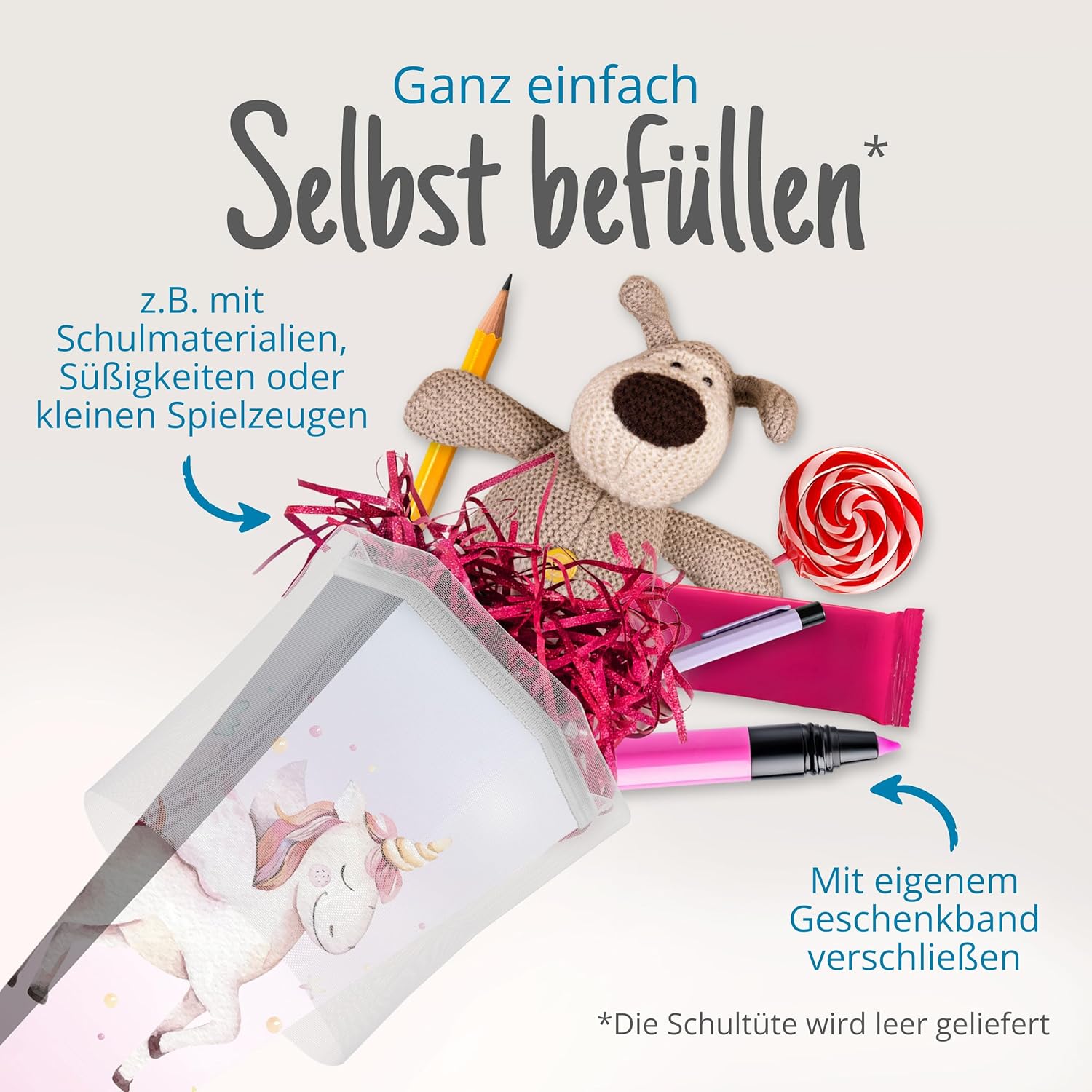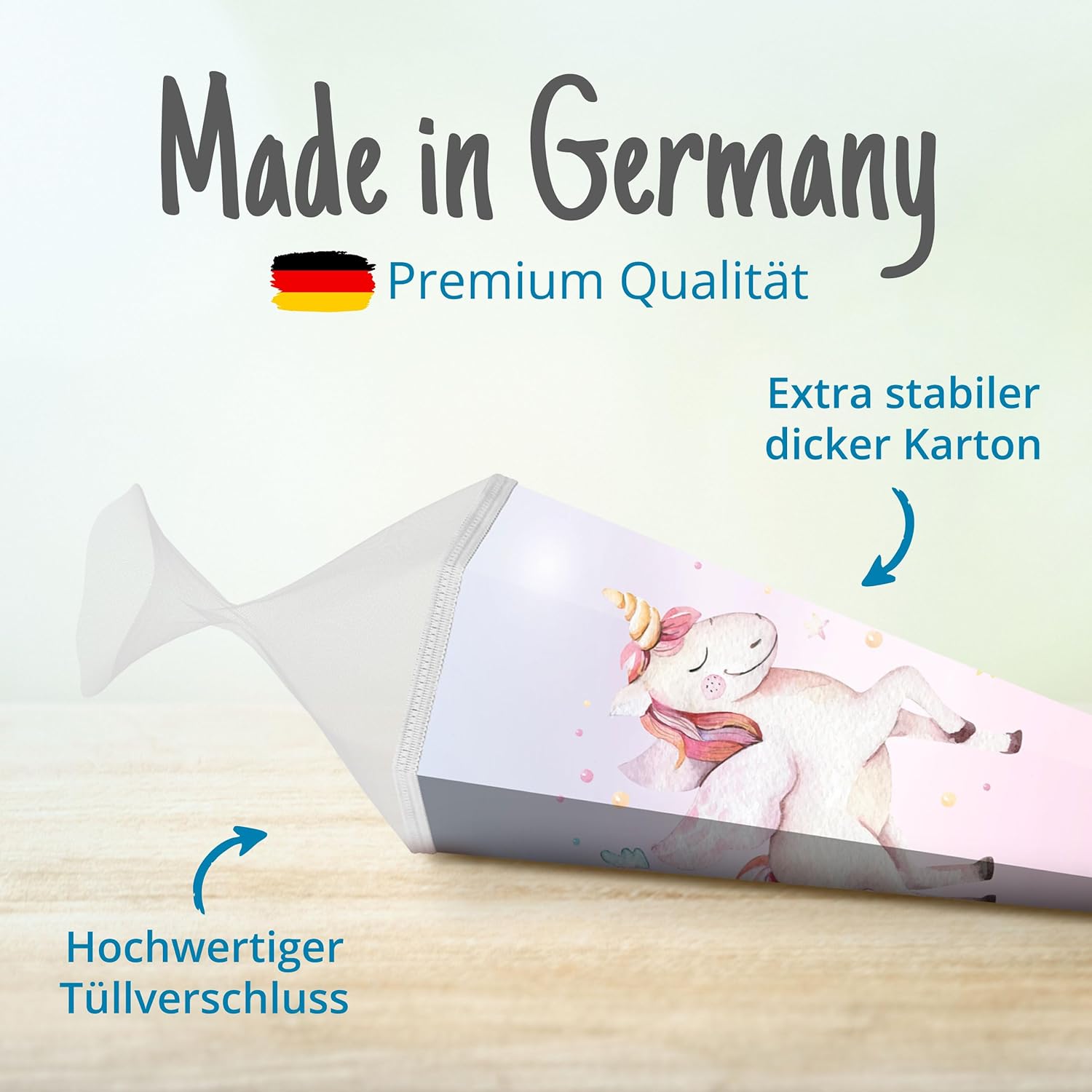 Cono scolastico rinforzato grande 85 cm esagonale con chiusura motivo unicorno design moderno adatto alle ragazze Ideale come regalo per l'inizio della scuola Spazio sufficiente per piccoli oggetti e dolcetti Fornitura: 1 cono scolastico itenga 85 cm Motivo: unicorno Materiale: cartone