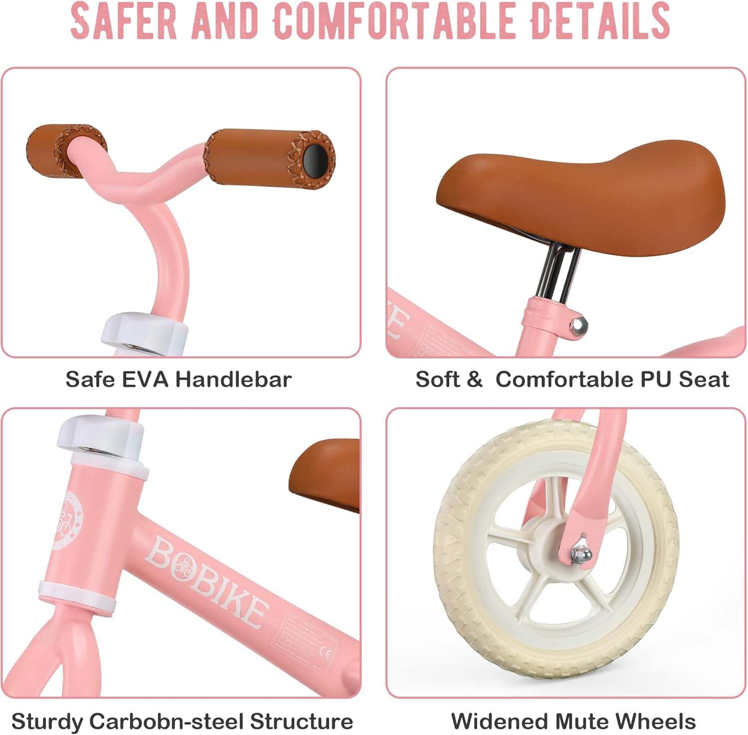 🚲【La migliore Bicicletta】Bicicletta per i tuoi bambini (fino a 6 anni), La bici per bambini è progettata per aiutare i bambini a imparare le basi dell'equilibrio e della camminata e iniziare a pedalare in tenera età. 🚲【Design amichevole per i bambini】La balance bike a due ruote è più aggiornata, vicina alla bicicletta, il corpo della bicicletta è realizzato in acciaio al carbonio forte e resistente. Il sedile regolabile e le ruote antiscivolo chiuse ti danno la sicurezza di accompagnare i tuoi bambini in bicicletta. 🚲【Installazione in pochi minuti】La balance bike per bambini è facile da montare e richiede solo pochi minuti per essere installata. Non è necessario avere strumenti sofisticati o complicati. 🚲【Adatta per uso interno ed esterno】Il tempo di gioco non è mai stato così eccitante! Con le balance bike, i vostri bambini possono giocare all'interno o all'esterno (sotto la vostra supervisione). È un'attività divertente per bambini e adulti. 💝【Sicurezza garantita】Certificazione ASTM F963-11, EN71, il design del limite di sterzata a 135° e le ruote completamente allargate e chiuse impediscono cadute laterali o danni ai piedi.