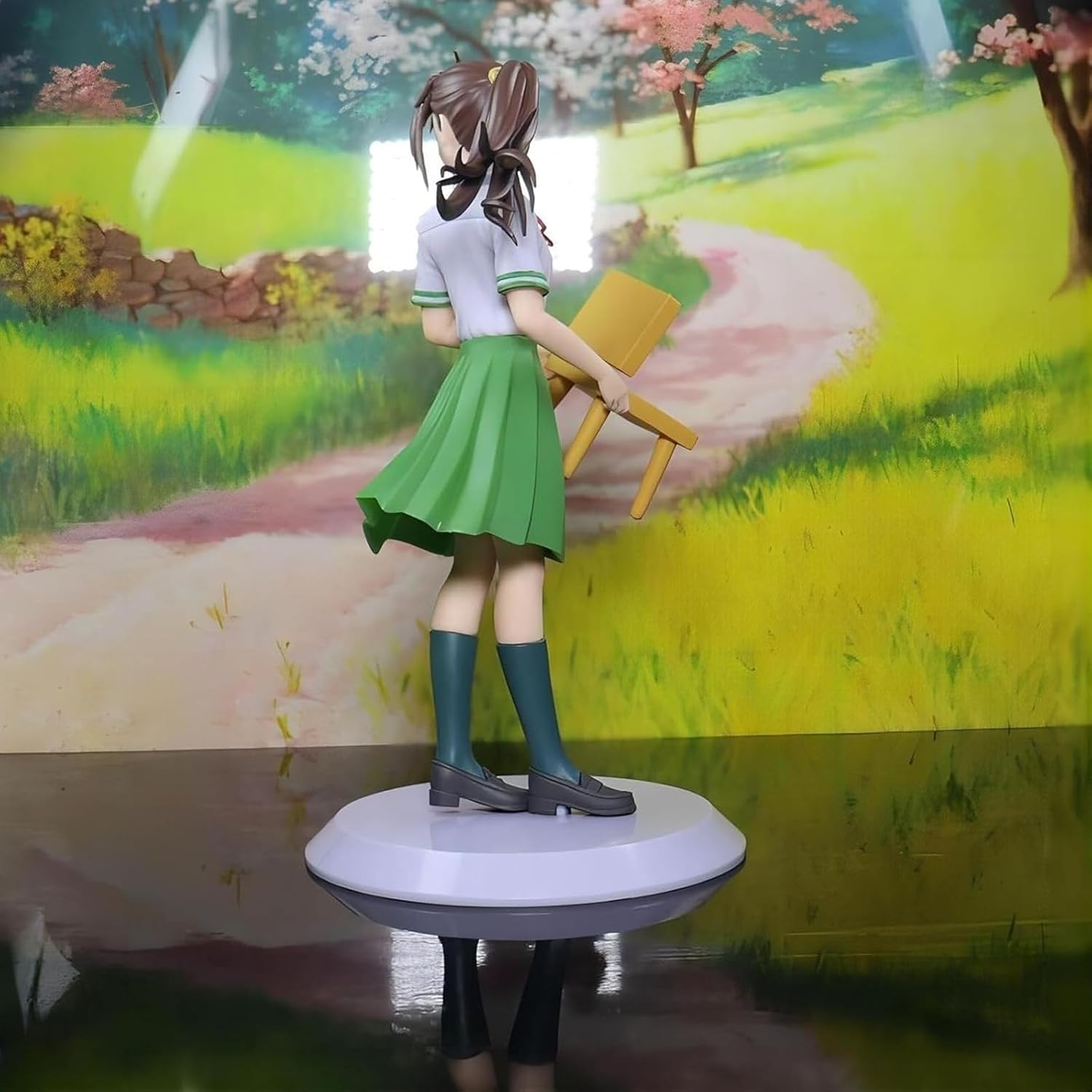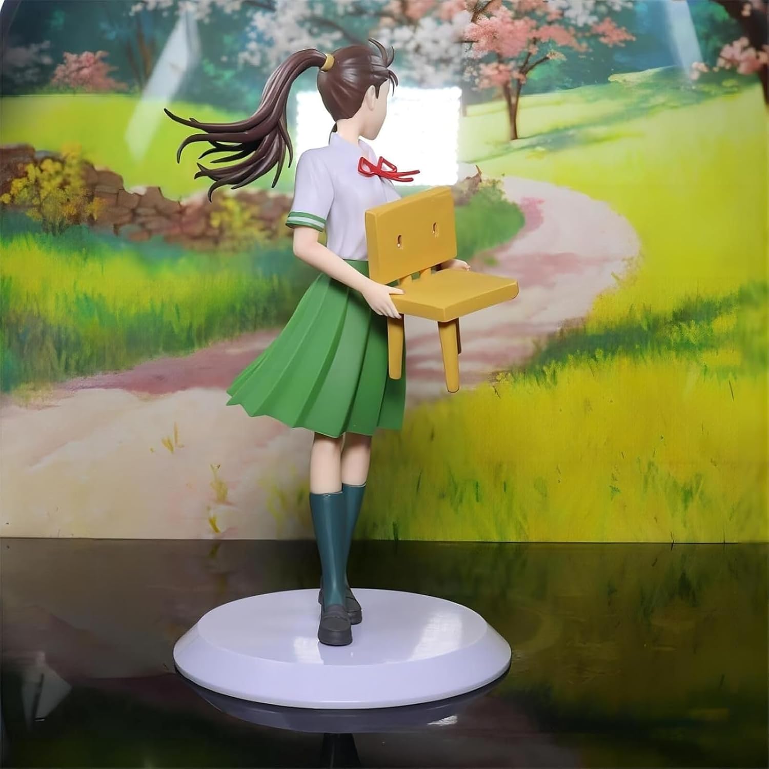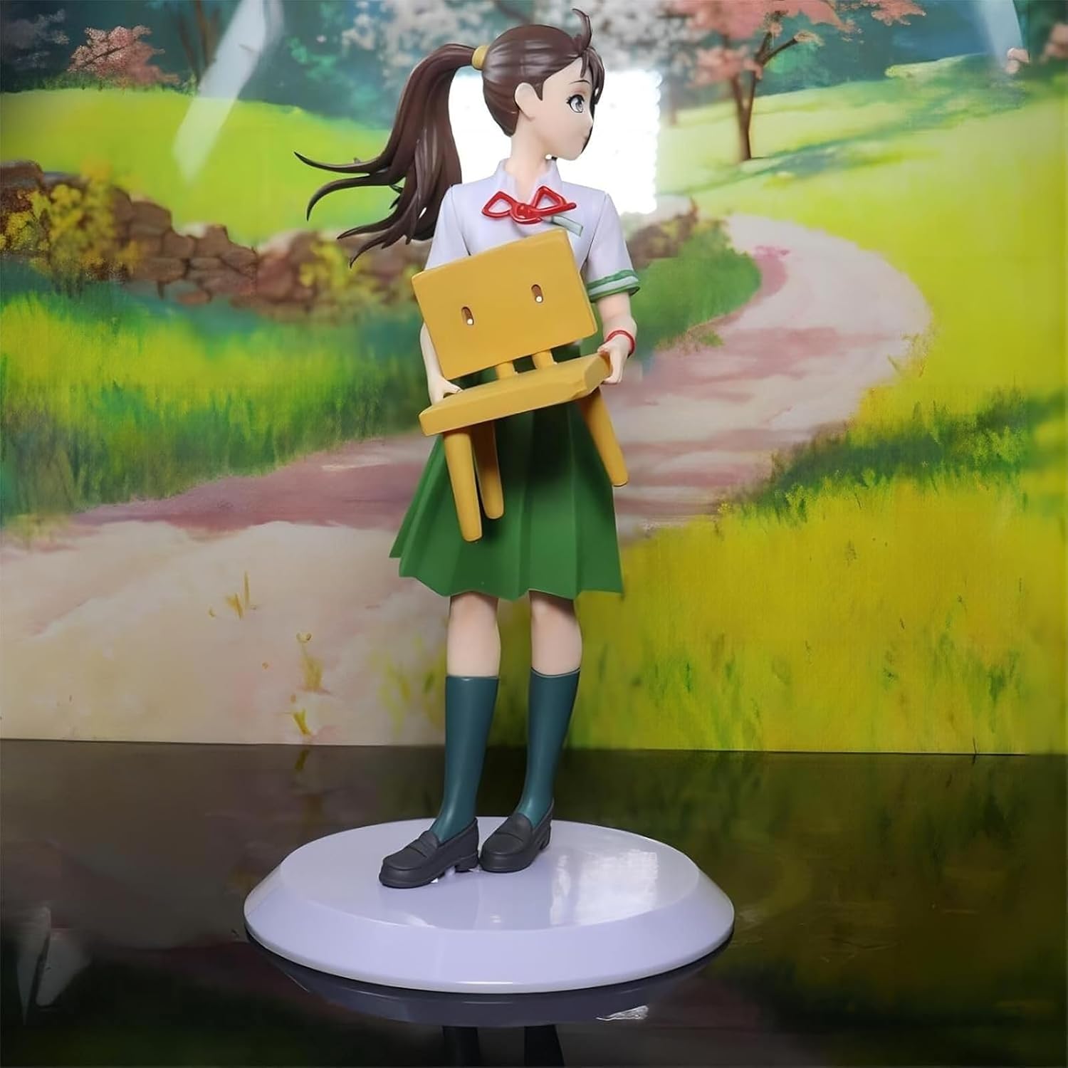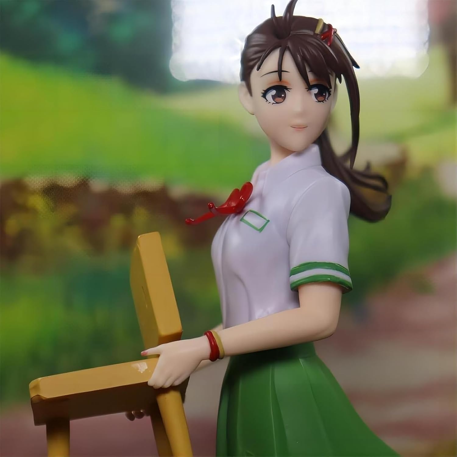 Affascinante posa in piedi: la figura emana un fascino sofisticato attraverso la sua naturale interazione con la sedia che l'accompagna, catturando un momento di equilibrata eleganza mentre il personaggio appoggia delicatamente la mano sui mobili. Elegante abito verde: dalle pieghe del tessuto accuratamente scolpite alla naturale posa in piedi, ogni elemento mostra un'attenzione premurosa per un'estetica femminile sofisticata. Costruzione in PVC di alta qualità: realizzata in resistente materiale PVC, questa collezione presenta superfici lisce che esaltano i dettagli fluidi del vestito e la delicata lavorazione artigianale della sedia esaltata con chiarezza duratura. Armonia visiva equilibrata: a Alto 20 cm, questo oggetto da collezione raggiunge proporzioni perfette da galleria in cui la figura e la sedia si completano magnificamente senza dominare lo spazio espositivo. Regalo premuroso per gli appassionati di anime: questa figura dal design accattivante è un regalo meraviglioso per compleanni o occasioni speciali, attraente per i collezionisti che apprezzano il design elegante dei personaggi