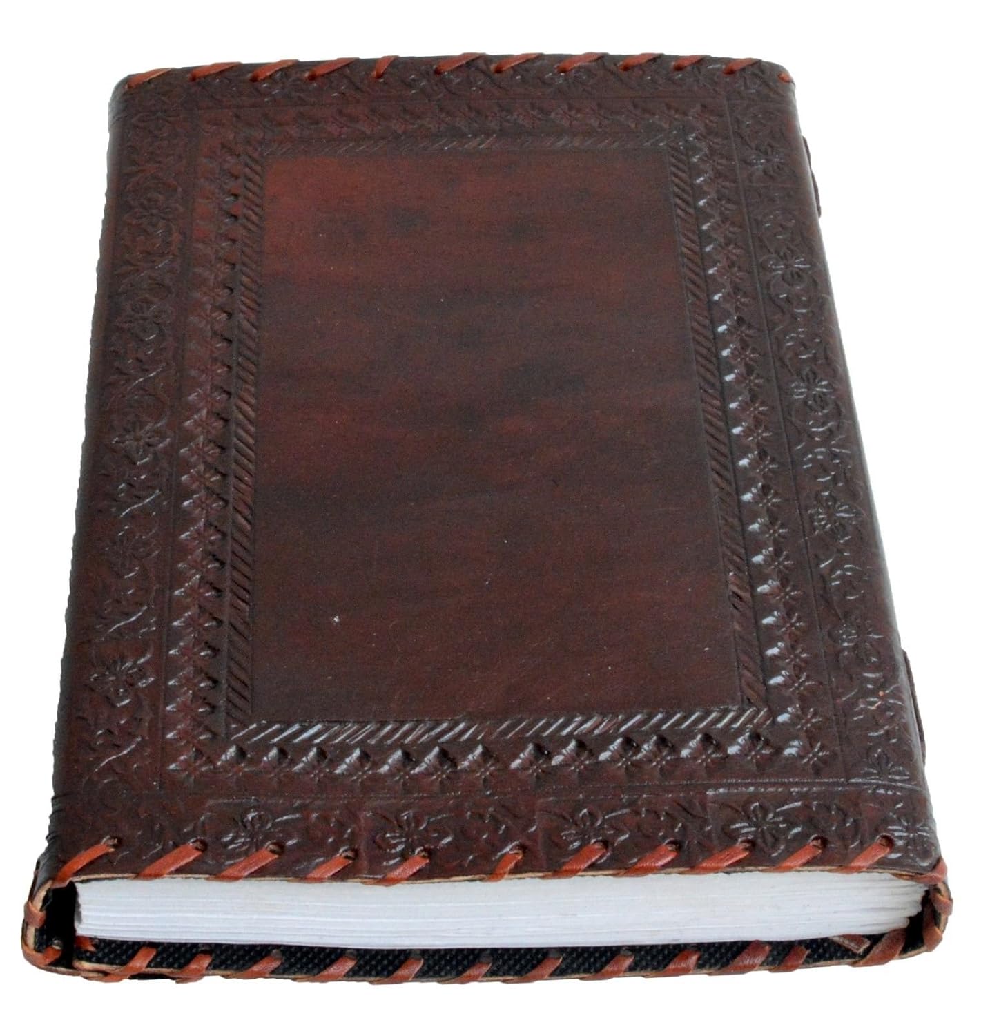 Well this does not look and feel like leather it does smell like leather! I bought this so I can draw and study better for school. And it is exactly what I wanted and needed! Well-made and pages are clean and easy to draw on my diagrams. Great for a journal and much more.
