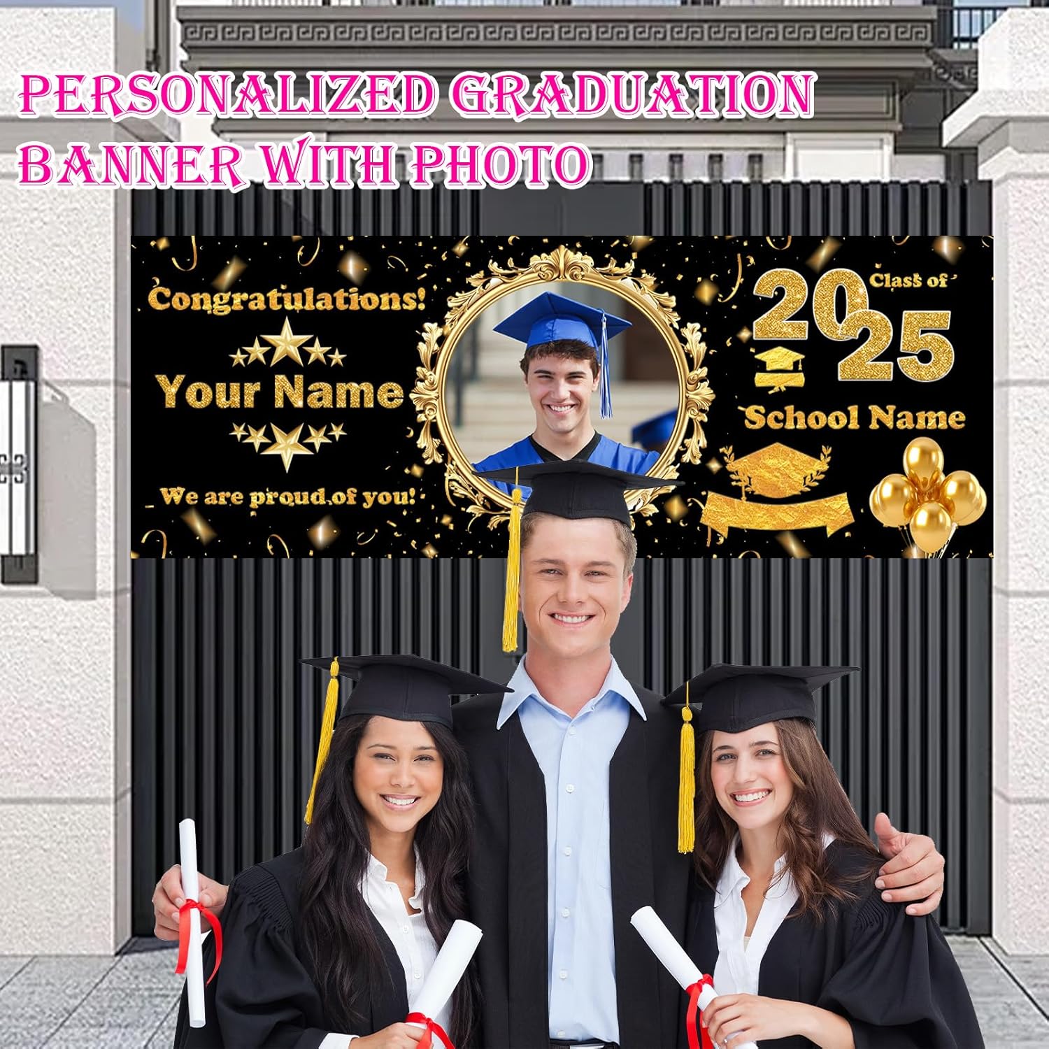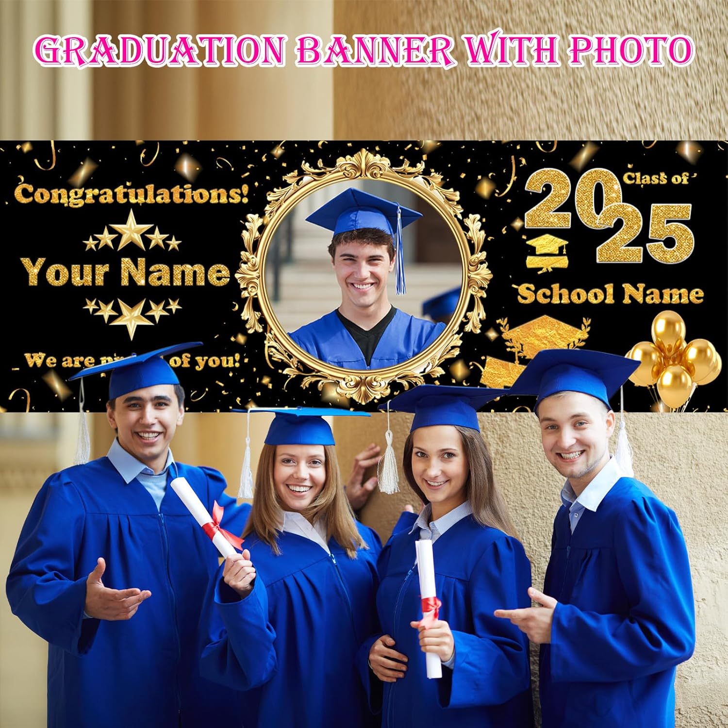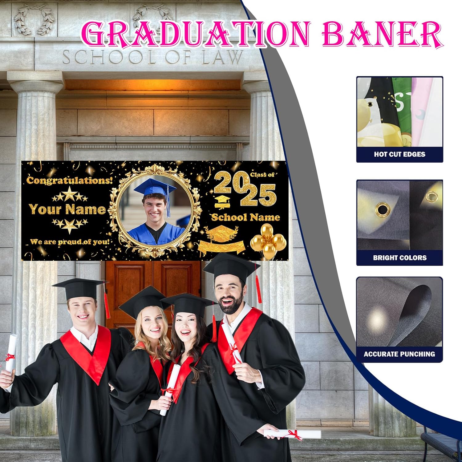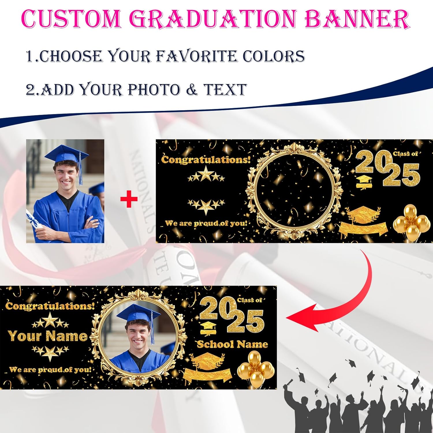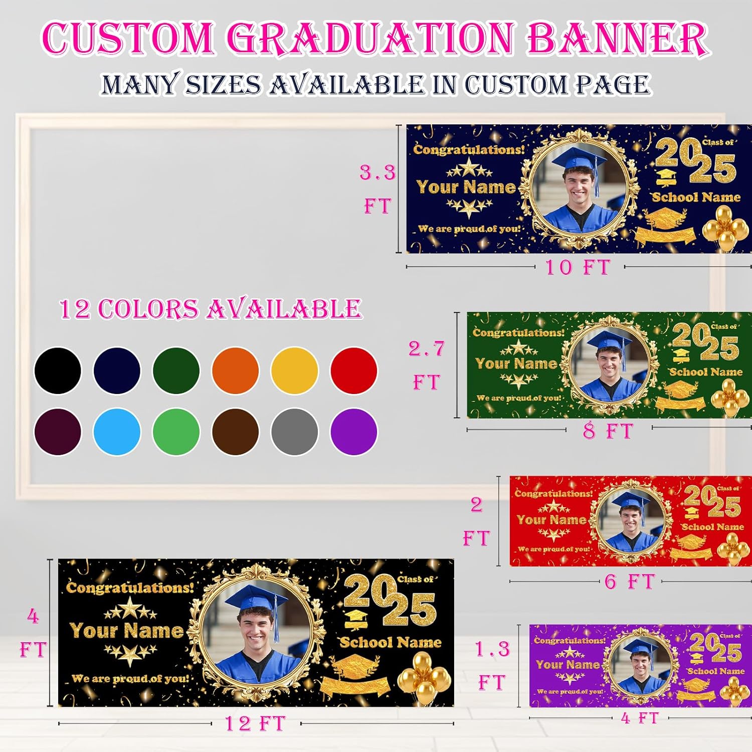 Banner di laurea personalizzato: questo banner può essere personalizzato con il nome e la foto del laureato, rendendolo un modo caloroso e speciale per celebrare i suoi risultati. Personalizza con qualsiasi foto e benedizione, anche se è consigliata una foto ad alta risoluzione. Diverse dimensioni disponibili: il banner personalizzato è disponibile in 4 lunghezze, quindi puoi scegliere la dimensione appropriata per le tue esigenze e la posizione di visualizzazione. Scegli la dimensione/colore del banner di congratulazioni per la tua festa di laurea. Ci impegneremo a produrre e spedire il tuo ordine il più rapidamente possibile! Materiale di alta qualità: lo striscione di laurea è realizzato in materiale di alta qualità resistente agli agenti atmosferici, che può resistere a vento, pioggia e sole e durare a lungo. Gli stili sono progettati da designer professionisti e realizzati da lavoratori qualificati per garantire che il testo/foto personalizzati vengano stampati accuratamente. Facile da installare: lo striscione di congratulazioni ha occhielli in metallo su ogni angolo che lo rendono facile da appendere. Il materiale leggero lo rende facile da spostare e riporre quando non in uso. La stampa di alta qualità del banner garantisce che il nome e la foto del tuo laureato siano nitidi e vivaci. Eccellente esperienza di laurea: questo banner fotografico darà il tono alla cerimonia di laurea nel modo più accattivante, lei/lui sarà toccato e manterrà questo regalo di laurea con sé per gli anni a venire. Ci impegniamo a fornire striscioni di laurea di alta qualità. In caso di domande, non esitate a contattarci, agiremo sempre immediatamente per garantire la soddisfazione del cliente.