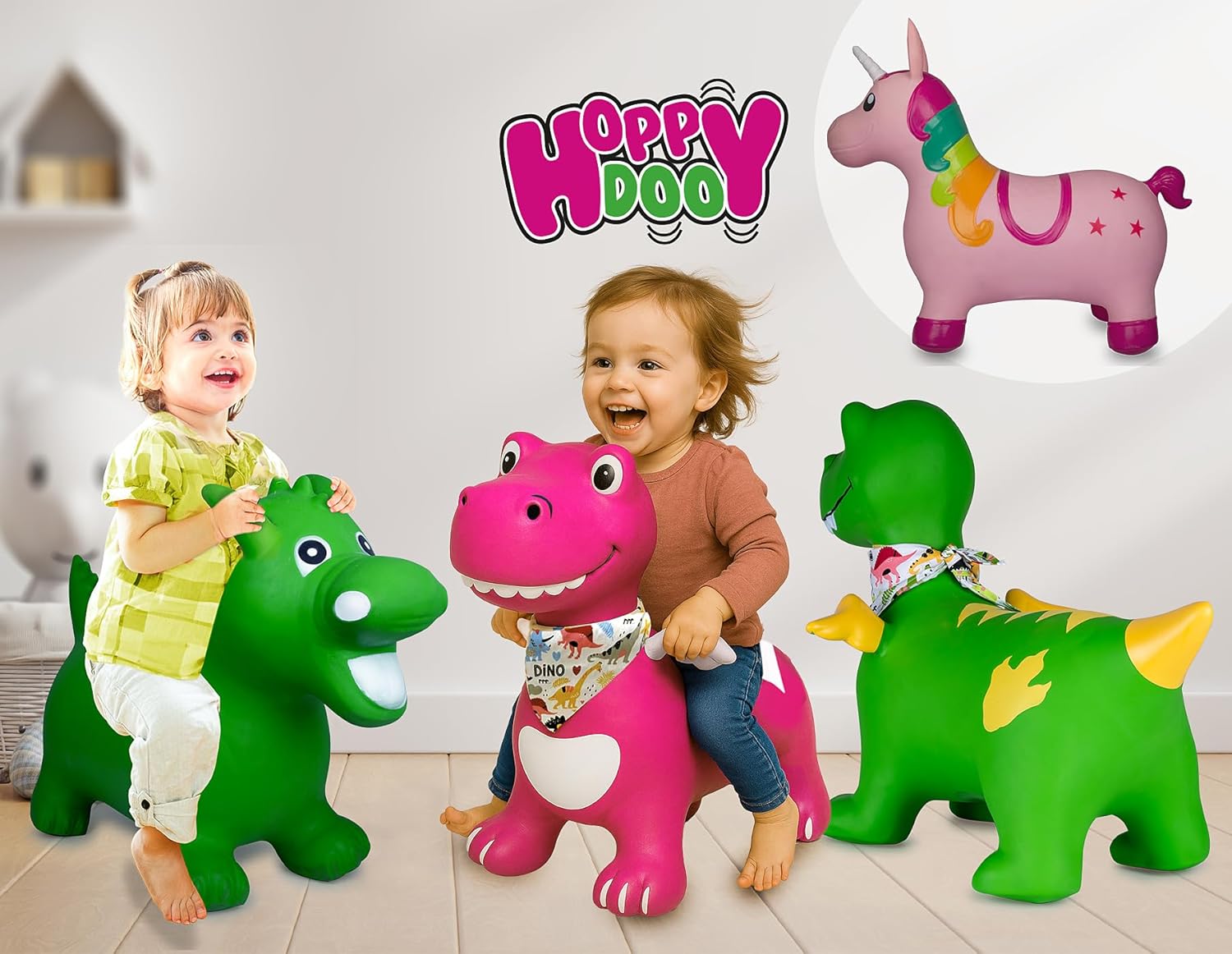 Un sacco di divertimento per bambini dai 12 mesi in su, gli animali rimbalzanti dipinti a mano con la pompa ad aria in dotazione sono facili da modellare, senza BPA. Le orecchie degli animali rimbalzanti servono a tenere fermo e dare al bambino una presa sicura Funzione di apprendimento: l'animale rimbalzante promuove il senso di equilibrio e le capacità motorie, rafforza i muscoli del bambino, quindi aiuta a sviluppare il cervello Robusto: il materiale resistente e resistente ha una portata fino a 50 kg. La zona centrale è adattata alla forma del corpo, questo garantisce una vestibilità ergonomica e confortevole. Anche all'aperto l'animale che rimbalza in giardino è divertente Struttura: la quantità d'aria consente al modello di adattarsi all'altezza e al peso del bambino. Basta gonfiare l'animale rimbalzante alla dimensione desiderata con la pompa ad aria e saltare via. L'altezza della seduta è di circa 24,5-27 cm Facile da pulire: il materiale di facile manutenzione può essere lavato con acqua corrente o pulito con acqua corrente