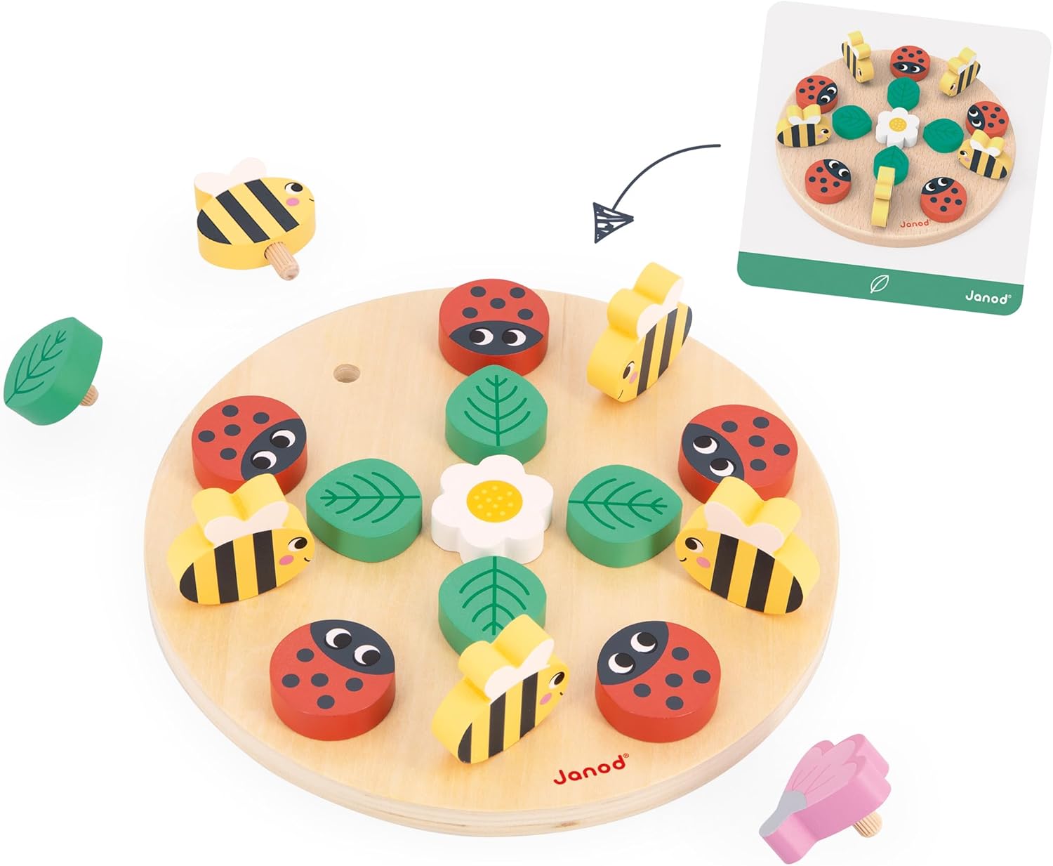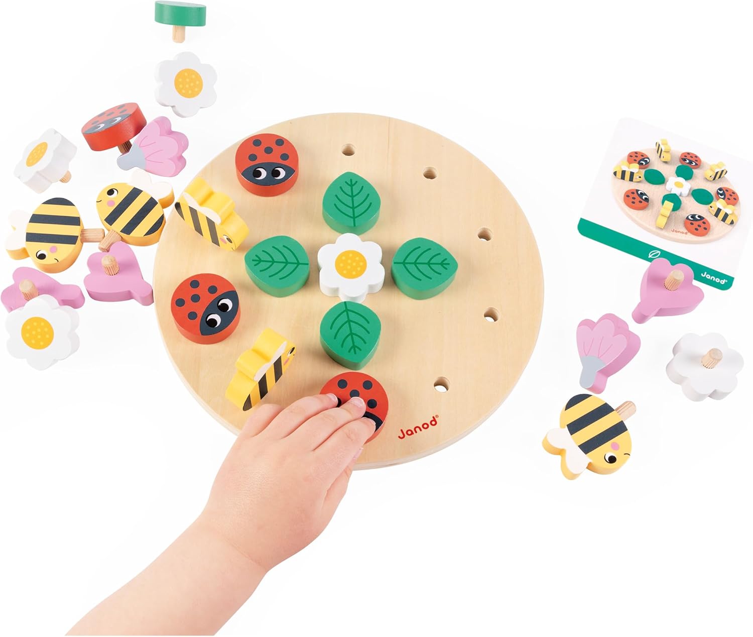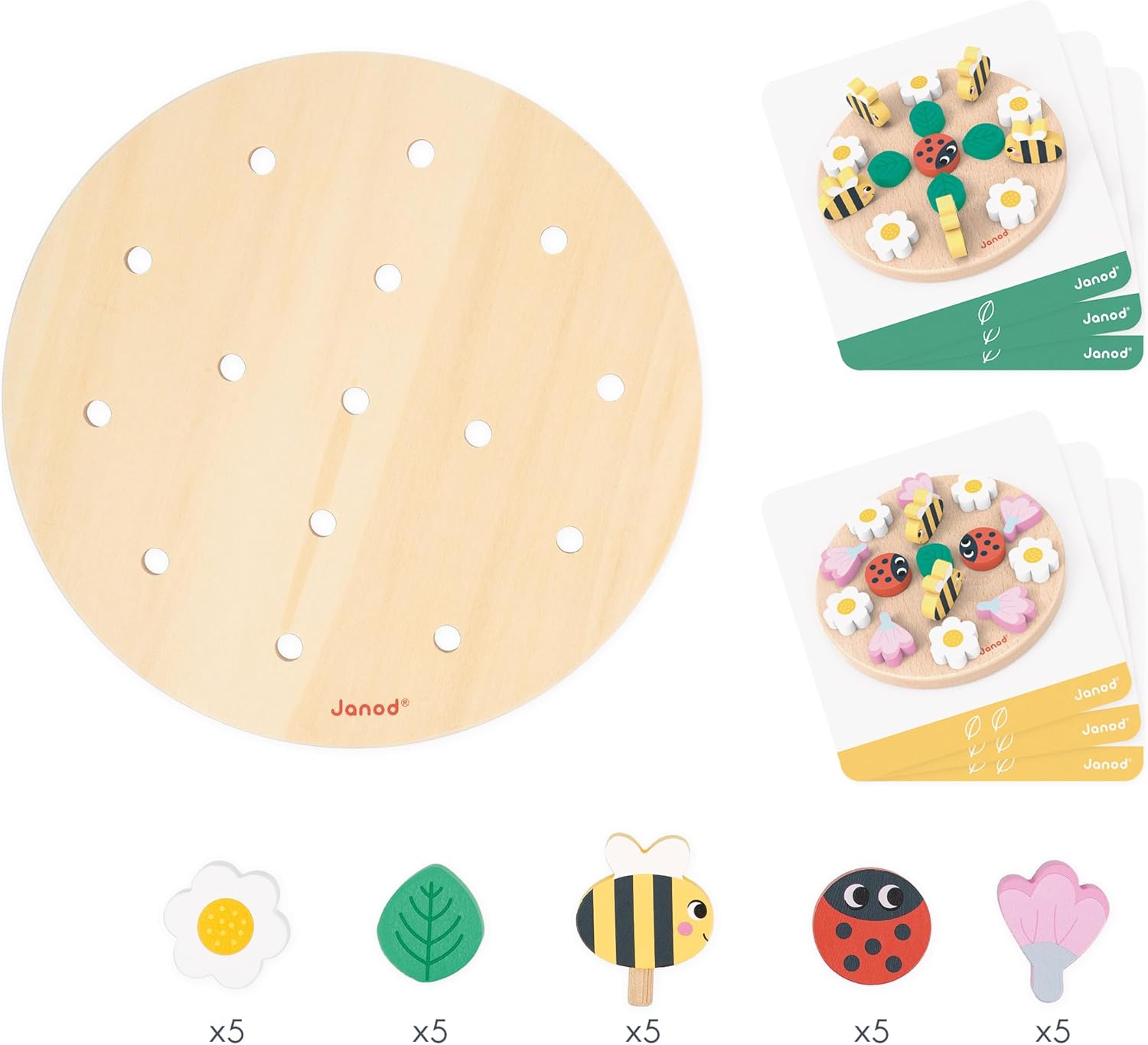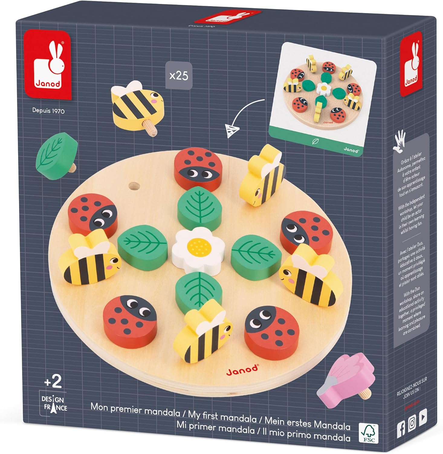 GIOCO EDUCATIVO: Questo gioco educativo aiuta il tuo bambino a partire dai 2 anni a sviluppare la concentrazione, l'immaginazione, il senso di osservazione e la destrezza divertendosi a comporre mandala. Gioco progettato in collaborazione con un insegnante di scuola. DA SOLO O IN DUE: In totale autonomia, il vostro bambino potrà riprodurre i mandala presenti sui modellini o inventarli. Con il laboratorio in duo, tuo figlio lavora sulla sua comprensione orale e sul suo vocabolario ascoltandoti o descrivendoti il suo set. DIFFICOLTÀ REGOLABILE: Per adattarsi al ritmo del bambino, questo divertente gioco Janod propone 2 livelli di gioco, con un numero crescente di elementi diversi da posizionare sul tabellone. Per andare oltre, un adulto può introdurre la nozione di sequenza logica. CARATTERISTICHE: Giocattolo in legno e cartone FSC. Include 1 vassoio, 5 foglie verdi, 5 foglie rosa, 5 coccinelle in legno, 5 margherite, 5 api, 6 carte modello fronte-retro e 1 istruzione. Dimensioni: 22 x 22 x 1,3 cm. Per bambini dai 2 ai 5 anni. IL POTERE DEL GIOCO: Con collezioni audaci e innovative, Janod accompagna i bambini nell'avventura più bella: crescere! Bellissimi giocattoli per imparare senza nemmeno rendersene conto, esplorare il mondo, sognare e condividere... Bravi!