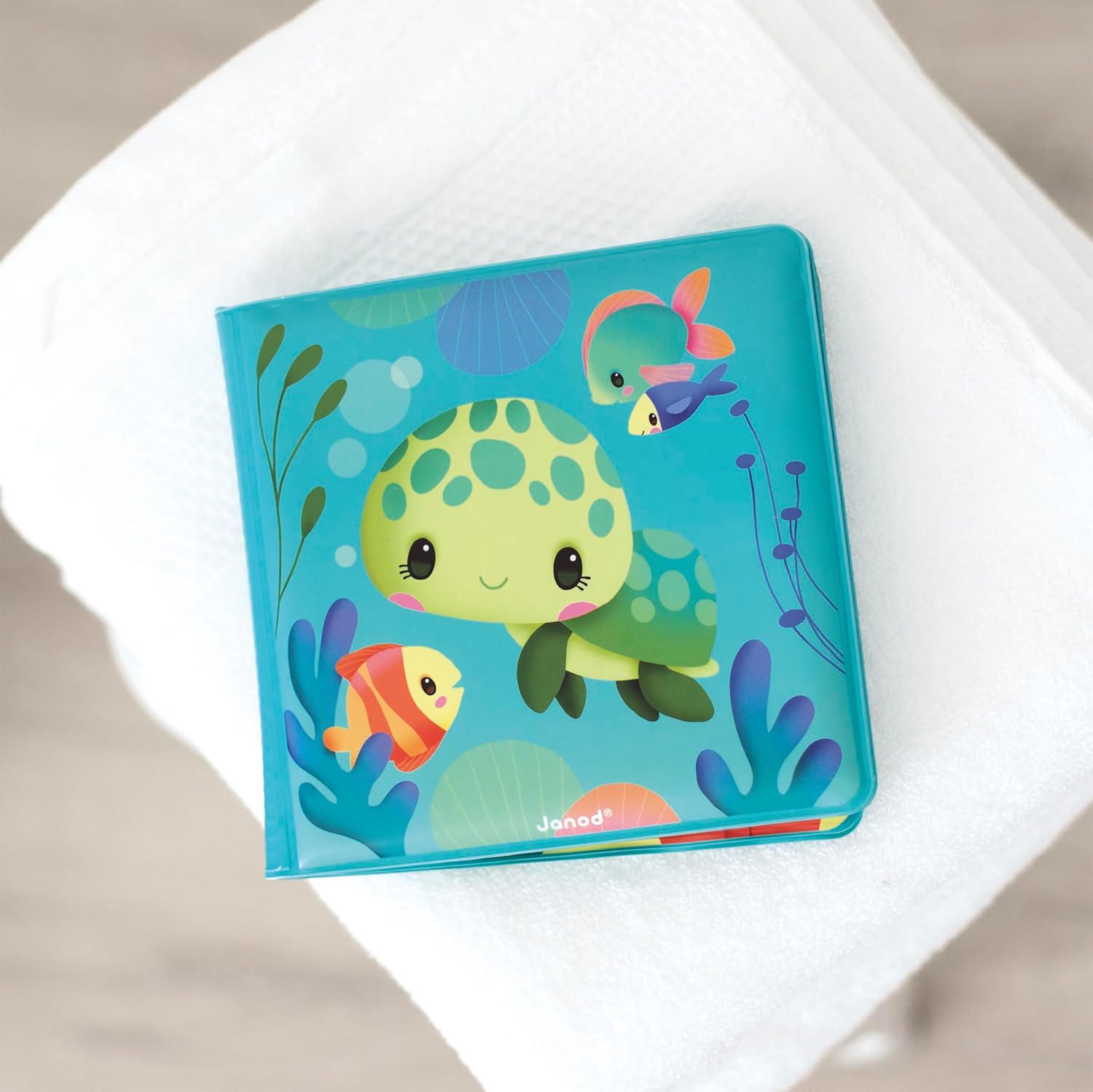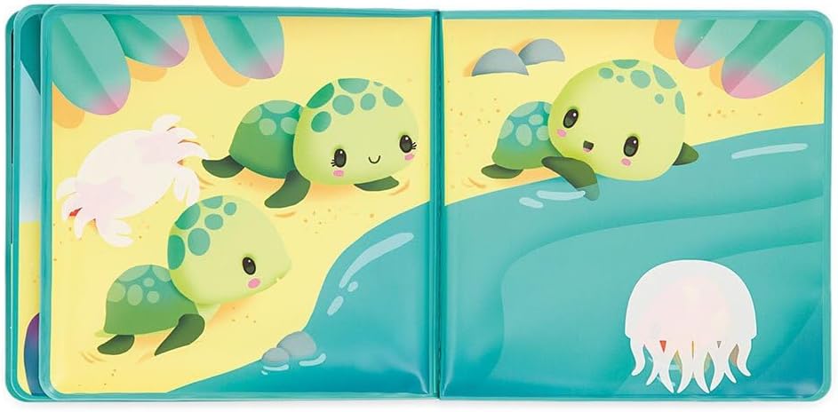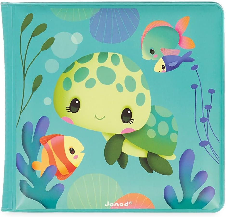 UN BAGNO PIENO DI SORPRESE: Quando questo magico libro illustrato viene immerso nell'acqua, le creature marine nascoste appaiono e scompaiono di nuovo quando il libro si asciuga. Risveglia la curiosità del tuo bambino nella vasca da bagno o nella piscina per bambini. UNA BELLA STORIA DA RACCONTARE: mostra al tuo bambino dall'età di 10 mesi e tutta la vita delle tartarughe marine - dalla schiusa al nuoto in mare - nelle 8 pagine splendidamente illustrate di questo libro per bambini. IMPARA DIVERTENDOSI: il gioco del bagnetto interattivo insegna a tuo figlio il concetto di causa ed effetto mentre attira gli animali nascosti fuori dai loro nascondigli. Questo libro di apprendimento stimolerà anche il suo senso della logica e della memoria. CARATTERISTICHE: Libro in PEVA impermeabile e flessibile con una sensazione morbida che galleggia sull'acqua. Giocattoli per neonati e bambini piccoli che misurano 14,5 x 14,5 cm per le mani dei più piccoli. Pulisci e asciuga questo giocattolo da bagno dopo ogni utilizzo. IL POTERE DEL GIOCO: le collezioni innovative di Janod accompagnano i bambini in una bellissima avventura: crescere! Giocattoli progettati nei minimi dettagli per aiutarti a imparare, esplorare, sognare e condividere attraverso il gioco.
