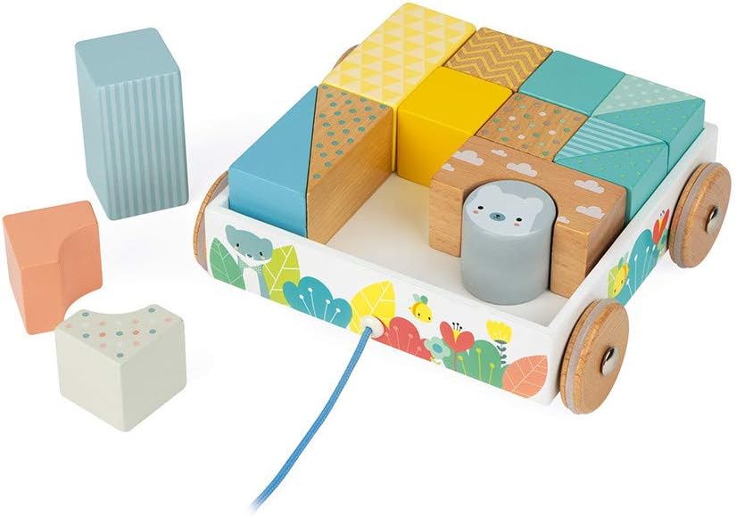PRIMI PASSI: L’importante fase dei primi passi del bambino sarà resa più facile con questo carrello con blocchi. Con i suoi bellissimi blocchi colorati, il tuo bambino sarà stimolato a spostarsi in giro per la casa per mostrare le sue bellissime costruzioni. Preparati a essere stupito! IMMAGINAZIONE: Oltre a imparare a camminare, il tuo bambino avrà l’opportunità di sviluppare l’immaginazione con i 16 blocchi inclusi. Il tuo bambino preferirà costruire una bellissima torre o una casa per il piccolo orso? SICUREZZA GARANTITA: Per una maggiore sicurezza, le ruote di legno del carrello sono circondate da un anello in gomma che le rende anti-scivolo. Inoltre, visto che i bambini al di sotto dei 3 anni tendono a mettere gli oggetti in bocca, l’intero giocattolo (carrello e cubi) è stato dipinto ad acqua. CARATTERISTICHE: Contiene 1 carrello e 16 blocchi. Dimensioni del giocattolo : Lunghezza 19 cm x Larghezza 16,5 cm x Altezza 6,8 cm. Materiale(i) utilizzato(i): Legno (compensato + ciliegio). Fascia d'età consigliata : da 12 mesi a 3 anni DESIGN FRANCESE: i giocattoli Janod sono progettati a Jura, in Francia, con una speciale attenzione per i materiali utilizzati, per lo stile e i colori. Giochi originali, educativi, stimolanti accuratamente pensati per favorire lo sviluppo cognitivo, psicomotorio e socio-emotivo del tuo bambino.