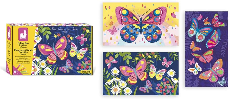 UN'ATTIVITÀ INTRAMONTABILE: realizzare quadretti con la sabbia colorata è un'attività manuale molto amata dai bambini e che garantisce risultati sorprendenti e molto gratificanti! Con questo set, i bambini dai 6 anni in su decoreranno, con le proprie piccole mani, 3 bellissimi quadretti illustrati con farfalle in volo usando sabbia fluorescente di 4 colori diversi. Durata dell'attività: circa 30 minuti per quadretto. UN'ATTIVITÀ EDUCATIVA: guidato nella sua attività grazie al libretto con istruzioni dettagliate incluso, il bambino trascorrerà momenti rilassanti, aumentando la precisione dei gesti, la capacità di concentrazione e la fiducia in se stesso. Questa attività manuale può essere proposta anche a un gruppo di bambini, ad esempio durante una festa di compleanno. UNA SIMPATICA DECORAZIONE: i 3 quadretti realizzati saranno una simpatica decorazione per la cameretta del bambino, o potranno essere regalati a mamma o papà. CARATTERISTICHE : Contiene 3 quadretti da decorare, 4 tubetti di sabbia fluorescente, un bastoncino in legno, un libretto con modelli e istruzioni. Materiale(i) utilizzato(i) : Cartone, carta autoadesiva, sabbia, bambù. Fascia d'età consigliata : da 6 anni a 10 anni. LES ATELIERS DU CALME: questo kit creativo fa parte della collezione "Les Ateliers Du Calme", sviluppata in collaborazione con la casa editrice Hachette. Hachette è specializzata nei kit creativi per i bambini e sa adattarsi alle esigenze e alle aspettative di ogni età, sia in termini di attività che di tematiche.