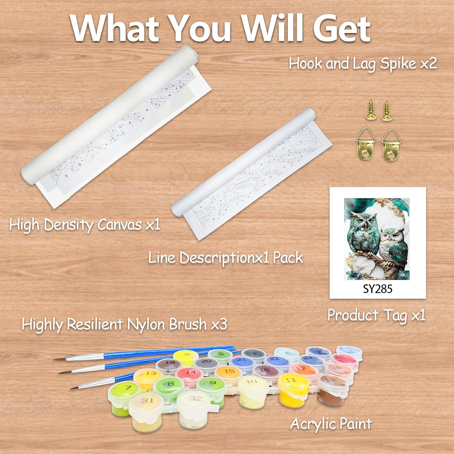 JATOK Paint by Numbers Dipingere con i numeri, gufo fai da te con pennelli e colori acrilici, dipinta a mano, per decorazione della casa, senza cornice (40 x 50 cm)