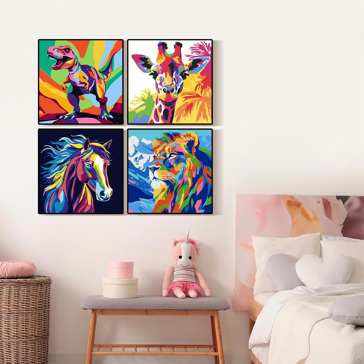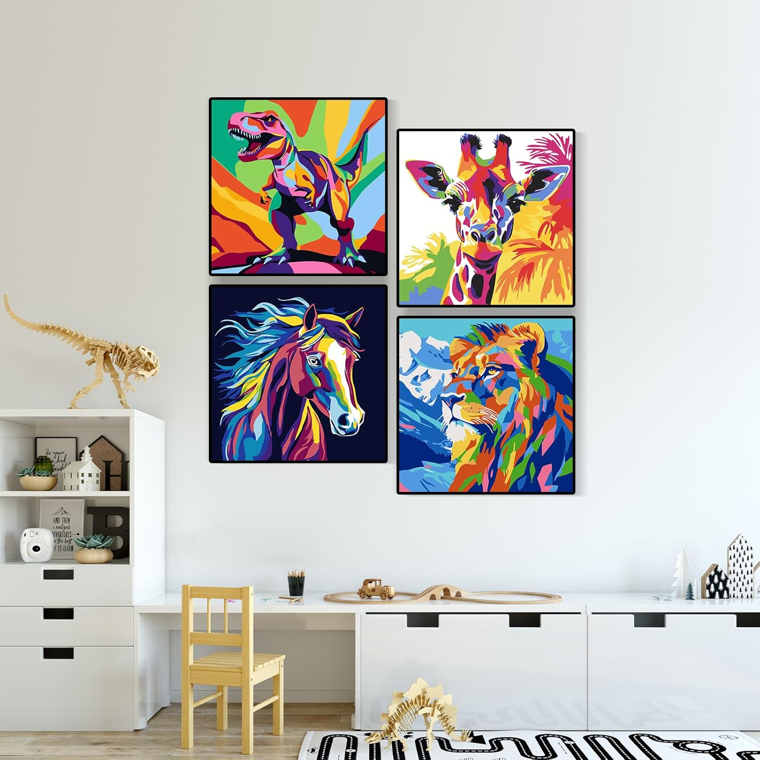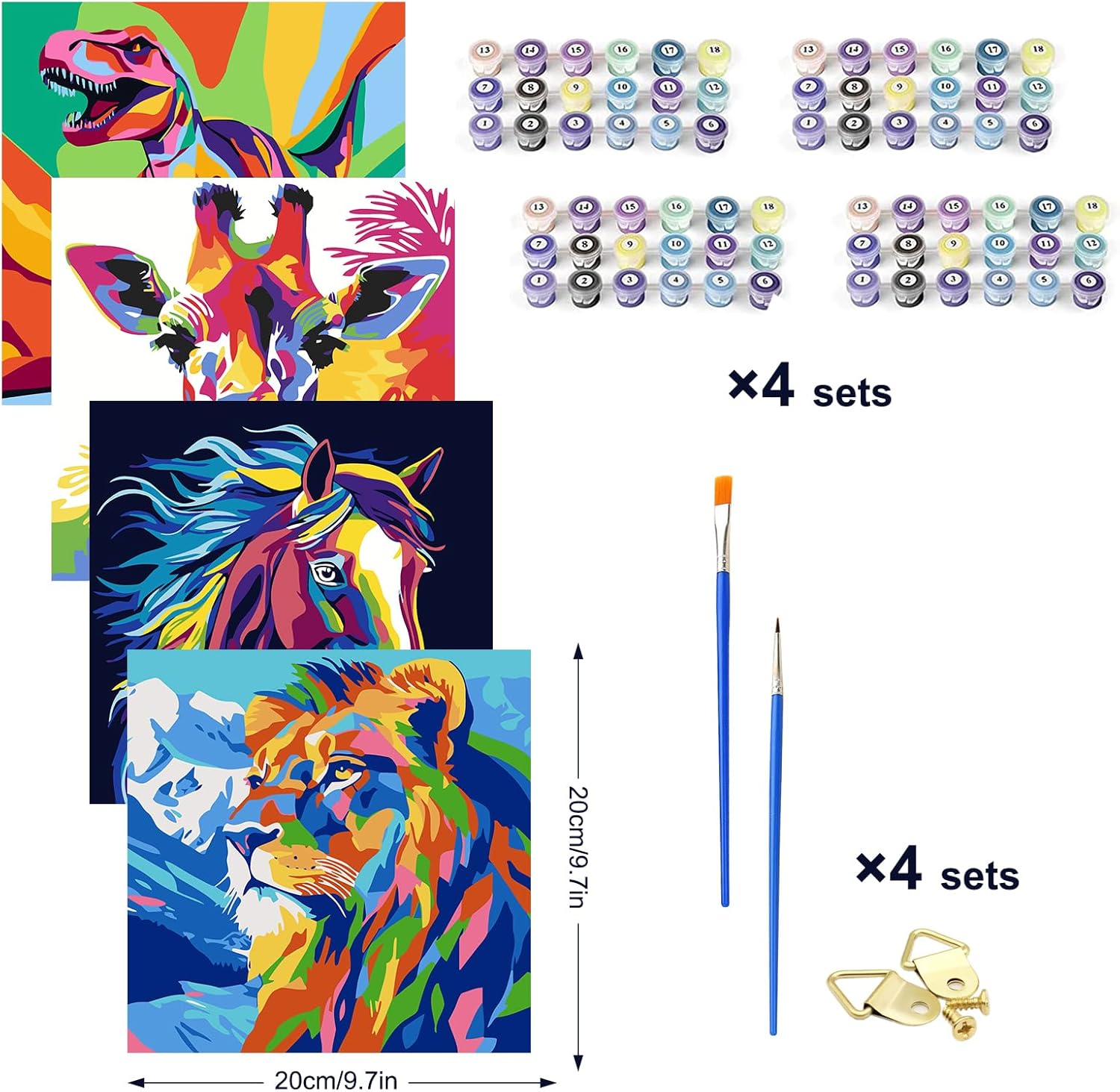 Jazcimdo 4 pezzi di pittura con i numeri per bambini, pittura con i numeri per bambini a partire dai 5, 6, 7, 8, 9, 10, 11, 12 anni, set di animali per bambine e ragazzi (20 x 20 cm)