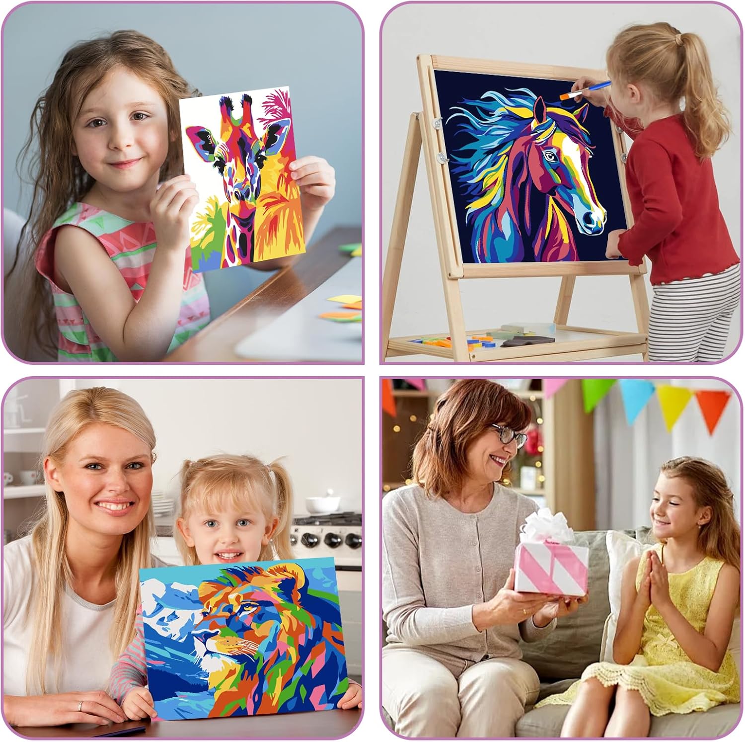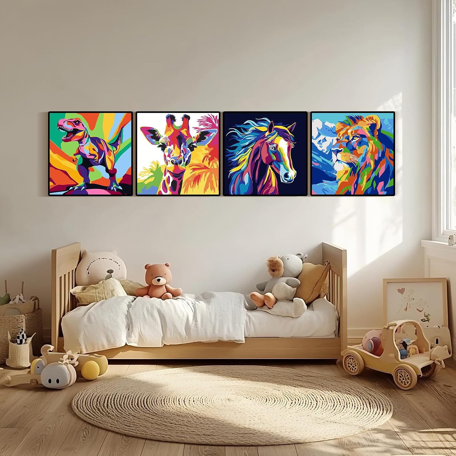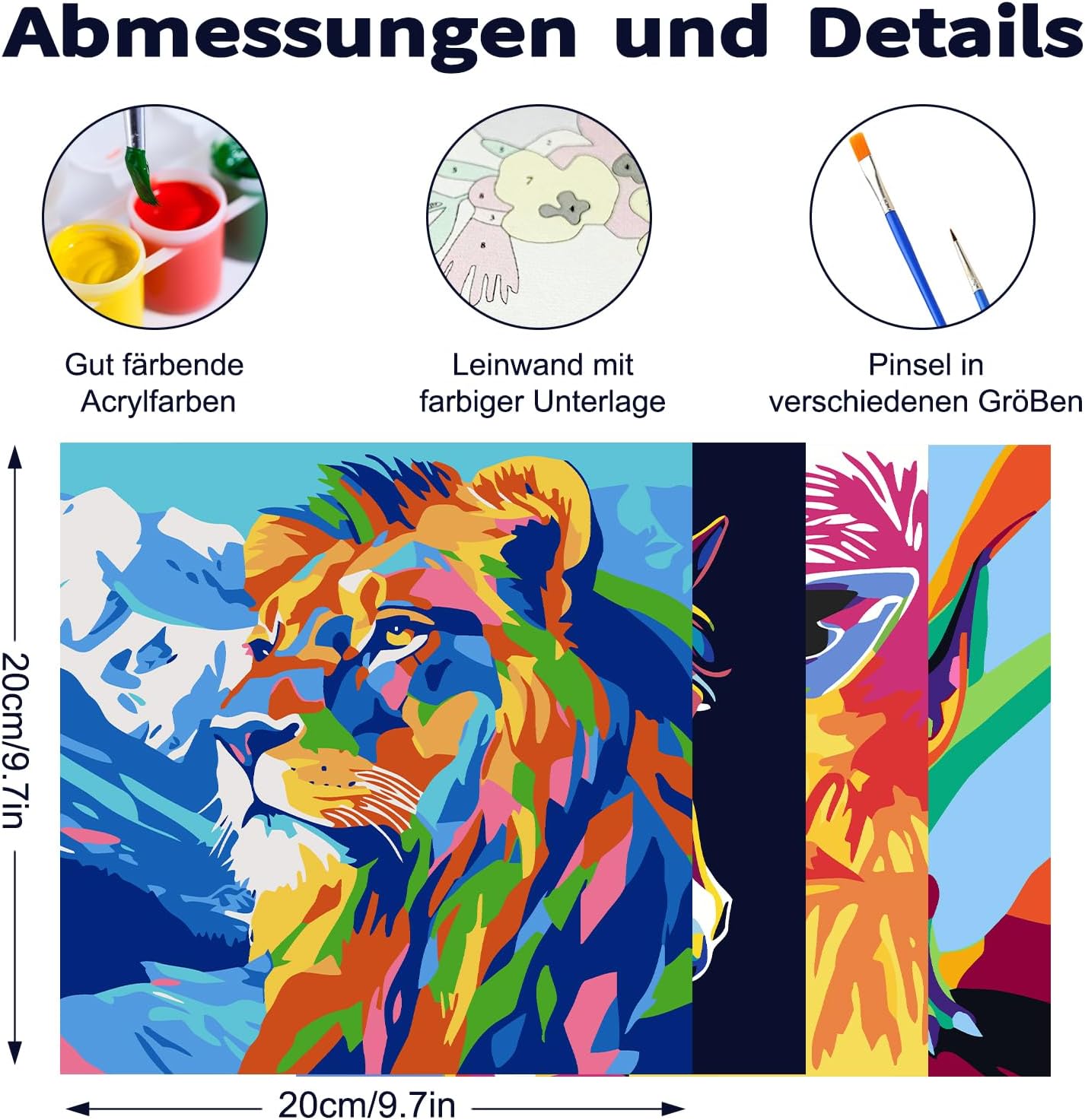 Jazcimdo 4 pezzi di pittura con i numeri per bambini, pittura con i numeri per bambini a partire dai 5, 6, 7, 8, 9, 10, 11, 12 anni, set di animali per bambine e ragazzi (20 x 20 cm)