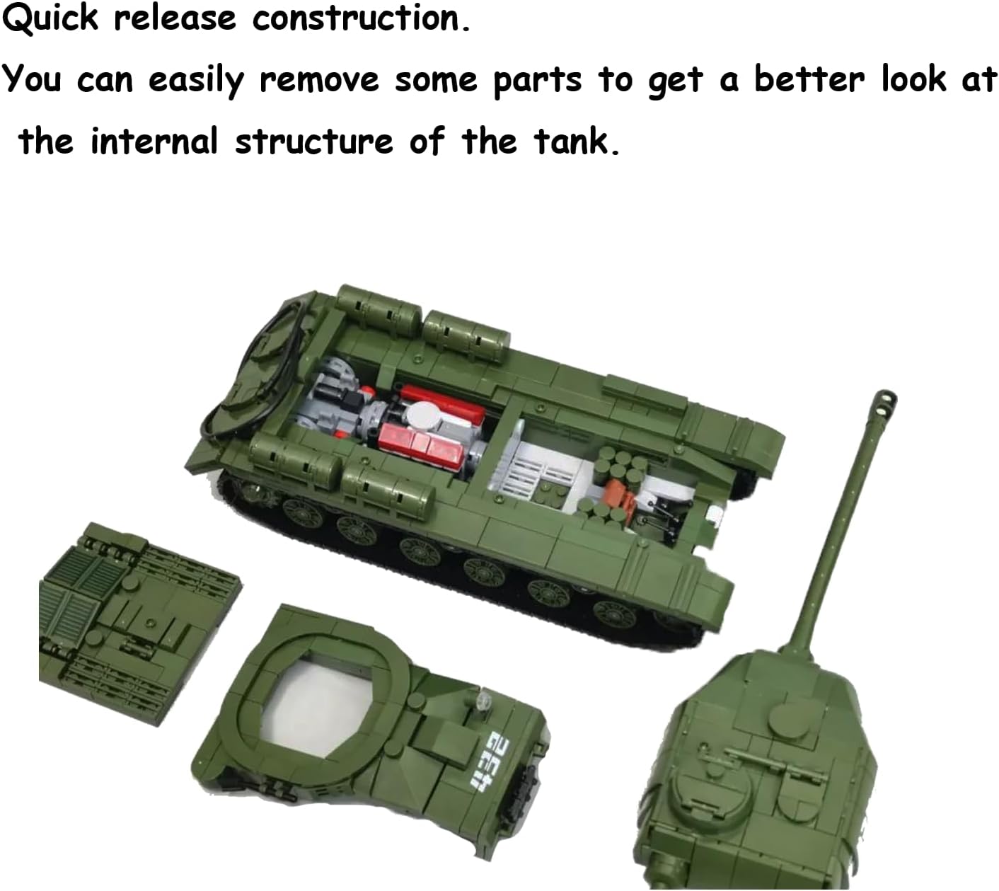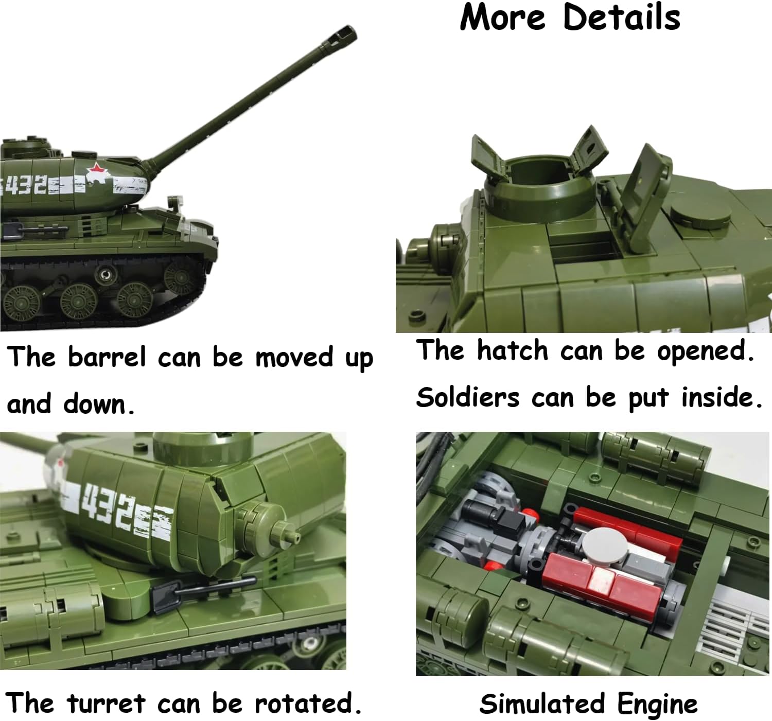 Ha caratteristiche che non puoi nemmeno immaginare. Ad esempio, puoi ruotare la torretta a piacimento, aprire il portello del carro armato e spingerlo in avanti. Oppure puoi spostare verso l'alto la canna del fucile, ecc. Ogni dettaglio è chiaramente visibile, che si tratti dei cingoli, del motore, della canna del fucile, delle armi o dei soldati: questo carro armato ti stupirà! La dimensione complessiva è di circa 38,5 x 11,5 x 11 cm. (Lunghezza x larghezza x altezza) Questo serbatoio contiene elementi costitutivi di parti del serbatoio, per un totale di 1402 pezzi, istruzioni cartacee dettagliate e imballaggio. Vieni a provare i set di mattoncini più divertenti nel mio negozio!