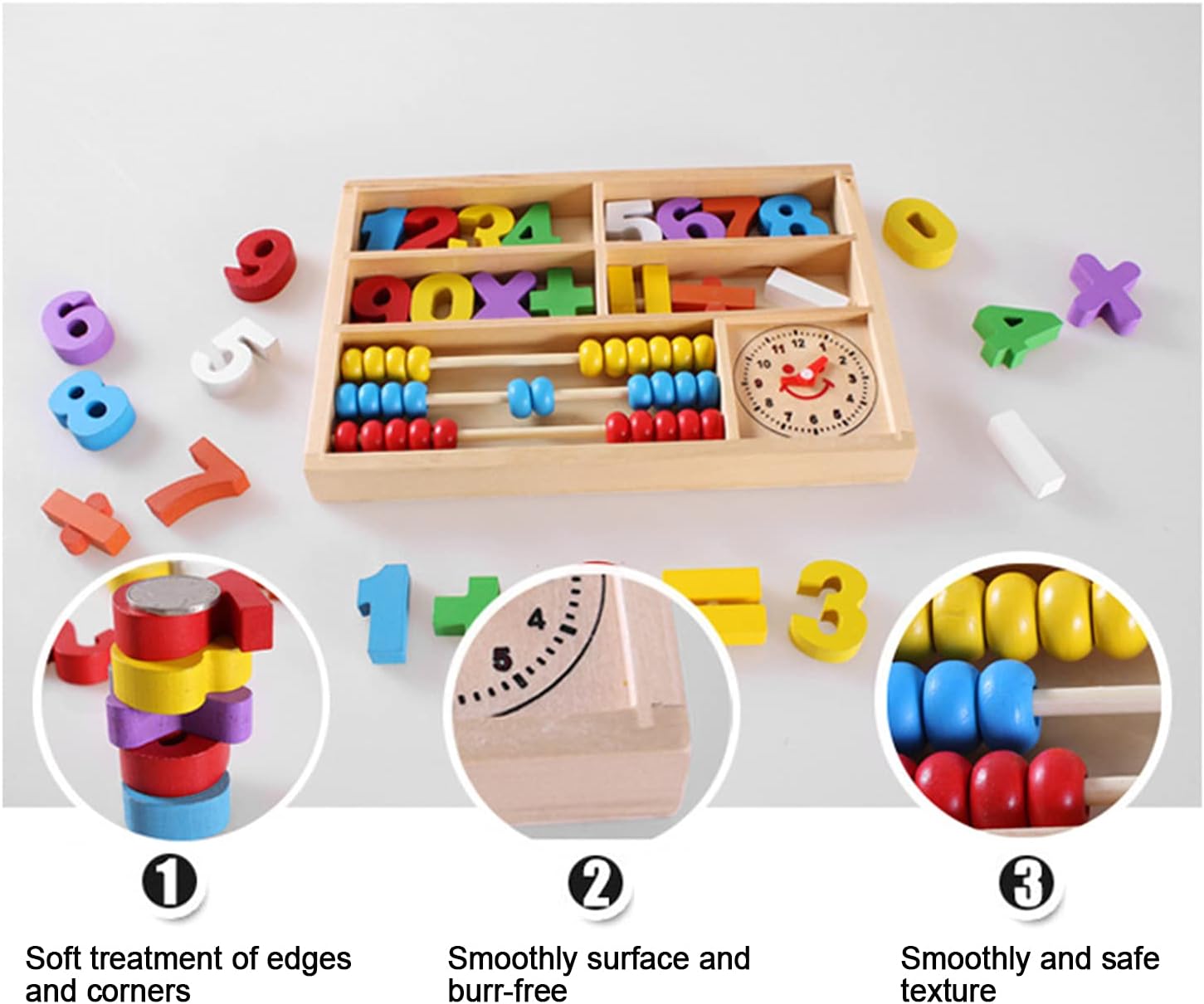 [ESPERIENZA DI APPRENDIMENTO OLISTICO] Sviluppa più abilità in un unico giocattolo [SUPERFICIE LISCIA E LUCIDA] Nessun bordo per la sicurezza del bambino [FORMAZIONE DI BASE INIZIALE] Costruisce solide basi matematiche [COLORI E NUMERI VIBRANTI] Incoraggia il riconoscimento visivo e numerico [STRUMENTO MATEMATICO TUTTO IN ] Promuove la risoluzione dei problemi e il pensiero critico