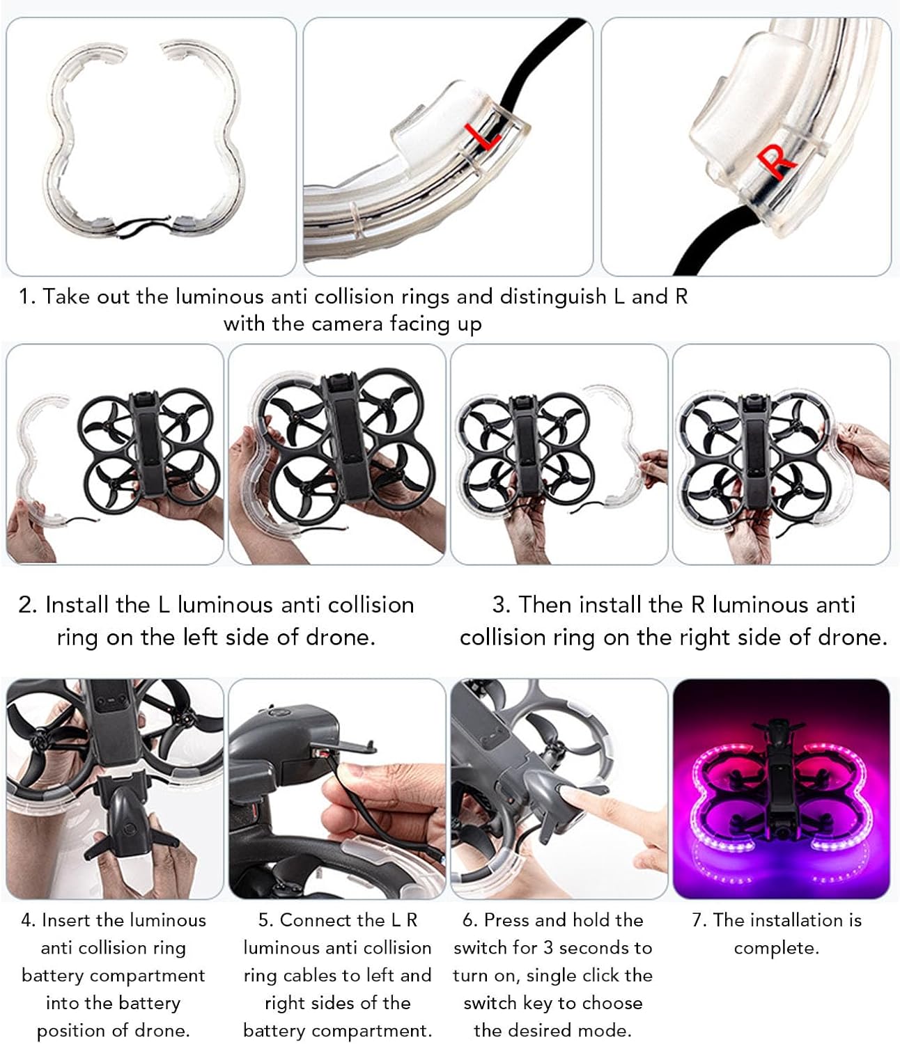 Installazione semplice: la copertura protettiva del paraurti ' anti-collisione si adatta all'installazione a scatto, non sono necessari altri strumenti, basta allineare il corpo del drone, agganciare l'anello luminoso del paraurti sul guscio protettivo ', robusto e non facile da staccare, non graffierà il corpo del drone Modello applicabile: questi accessori per droni di protezione del telaio del paraurti con cornice sono progettati specificamente per le eliche dei droni Avata 2, si adattano perfettamente ai bordi e li avvolgono completamente e non influiscono sull'uso del drone dopo l'installazione Design leggero: queste protezioni per eliche a sgancio rapido sono realizzate in materiale leggero, che non influisce sulla funzione di volo e rotazione del drone dopo l'installazione, garantendo sicurezza e assenza di danni. Puoi usarli con sicurezza Materiale TPU: l'anello paraurti protettivo della protezione ' è realizzato in materiale TPU, che ha un'elevata tenacità e ammortizza efficacemente la forza d'impatto; Design anti-collisione a doppio strato per evitare che il corpo del drone si graffi o si scontri Modalità multiple: il paraurti della copertura della protezione antiurto della pala ' presenta design luminoso, con totale di 7 modalità, rosso, verde, bianco sempre acceso e rosso, verde, bianco lampeggiante e flusso colorato possono essere commutati liberamente per soddisfare le esigenze della notte volare