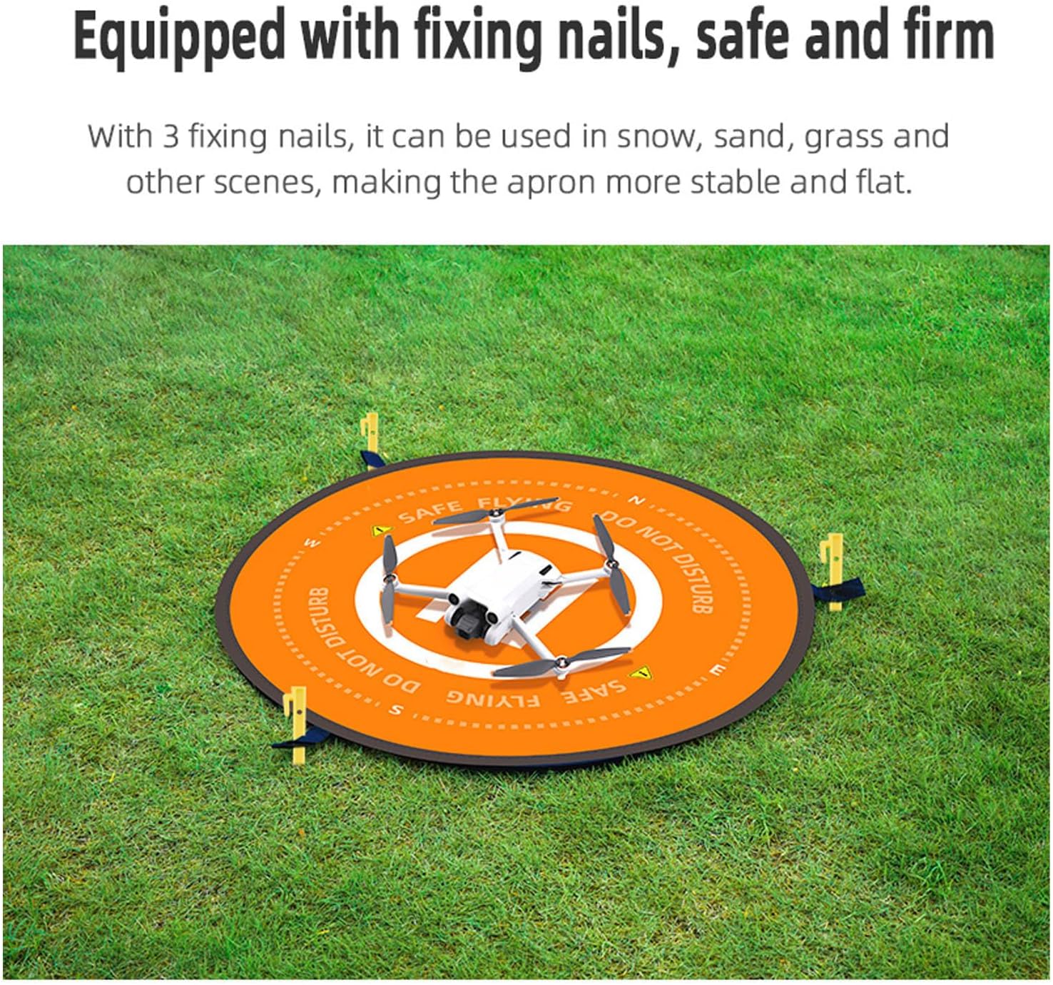 [Compatibilità assicurata] si adatta a vari droni tra cui 2 Zoom e altri marchi popolari per un uso senza soluzione di continuità. [Setup e portabilità facili] si svolgono facilmente e viene fornito con una borsa in nylon per un comodo trasporto. [Design ad alta visibilità] realizzato in tessuto Oxford a prova di pioggia con colori arancione e blu brillante che sono visibili giorno o notte. [Utilizzo versatile] Adatto a vari terreni come sabbia, erba, sporcizia e per la di atterraggio dei droni. [Robusto e durevole] dotato di picchetti per assicurarsi in condizioni ventose e strisce riflettenti guida di atterraggio .