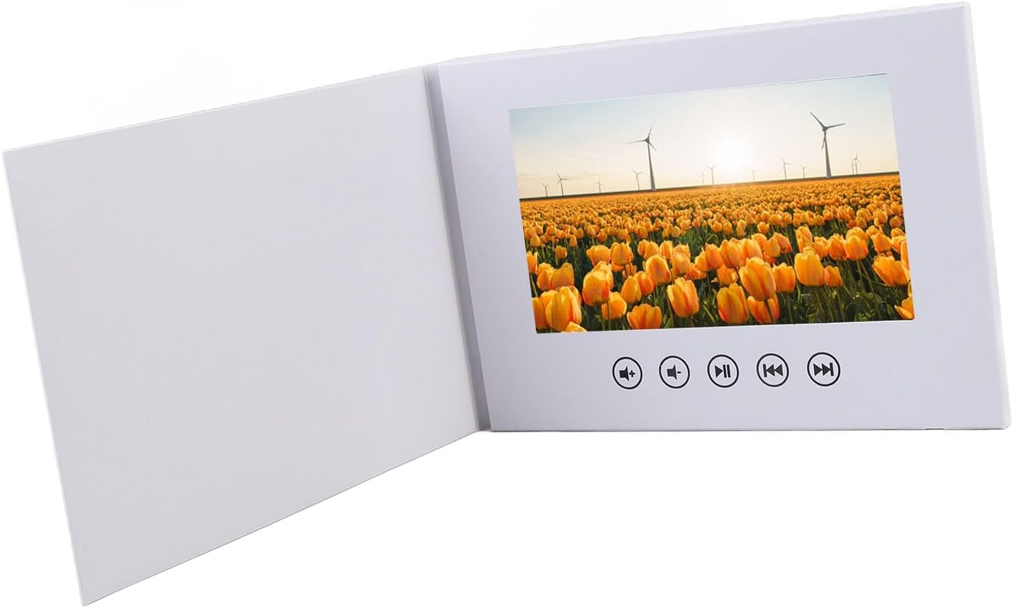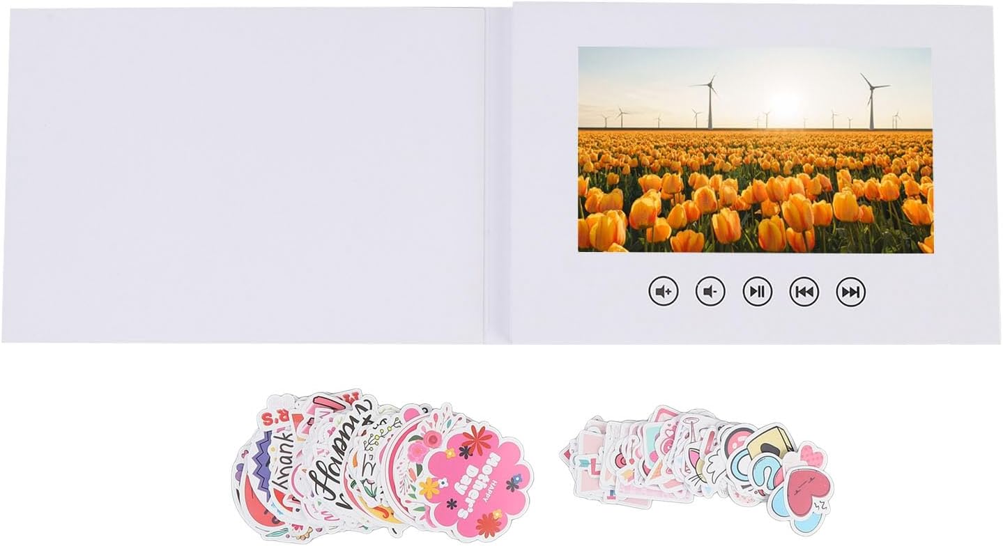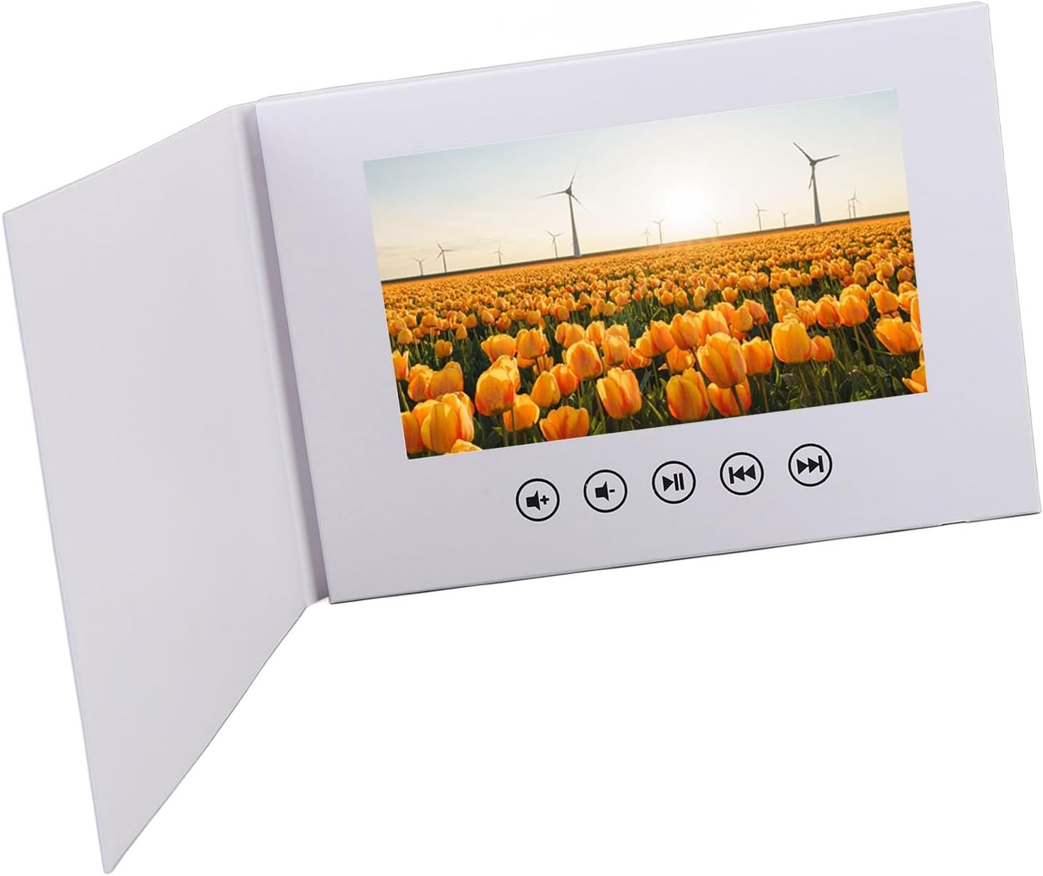 [Goditi i video con un'alta definizione] Acquista video mozzafiato 720p in un rapporto di aspetto di 4: 3 per un'esperienza visiva superiore. [Qualità del suono in eccesso] di audio chiaro dagli altoparlanti integrati e migliora ogni momento video. [Ideale per diverse occasioni] per matrimoni, aziende e campagne pubblicitarie e offre a ogni evento un tocco di raffinatezza. [Personalizza la tua carta] Esprimi la tua creatività con pacchetti adesivi contenuti e rendono ogni carta unica e speciale. [Facile ricarica e uso di lunga durata] Con una batteria LI da 1500 mAh, puoi goderti i problemi e la durata della carta.