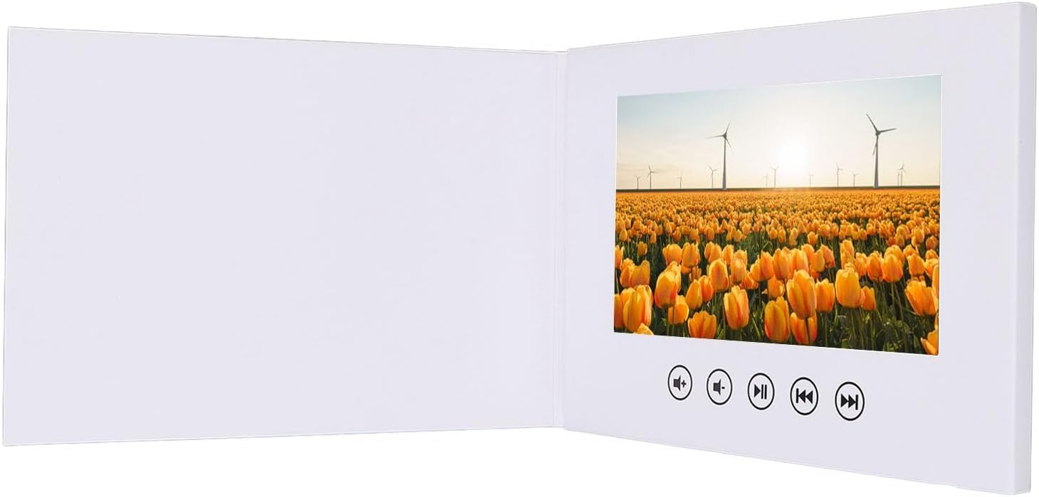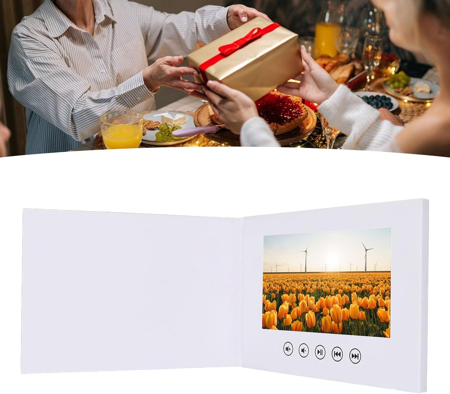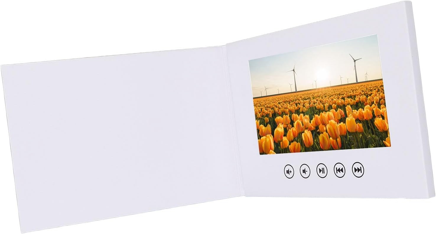 [Goditi i video con un'alta definizione] Acquista video mozzafiato 720p in un rapporto di aspetto di 4: 3 per un'esperienza visiva superiore. [Qualità del suono in eccesso] di audio chiaro dagli altoparlanti integrati e migliora ogni momento video. [Ideale per diverse occasioni] per matrimoni, aziende e campagne pubblicitarie e offre a ogni evento un tocco di raffinatezza. [Personalizza la tua carta] Esprimi la tua creatività con pacchetti adesivi contenuti e rendono ogni carta unica e speciale. [Facile ricarica e uso di lunga durata] Con una batteria LI da 1500 mAh, puoi goderti i problemi e la durata della carta.