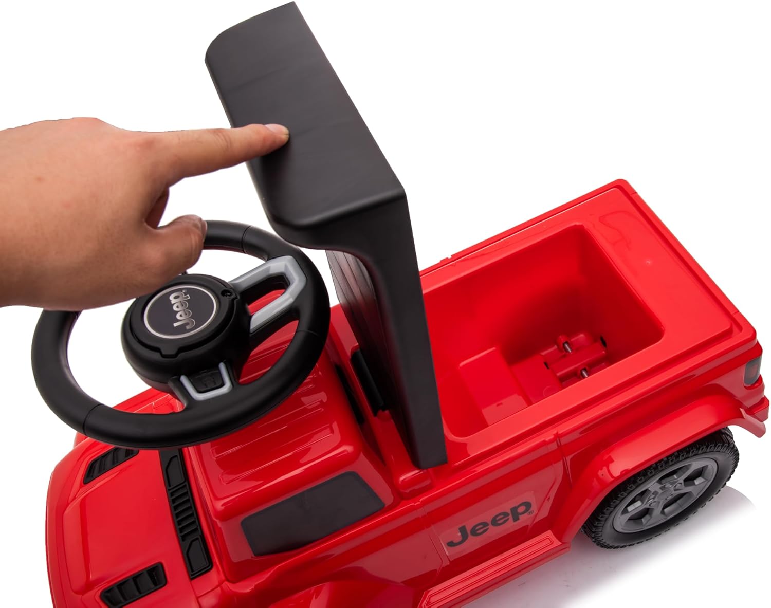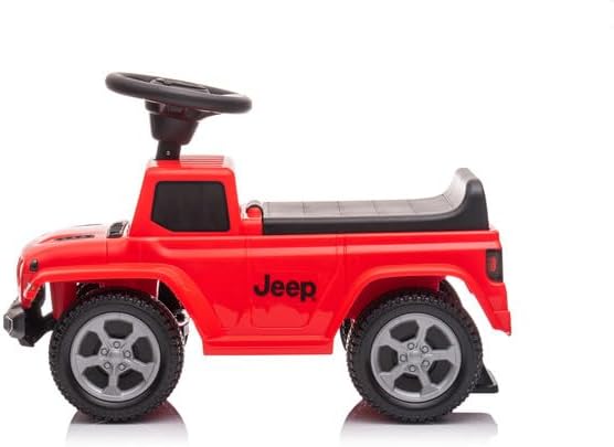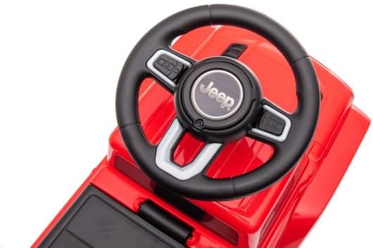 🚙 JEEP RUBICON CAVALCABILE – Veicolo per bambini con licenza ufficiale Jeep. Consigliato dai 12 mesi. 🎵 VOLANTE CON SUONI – Volante multifunzione con effetti sonori. Funziona con 2 pile AA (non incluse). 🧺 VANO NASCOSTO – Scomparto sotto il sedile per riporre giocattoli o accessori. 🛞 RUOTE CON FASCE IN GOMMA – Maggiore sicurezza e stabilità. Supporta fino a 25 kg. Conforme alla normativa europea CE. Colore bianco. 📏 DIMENSIONI DEL PRODOTTO – 64 x 30 x 39,5 cm (L x P x A). Il peso di questa macchina cavalcabile è di 3 kg.