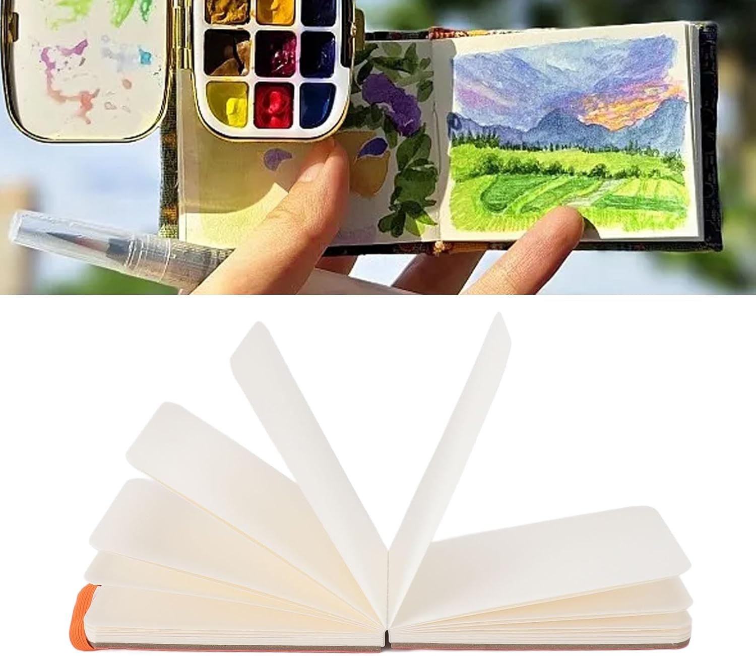 Design portatile: questo album di schizzi ad acquerello è compatto a 14 x 9 cm, adattandosi facilmente in borse per la creatività dell'ispirazione sempre e ovunque Carta spessa: album di schizzi ad acquerello presenta carta a doppia faccia da 300 gsm, ideale per schizzi rapidi, dipinti ad acquerello e scarabocchi dettagliati senza sanguinamento Viaggio Amichevole: Notebook di carta ad acquerello è robusto e leggero, rendendolo un compagno ideale per schizzi all'aperto, journaling urbano o avventure di viaggio Formato del paesaggio: i libri di schizzi del colore dell'acqua giacevano piatti per scene panoramiche, offrendo ampio spazio per catturare paesaggi ampi o composizioni a strati Uso versatile: il pad di acquerello funziona con supporti bagnati e asciutti, supportando matite, inchiostri e lavaggi leggeri per artisti di tutti i livelli di abilità