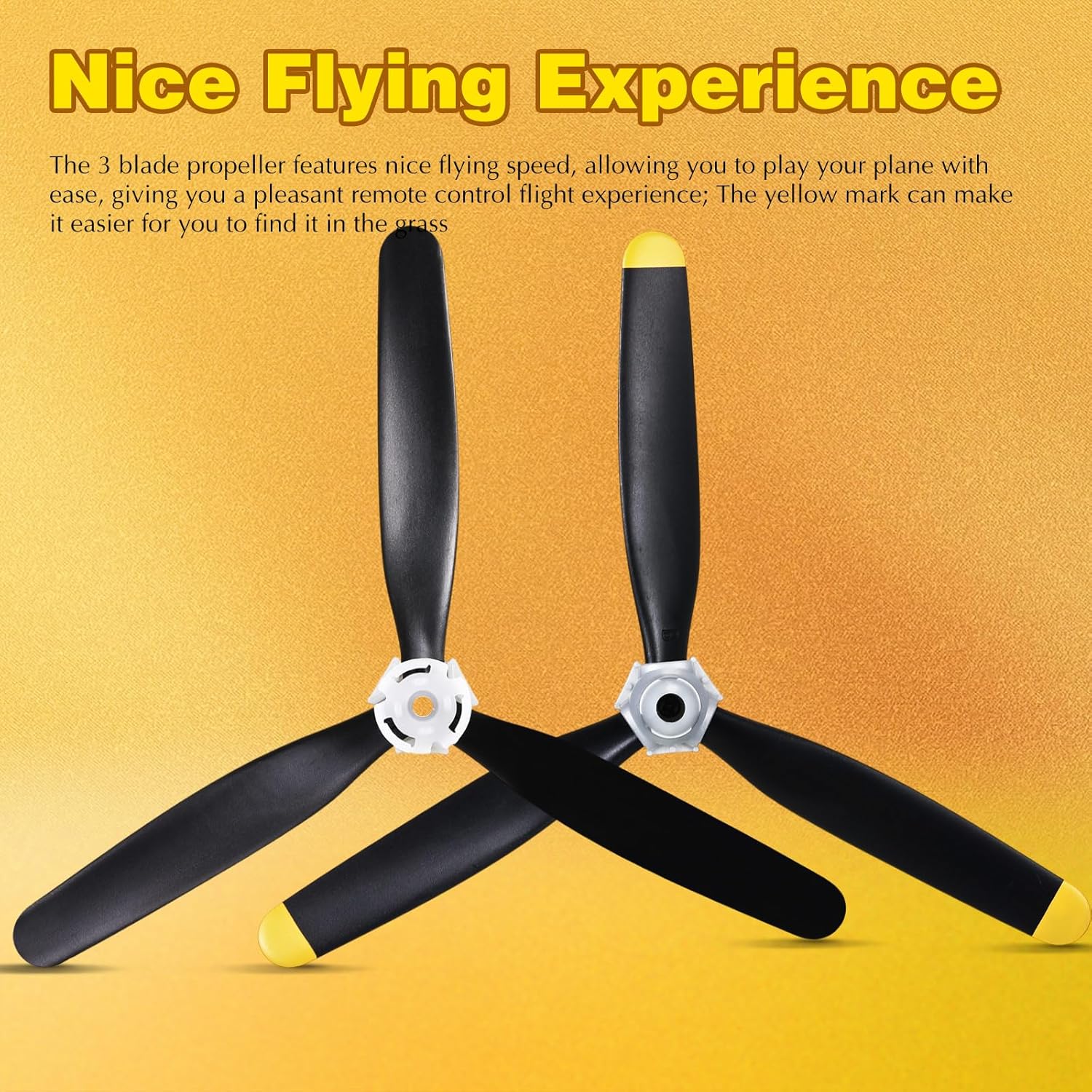 Il pacchetto include: Sono disponibili 3 eliche per aereo compatibili con l'aereo RC F4U da 500 mm e 3 adattatori per aereo, una quantità sufficiente per soddisfare le esigenze di utilizzo e sostituzione. Non devi preoccuparti di rimanere senza presto. Bella esperienza di volo: l'elica a 3 pale ha una buona velocità di volo, permettendoti di far volare il tuo aereo con facilità, regalandoti una piacevole esperienza di volo con il telecomando; il segno giallo può renderti più facile trovarlo sull'erba Materiale affidabile: il set di adattatori per eliche per aeroplani RC è realizzato in plastica ABS di alta qualità, con superfici e bordi lisci, senza sbavature, flessibile e lavabile, robusto e durevole, non facile da rompere, può essere utilizzato per lungo tempo Bel regalo: queste eliche per aeroplani possono essere utilizzate come un bel regalo per i tuoi piccoli o per gli amanti degli aeroplani, che possono aiutare i principianti a imparare a controllare l'aereo passo dopo passo Fornisce un'esperienza di volo stabile Facile da installare: l'aereo le eliche sono facili da installare secondo le istruzioni. Basta svitare quello vecchio e sostituirlo con uno nuovo, risparmiando molto tempo ed energia