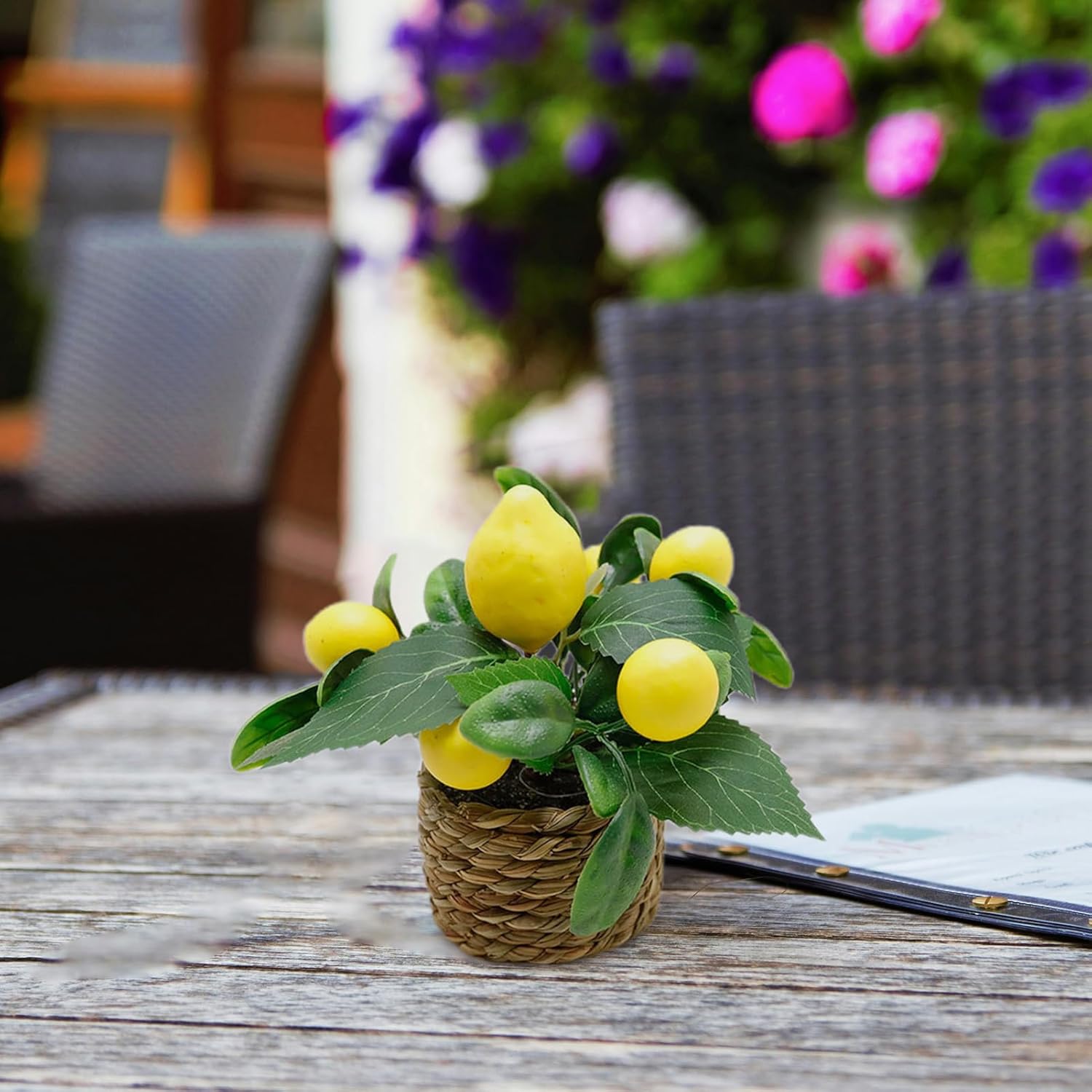 Albero di frutta in plastica a limone artificiale: il nostro realistico bonsai di limone finto è realizzato con foglie di plastica e frutta in schiuma, che possono essere usati a lungo, che ha una vera sensazione, una forma semplice ed elegante e linee chiare. Può essere usato a lungo. Maggiori dettagli Esperienza: gli ornamenti delle piante verdi al limone con letto di sabbia integrato simula bene il vero letto del suolo per dare peso, in modo che le tue piante possano stare stabili. Inoltre, la fioriera sarà più ornamentale e robusta. Facilità di utilizzo e cura: questa pianta di limone a limone di facile cura gli ornamenti manterranno per anni altezza, colore e forma senza annaffiatura o esposizione al sole. E il nostro albero può essere mantenuto senza potatura, basta pulirlo con un asciugamano quando c'è polvere. Progetto per decorazioni multiple: gli ornamenti delle piante verdi al limone sono adatti agli spazi interni e all'aperto. Aggiunge elementi gialli brillanti ai contatori della cucina, agli scaffali e ad altri spazi per decorazioni per la casa. Suggerimenti: le piante artificiali in vaso di mini limone possono essere schiacciate e deformate in transito, è possibile regolare i rami allo stato buono dopo averlo ricevuto. Sarà ripristinato al suo stato originale.