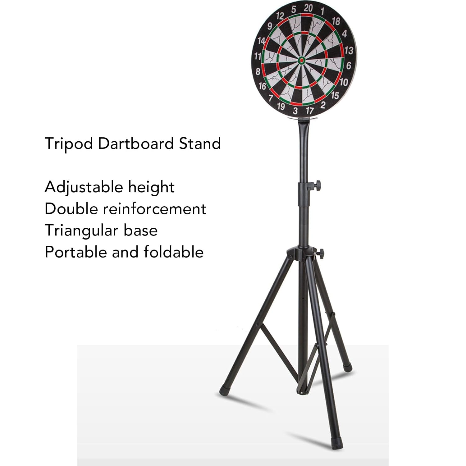 【Stabilità e Affidabilità】--- Il supporto per freccette è realizzato in acciaio inossidabile, garantendo una base stabile e affidabile. Ideale per un uso regolare senza compromessi sulle prestazioni. 【Facile Montaggio e Pieghevole】--- Il supporto non richiede il fissaggio delle freccette al muro. Progettato per un montaggio rapido e una facile piegatura, è comodo per il trasporto e lo stoccaggio. 【Supporto Triangolare Regolabile】--- Dotato di un robusto design triangolare che ne migliora la stabilità. La regolazione dell'altezza da 132 a 220 cm lo rende adatto a diverse esigenze. 【Altezza Bloccabile】--- Il supporto è dotato di impostazioni di altezza bloccabili, permettendo di regolare l'altezza della freccetta per un'esperienza di lancio ottimale. 【Applicazione Versatile】--- sia per competizioni professionali che per il tempo libero, il supporto offre un'esperienza di gioco divertente e affidabile in qualsiasi situazione.
