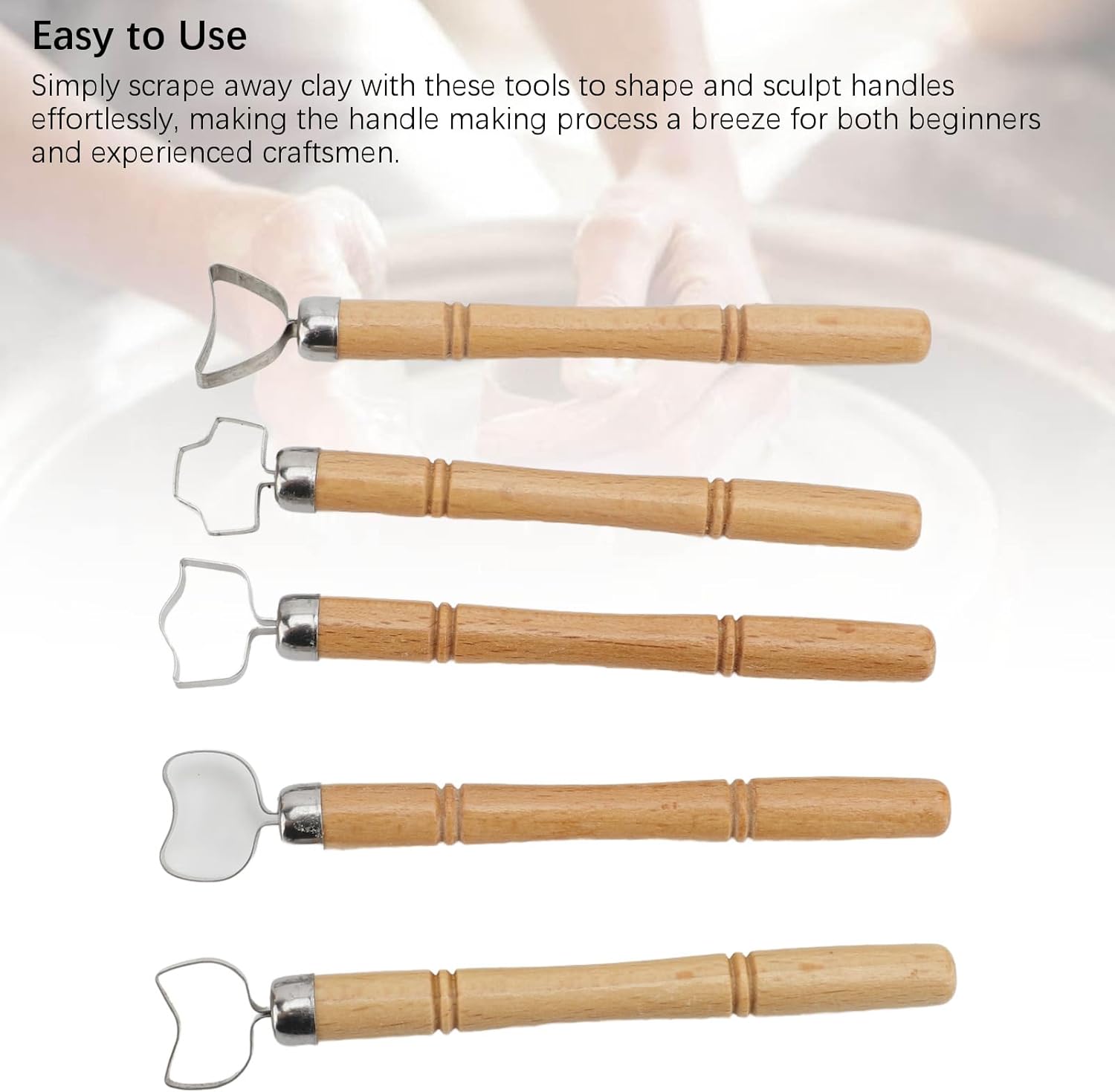 【Set Versatile】--- Ricevi 5 strumenti per ceramica con stili vari, tra cui manici per tazze e strumenti per scolpire vasi, ideali per i tuoi progetti creativi di ceramica. 【Profondità Regolabile】--- Crea facilmente manici unici per diversi utensili da tavola con la funzione di profondità regolabile, permettendo design personalizzati con precisione. 【Facile da Usare】--- Basta raschiare via l'argilla con questi strumenti per modellare e scolpire manici senza sforzo, rendendo il processo di creazione dei manici semplice sia per i principianti che per gli artigiani esperti. 【Design Delicato】--- Realizzati con taglieri in acciaio inossidabile e manici in legno, i nostri strumenti per ceramica sono robusti, prevengono la rottura e offrono una presa comoda per creare trame intricate, garantendo una performance duratura e riutilizzabile. 【Ampie Applicazioni】--- Ideali per la creazione di manici in ceramica, riparazioni, scultura, raschiatura dell'argilla e altre attività artigianali, questi strumenti per la scultura di manici in ceramica sono versatili e pratici, rendendoli una scelta ideale per regali a entusiasti e artigiani.