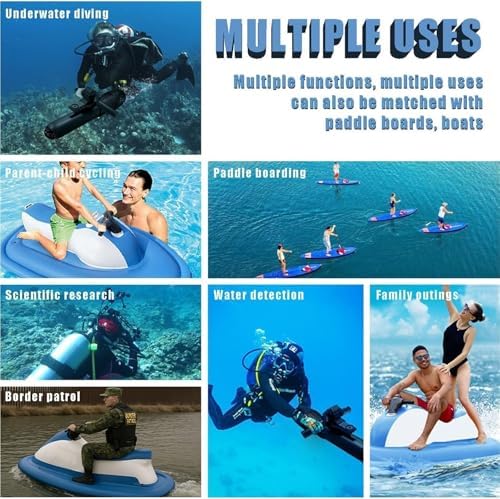 Durata della batteria estesa da 10000 mAh: goditi avventure acquatiche ininterrotte con una durata di 40-130 minuti! Il nostro motore elettrico kayak è dotato di una batteria ad alta capacità, perfetta per lunghe escursioni di snorkeling, attività in piscina per famiglie e esplorazioni costiere per bambini e adulti. POTENTE PROPULSIONE DA 500 W: Sperimenta un'efficienza di spinta senza precedenti con il nostro motore brushless professionale da 500 W con lame fluidodinamiche. Raggiungi velocità stabili tra 3 e 9 km/h, rendendolo ideale per paddle board, assistenza kayak o manovre di immersione rapida, perfetto per chi ama il brivido. Telecomando e funzionamento facile: naviga rapidamente e senza sforzo sulla tua barca a motore gonfiabile utilizzando il telecomando portatile. Con impostazioni di velocità regolabili (3 marce) e facile controllo della direzione (avanti/retro), è ideale sia per i principianti che imparano il controllo dell'acqua che per gli adulti che gestiscono sessioni di snorkeling estese. Struttura resistente all'acqua salata: costruito all'interno di un robusto guscio in plastica stampata a iniezione in un unico pezzo, il nostro motore è progettato per resistere a urti, cadute e corrosione dell'acqua di mare. Questa resistenza è essenziale per gli utenti abituali dell'oceano e assicura che resista alla maneggevolezza accidentale da parte dei bambini, consentendo di nuotare liberamente senza preoccupazioni per la sua durata. Manico rimovibile regolabile a 360°: controlla la direzione senza sforzo durante le immersioni con una maniglia ergonomica che può essere personalizzata in pochi secondi. Il manico dello scooter subacqueo a sgancio rapido ruota di 360°, rendendolo comodo per tutte le posizioni, sia che gli adulti stiano trainando l'attrezzatura subacquea o i bambini si aggrappano durante le lezioni di nuoto.