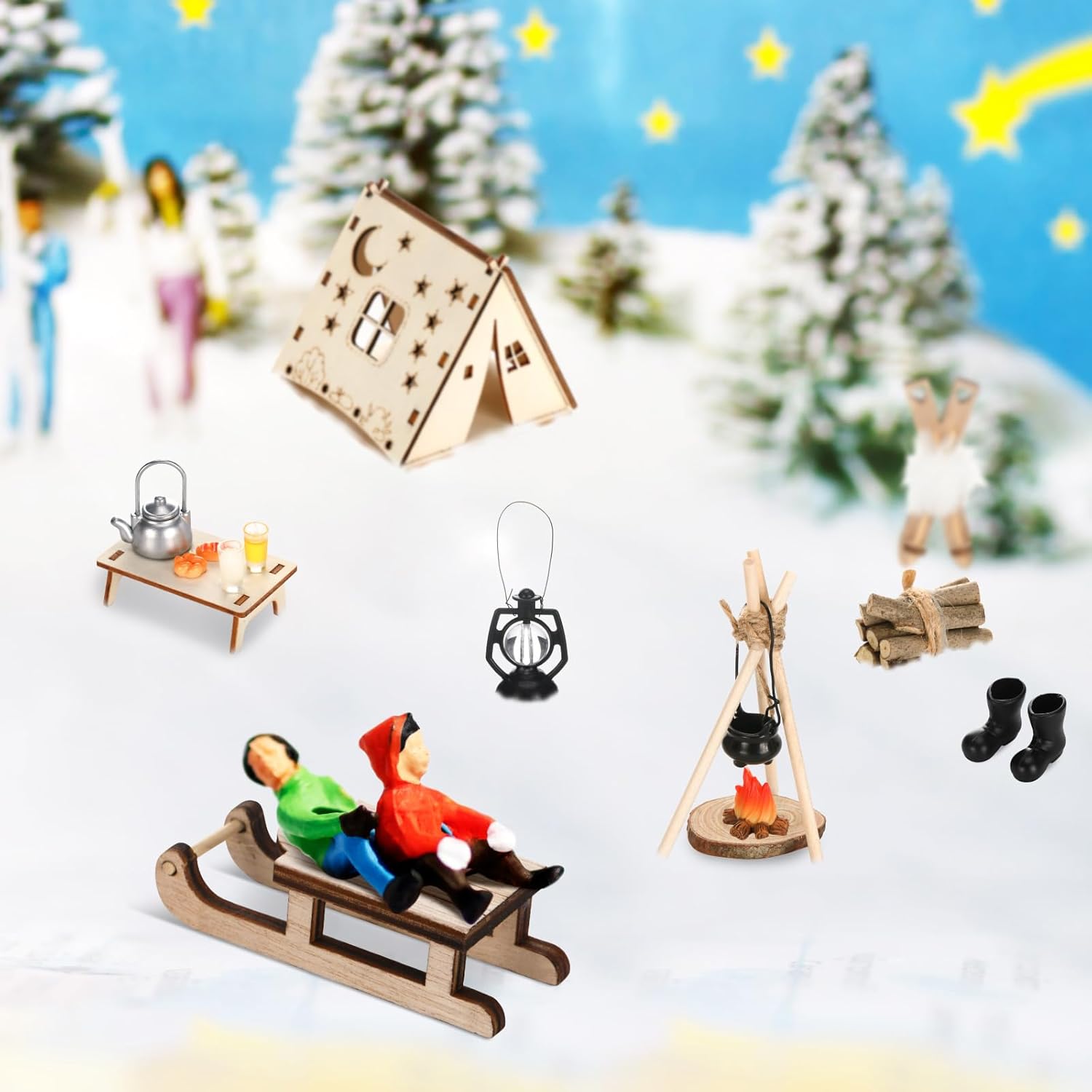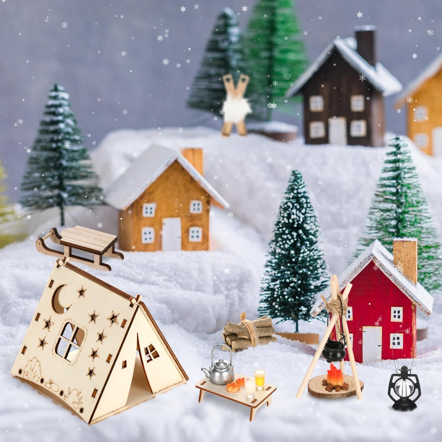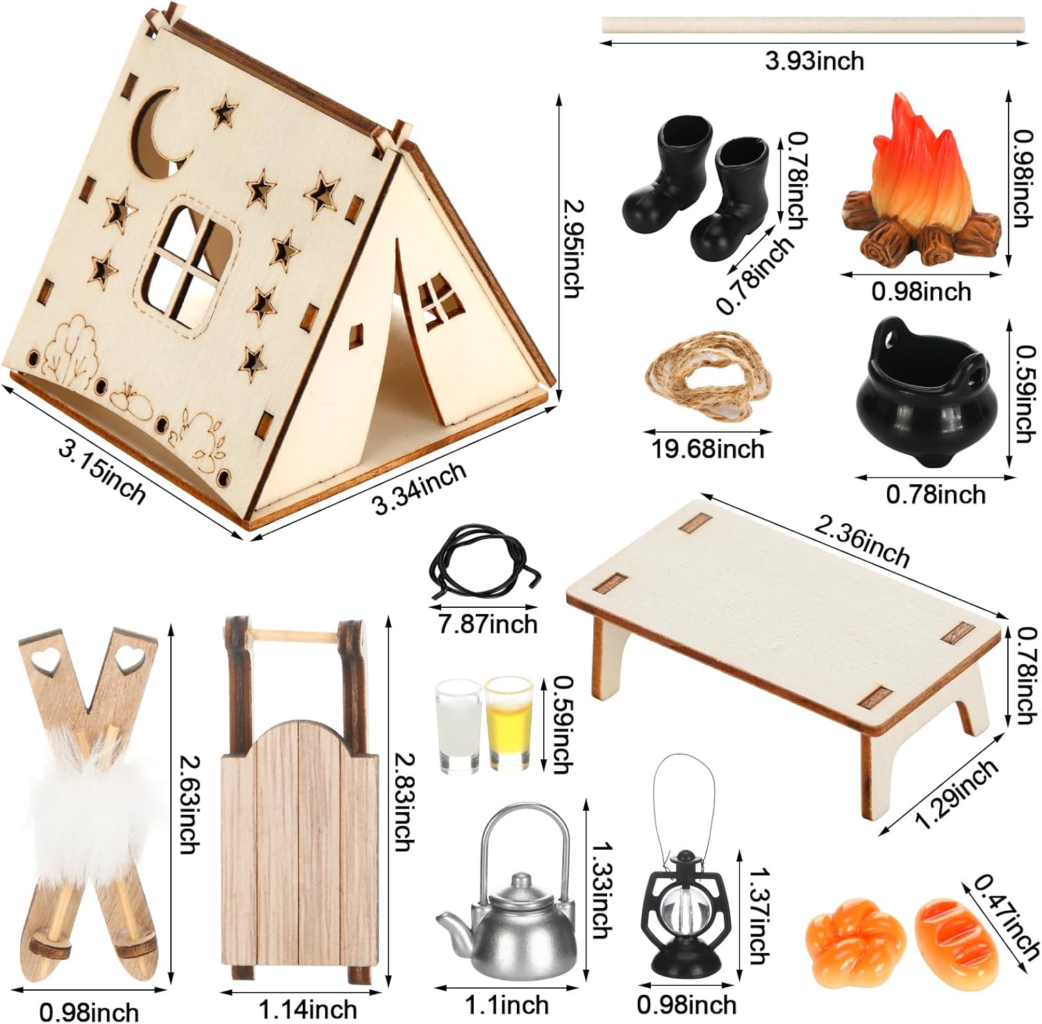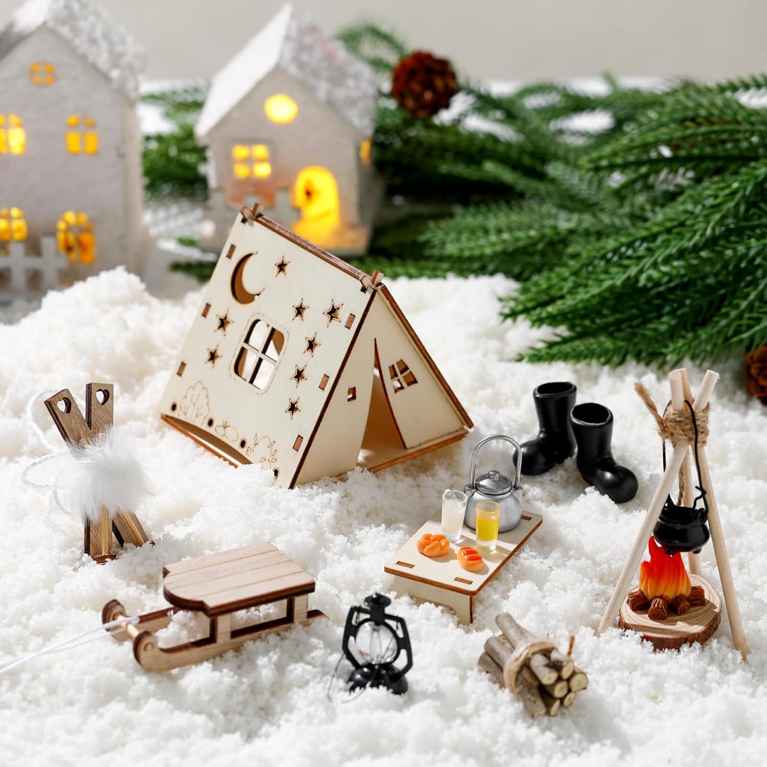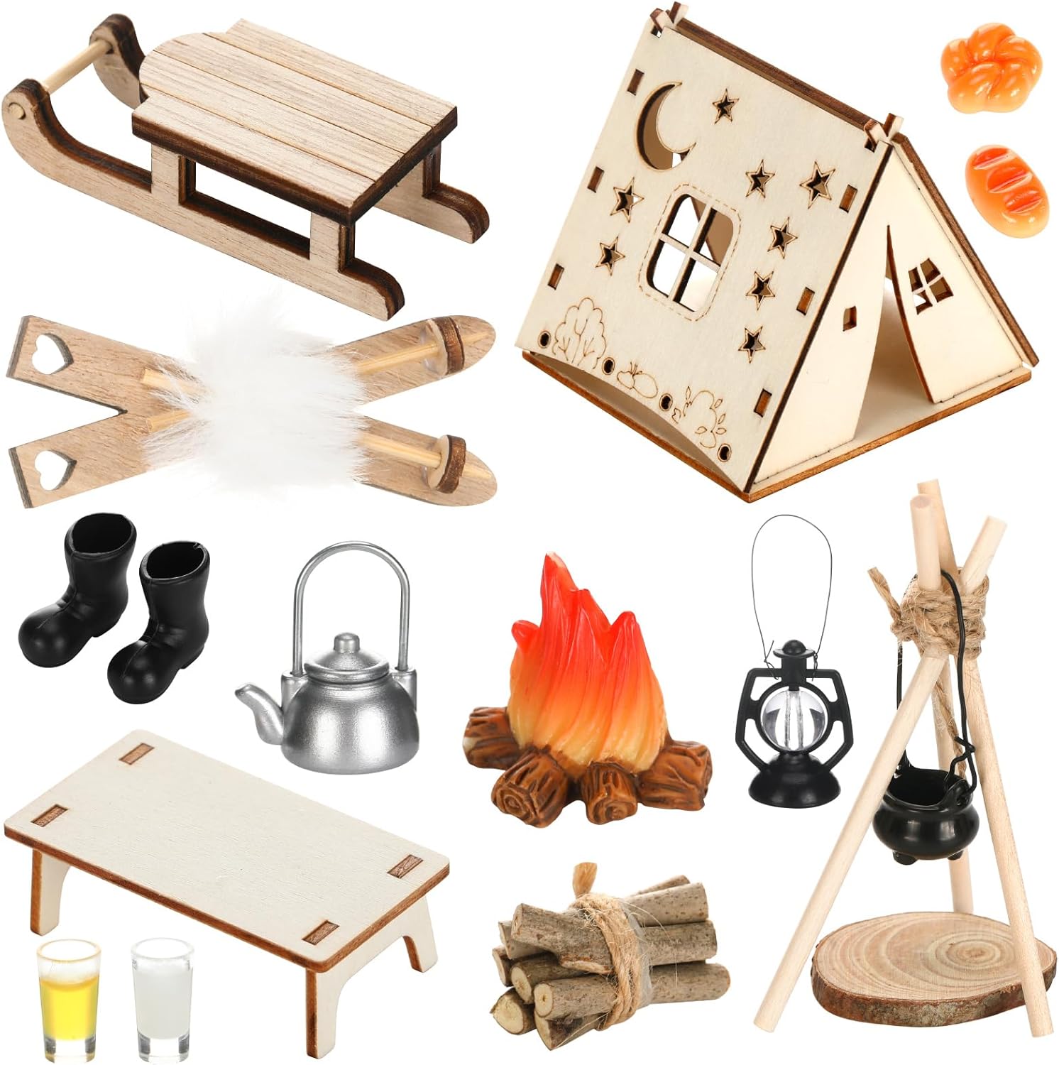 Configurazione del set completo: il accessori di gnomi in miniatura include una tenda da campeggio, un tavolo, un bollitore, una slitta, degli sci, una catasta di legna da ardere, una stufa portatile, un falò, una lampada da parete, un set per pane e latte e altri accessori squisiti; Tutti gli articoli possono essere combinati liberamente per creare facilmente una scena da campeggio invernale natalizia da sogno Configurazione del set completo: il accessori di gnomi in miniatura include una tenda da campeggio, un tavolo, un bollitore, una slitta, degli sci, una catasta di legna da ardere, una stufa portatile, un falò, una lampada da parete, un set per pane e latte e altri accessori squisiti; Tutti gli articoli possono essere combinati liberamente per creare facilmente una scena da campeggio invernale natalizia da sogno Artigianato squisito: ogni mini accessorio da campeggio per gnomi è realizzato con cura per replicare fedelmente la vera attrezzatura da campeggio, la squisita fattura garantisce che ogni dettaglio sia realistico, così potrai vivere un'esperienza di gioco coinvolgente che stimola la tua creatività, crea un'atmosfera natalizia e ti regala ricordi meravigliosi Usi versatili: questo accessorio natalizio a forma di gnomo include più di dieci accessori che possono essere combinati liberamente, tra cui una tenda di legno e un falò, che tu voglia decorare una porta a forma di gnomo, allestire una casa delle bambole, creare un paesaggio da giardino in miniatura o usarlo come calendario dell'Avvento: aggiunge un tocco fiabesco a qualsiasi ambiente Esperienza interattiva creativa: questo mini accessorio fai da te per la casa delle bambole semplifica la costruzione di scene, combinando queste scene fai da te, puoi creare diverse storie avventurose per i nani, creare un'atmosfera natalizia e portare gioia e calore nella tua casa; È anche un regalo creativo per amici, colleghi e familiari che amano creare con modelli in miniatura