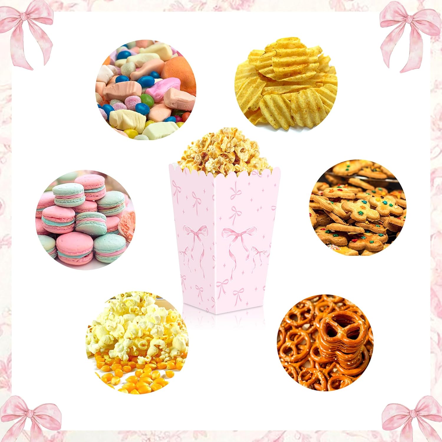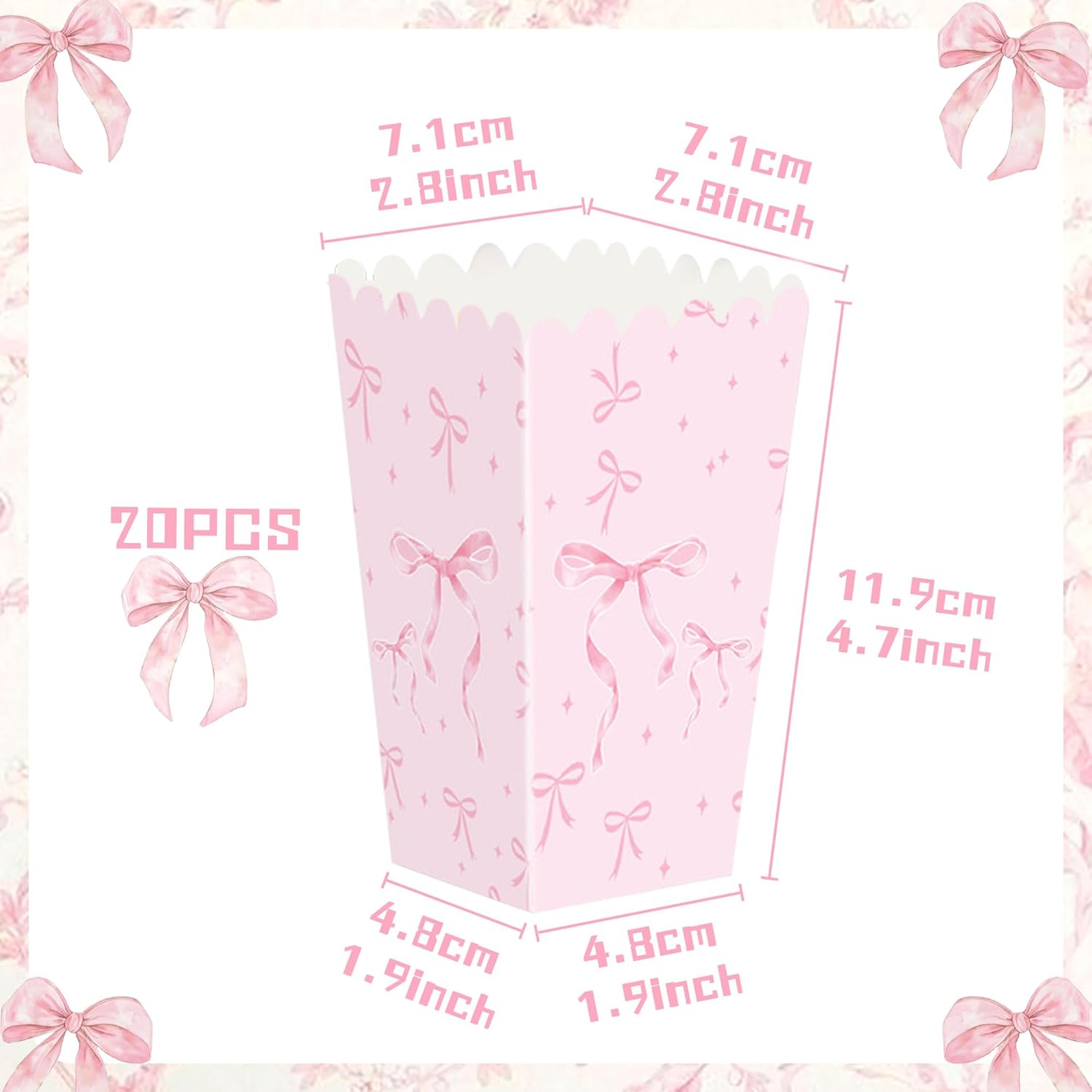 Il grazioso design dell'arco aggiunge un'atmosfera giocosa e affascinante a qualsiasi festa. Ben adattato alle preferenze di giovani ragazze e aspiranti scatole di popcorn pratiche e belle sono ideali per riempire e distribuire facilmente snack alle feste di compleanno Cosa ottieni: 20 scatole di popcorn con fiocco rosa Questa scatola per bomboniere ha un uso multifunzionale, non solo adatta per i popcorn, ma può anche essere utilizzata per confezionare caramelle o oggetti artigianali Se hai domande sul prodotto, saremo felici di aiutarti