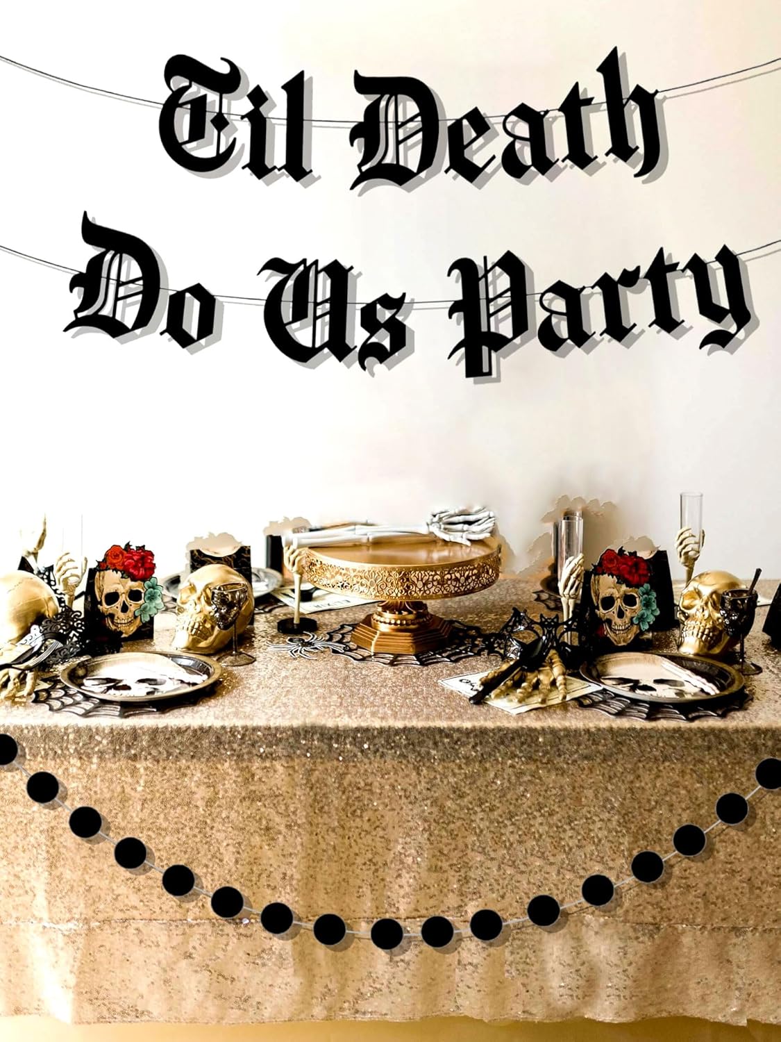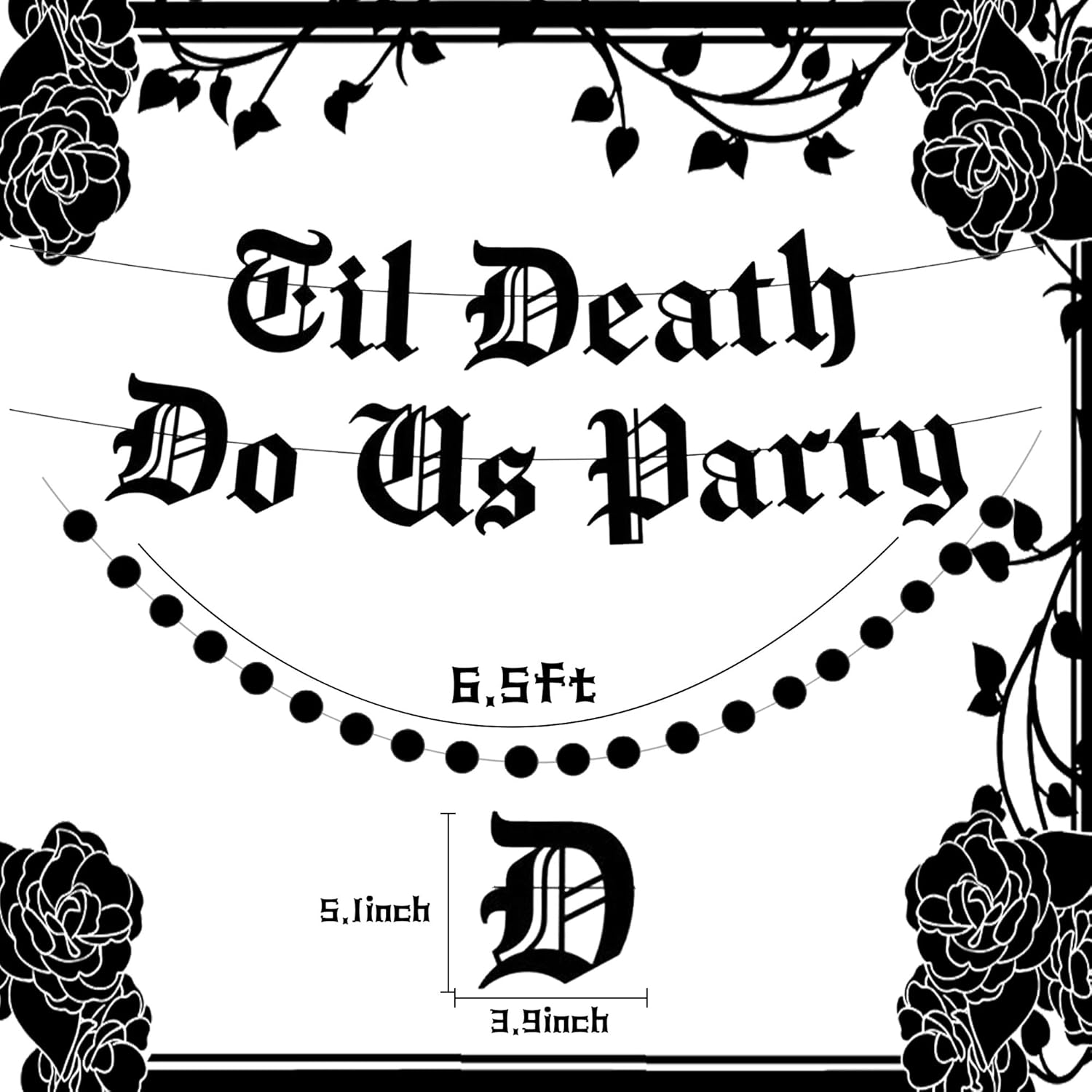 Le nostre decorazioni gotiche per la festa di matrimonio porteranno abbellimenti meravigliosi e sognanti alla tua festa Puoi usare le nostre decorazioni nere per la festa nuziale per completare una bellissima festa Til Death Do Us 【Cosa ottieni】1 x banner circolare nero, 1 x palloncino con lettera "Til Death Do Us Party" Le nostre decorazioni nere di fidanzamento porteranno gioia senza precedenti e bellissimi momenti alla tua famiglia e ai tuoi amici Se hai qualche problema, per favore fammi sapere