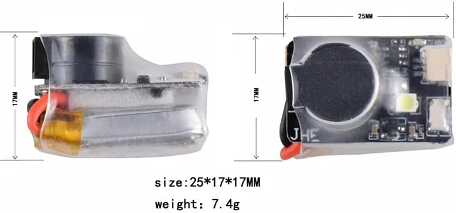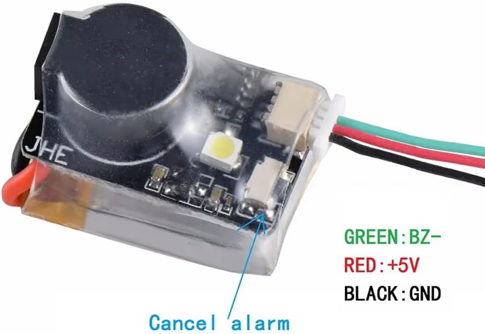 Supporta le funzioni del cicalino attivo tradizionale e sincronizzato con il controllo di volo. Quando il controller di volo è collegato normalmente, se la batteria di volo principale è spenta, può ancora emettere automaticamente 100dB di suono di goccia dopo 30 secondi di interruzione di corrente, e il LED emetterà luce bianca.