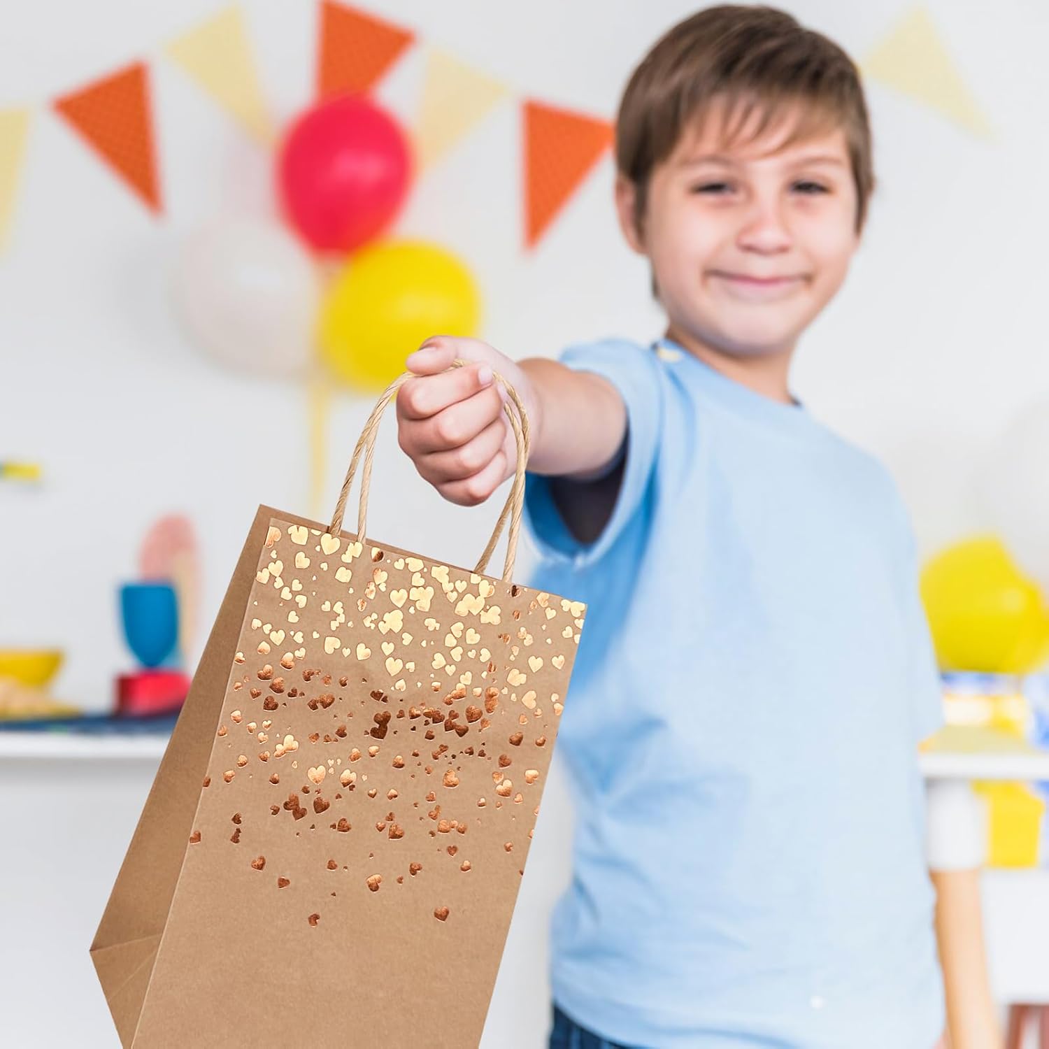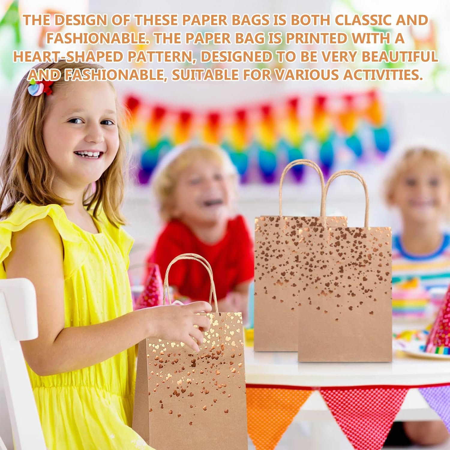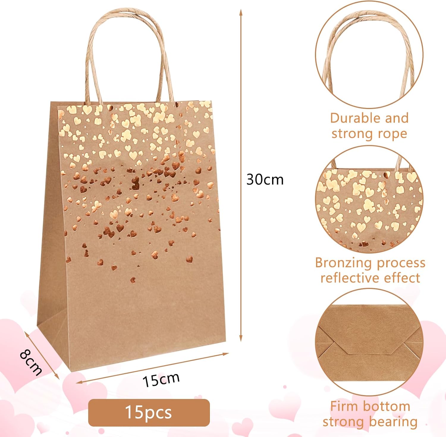 【Sacchetti di carta con manico】 La nostra confezione contiene 15 sacchetti regalo con motivo a cuore abbronzato. Questa quantità è sufficiente per soddisfare le diverse esigenze della vita quotidiana o diversi tipi di feste. 【Materiale di alta qualità】Sacchetti regalo realizzati in carta kraft naturale di alta qualità, qualità forte e robusta, lunga durata, pieghevole, ecologico, inodore e sicuro per i tuoi usi, riutilizzabile. 【Ampie applicazioni】 Questi sacchetti di carta colorati hanno un fondo piatto in modo che possano essere posizionati in posizione verticale. Ideale per conservare torte, caramelle, biscotti e altri dolci. 【Design classico】 I nostri sacchetti regalo sono stampati con molti accattivanti motivi a cuore dorato, belli e accattivanti, classici ed eleganti. E ogni borsa è dotata di maniglie nella parte superiore per poterla trasportare comodamente. 【Versatile】 I sacchetti di carta con manico sono adatti per feste di compleanno, matrimoni e confezioni regalo. Può essere utilizzato anche come sacchetti regalo, sacchetti di caramelle, sacchetti di Natale, sacchetti per feste, ecc.