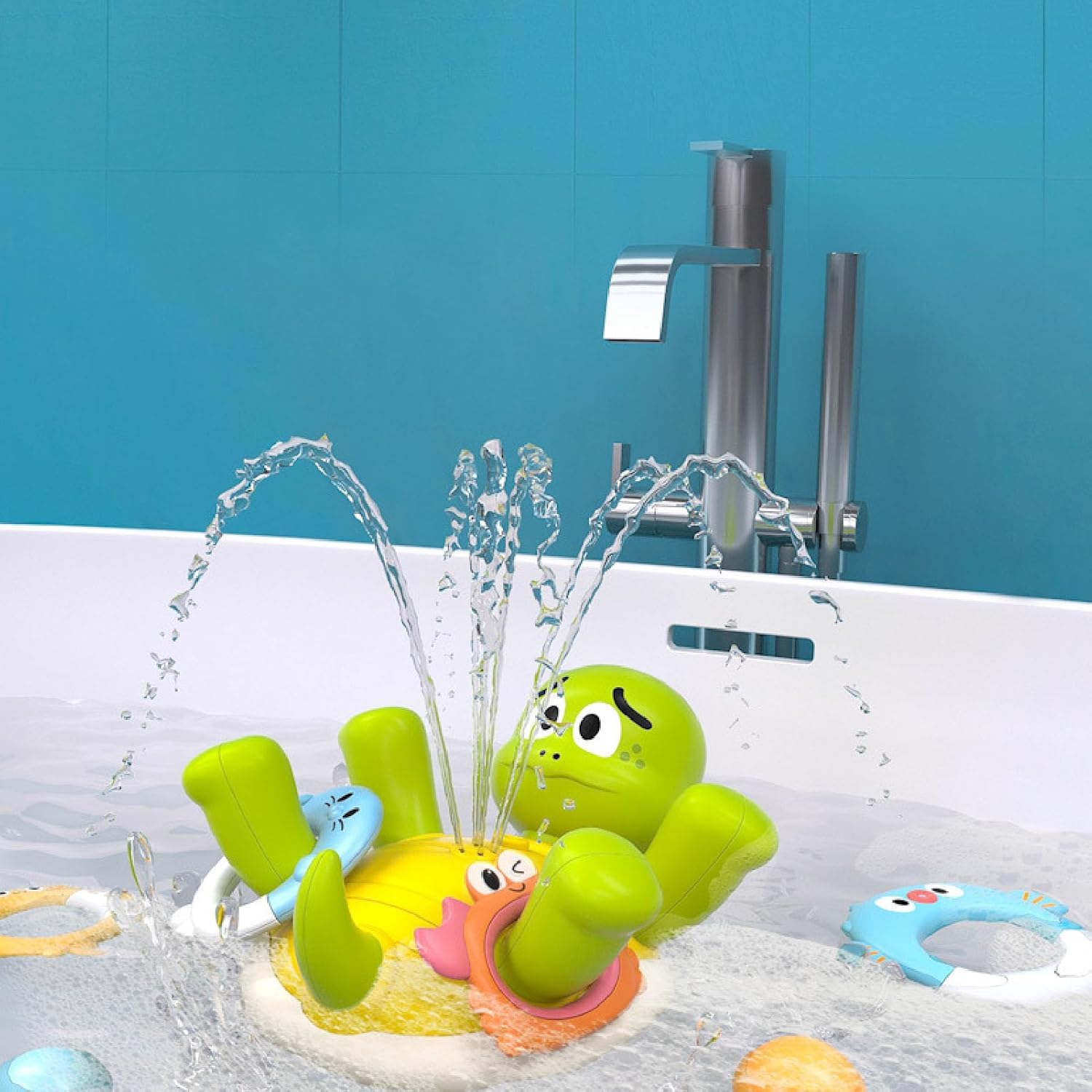 [GODITI IL TEMPO DEL BAGNO] Rendi il momento del bagno più piacevole e rilassante per il tuo bambino con la funzione automatica di spruzzo d'acqua. [SICURO E DUREVOLE] Questo giocattolo è realizzato con materiali sicuri e garantisce la salute del tuo bambino e un divertimento senza fine durante il bagno. [FACILE DA USARE] Il design elettrico consente un funzionamento semplice, consentendo al bambino di divertirsi in modo indipendente. [SVILUPPARE L'IMMAGINAZIONE] Stimola l'immaginazione e la creatività di tuo figlio con questo realistico giocattolo da bagno. [ANELLI COMPRESI] Migliora il divertimento del bagno con il gioco del lancio degli anelli e aggiungi eccitazione e varietà all'esperienza.