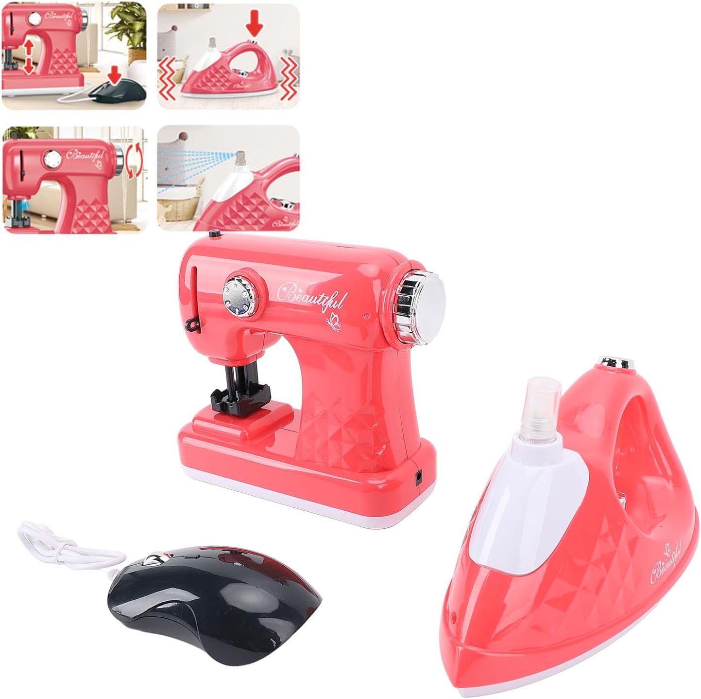 [GIOCATTOLO EDUCATIVO] Stimola l'immaginazione e la creatività dei bambini con questo set da gioco per la simulazione della macchina da cucire elettrica e del ferro. [GIOCO DI FANTASIA] Presenta un design realistico con una macchina da cucire elettrica e un ferro da stiro, per un gioco fantasioso ed educativo. [SICURO PER I BAMBINI] Realizzato in materiale ABS sicuro e durevole, garantisce un ambiente di gioco sano e sicuro. [DIVERTIMENTO DI LUNGA DURATA] La squisita fattura e la facilità d'uso garantiscono ore di divertimento e apprendimento per . [BONDING FAMIGLIARE] Ideale per Box/Cover e asili nido, favorisce l'interazione genitore-figlio e promuove l'amore per le attività manuali.