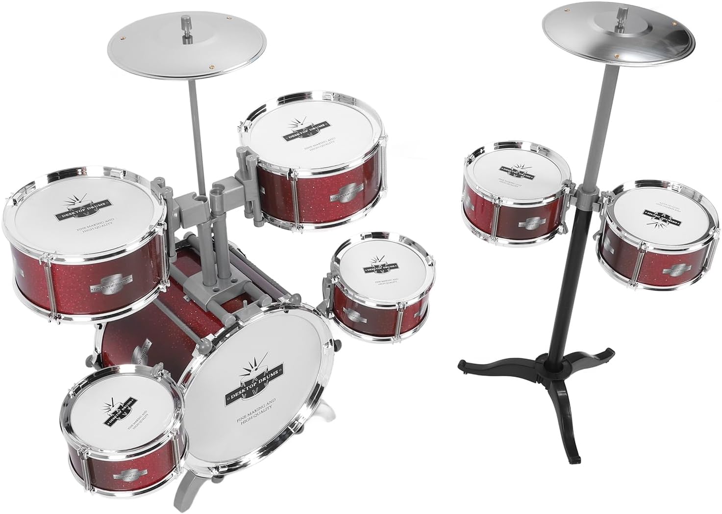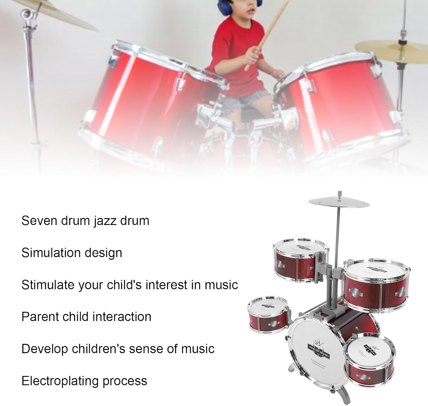 [STIMOLARE I TALENTI MUSICALI] Coltiva l'interesse dei bambini per la musica e il ritmo con questo set di batteria simulato, per i più piccoli che imparano a conoscere la musica. [Rafforzare il legame familiare] Promuovi la comunicazione emotiva tra genitori e figli con questa batteria jazz e crea interazioni divertenti attraverso la riproduzione musicale. [SICURO E DUREVOLE] Realizzato in materiale ABS, questo giocattolo a percussione è sicuro per far giocare i bambini e fornisce un suono pulito e forte musica meravigliosa. [SVILUPPA IL SENSO DEL RITMO] Sviluppa le abilità musicali e il senso del ritmo dei bambini con questo kit di batteria educativo che fornisce tutto ciò di cui hanno bisogno per iniziare a suonare la batteria. [SCELTA IDEALE] Galvanizzato per un bell'aspetto, questo strumento musicale è leggero, facile da montare ed è un ottimo per i giovani musicisti.