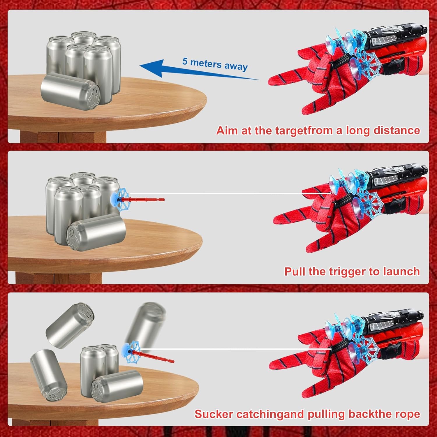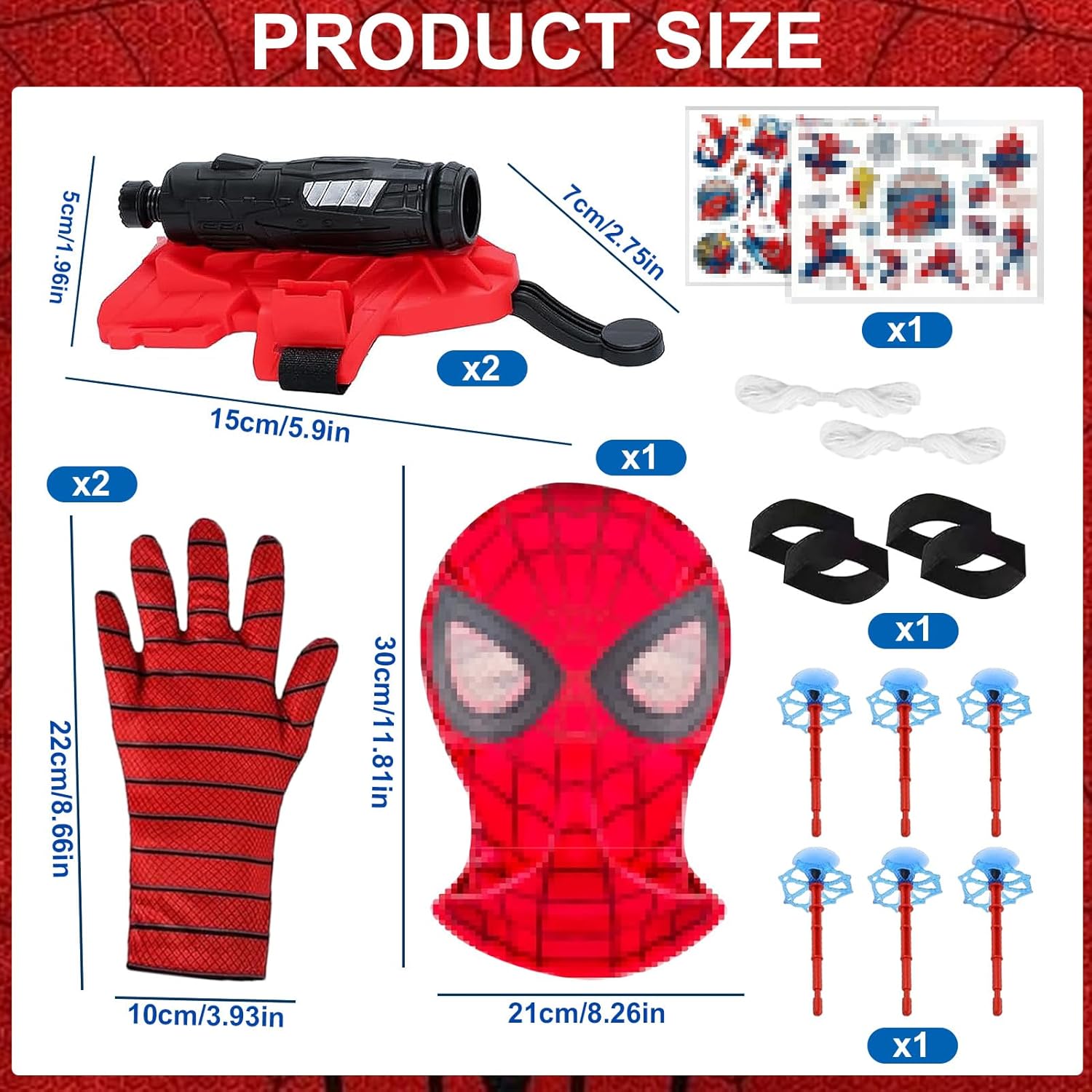 【Guanti Launcher】Il set include 2 guanto spiderm, 2 lanciatori, 6 freccette a ventosa, 2 tatuaggi spiderm, 1 maschera spiderm, 1 corda bianca. Questo guanti da lancio spiderm porta i bambini in un mondo pieno di fantasia e avventura, permettendo loro di godersi appieno il divertimento di essere un eroe. 【Materiali di qualità】Il spara ragnatele spiderm è realizzato in plastica di alta qualità, ben fatto e comodo da indossare, che non contengono sostanze tossiche e sono sicuri e affidabili, Non è innocuo per il corpo umano e può essere tranquillamente utilizzato. 【Design Unico】Ragnatele giocattoli c'è una ventosa sulla parte superiore del proiettile realizzato in plastica morbida, È sicuro e Puoi lanciarlo contro il vetro o il terreno e la ventosa succhierà sul terreno o sul vetro, molto interessante. 【Stimola creatività】I bambini possono sviluppare la propria visione del mondo e la propria missione giocando a giochi di eroi, possono immaginarsi come il loro uomo forte online preferito. Possono andare a un gioco di ruolo con i loro amici, può aumentare l'interazione dei bambini e far crescere i bambini felici. 【Ampiamente usato】Il spara ragnatele spiderm è perfetto per feste di compleanno, feste a tema, cosplay, interazioni quotidiane o altre occasioni. aumentando il senso dell'esperienza del gioco di ruolo e può essere utilizzato con altri eroi. è regalo ideale per bambino.