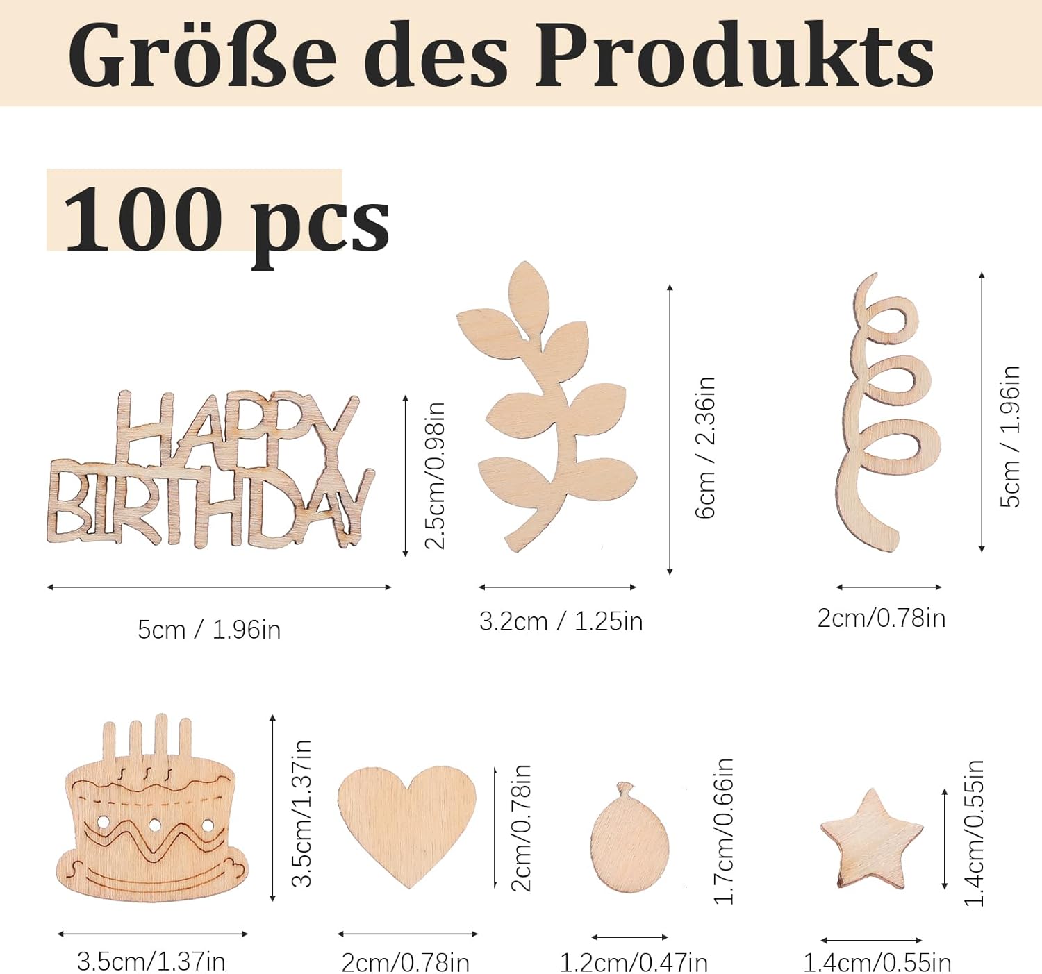 Decorazione di coriandoli di buon compleanno in legno: riceverai 100 decorazioni per la tavola di compleanno in legno, i coriandoli di compleanno in legno contengono 7 elementi: buon compleanno, torta, cuore, stelle, foglie di eucalipto, palloncini e onde. Diverse combinazioni di motivi portano un'atmosfera elegante sulla tavola del compleanno e creano un'atmosfera festosa e allegra per la festa di compleanno. Materiale premium: la decorazione da tavolo coriandoli Happy Birthday è realizzata in legno pregiato, finemente lucidato, con colore naturale del legno e tocco morbido, senza sbavature, nessun danno alla pelle, sicura e inodore, non facile da danneggiare, la decorazione in legno coriandoli può essere perfettamente integrata nella festa attiva e riutilizzabile. Decorazione creativa fai-da-te: poiché la decorazione a dispersione del compleanno è nei classici colori originali del legno, 7 forme di decorazioni per la tavola di compleanno possono decorarle e dipingerle con i tuoi colori preferiti, goderti il divertimento del fai-da-te con la tua famiglia e i tuoi amici, personalizzare i coriandoli, perfetti per tavoli di compleanno, creazione di biglietti, ecc. Le decorazioni souvenir rendono la tua festa di compleanno unica e accattivante. Decorazione perfetta: crea un'atmosfera calda con i nostri coriandoli in legno Happy Birthday. La decorazione della tavola di compleanno è perfetta per compleanni, inviti, biglietti di auguri e cornici per foto, confezioni regalo e decorazioni per la tavola, ecc. Promemoria caldo: poiché i coriandoli sono piccoli, i bambini dovrebbero usarli sotto la supervisione di un adulto per evitare di ingerirli. Multifunzionale: la decorazione della tavola di compleanno in legno è una decorazione ideale per festeggiare il tuo compleanno. Puoi stenderli sul tavolo da pranzo, sulla torta o sul pavimento, riempire palloncini, biglietti d'auguri fai da te, incartare regali e molto altro ancora. Puoi liberare la tua immaginazione per incorporare le decorazioni della tavola di compleanno negli inviti con la famiglia e gli amici o creare decorazioni per la tavola per feste e altro ancora.