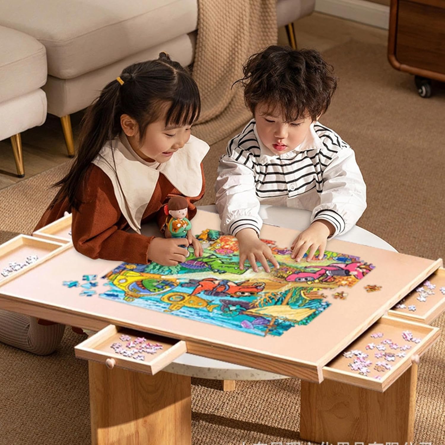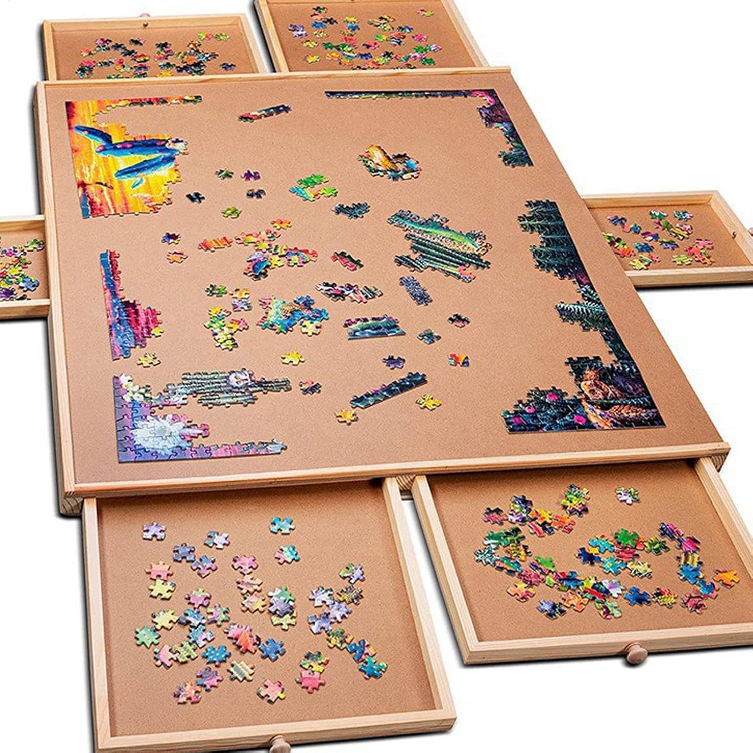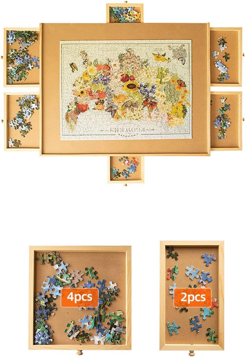Puzzle Board girevole: la nostra tavola rotante vanta un sistema di rotazione con cuscinetti a sfera, offrendo un'esperienza rilassante con la sua facile rotazione e il design stabile del giradischi. Goditi un'esperienza di puzzle perfetta mentre raggiungi facilmente qualsiasi area per soluzioni di puzzle senza soluzione di continuità Organizzazione senza sforzo: massimizza il tuo tempo di risoluzione dei puzzle con i cassetti scorrevoli rinforzati e le chiusure magnetiche della nostra tavola rotante puzzle, fornendo una conservazione sicura e un'organizzazione senza sforzo. Il tavolo puzzle include 4 robuste fodere in velluto e cassetti con codice colore per ordinare facilmente in base alla forma o al colore, garantendo che tutto rimanga pulito e protetto Materiale robusto: assembla i puzzle facilmente e liberamente con la nostra tavola rotante in legno massello, fornendo un piano morbido e vellutato che impedisce ai pezzi del puzzle di scivolare. Il suo design salvaspazio mantiene il lavoro in corso organizzato e il suo materiale robusto garantisce un'esperienza di intrattenimento stabile Bordo protettivo per puzzle: dotato di un design protettivo, i punti in silicone della nostra tavola rotante proteggono il tavolo da graffi e segni di abrasione. Inoltre, il rivestimento bianco previene i danni da pezzi ruvidi, offrendo un'esperienza sconcertante liscia e sicura ogni volta Generic Design delle dimensioni: dì addio ai pezzi disorganizzati del puzzle e ciao alla nostra tavola rotante puzzle. Progettata per adattarsi alla maggior parte dei puzzle da 1000 pezzi, questa tavola è il regalo perfetto per gli amanti dei puzzle. Misura circa 76,2 x 54,5 cm, consente di ordinare i pezzi del puzzle per colore o sezione per un uso ottimale
