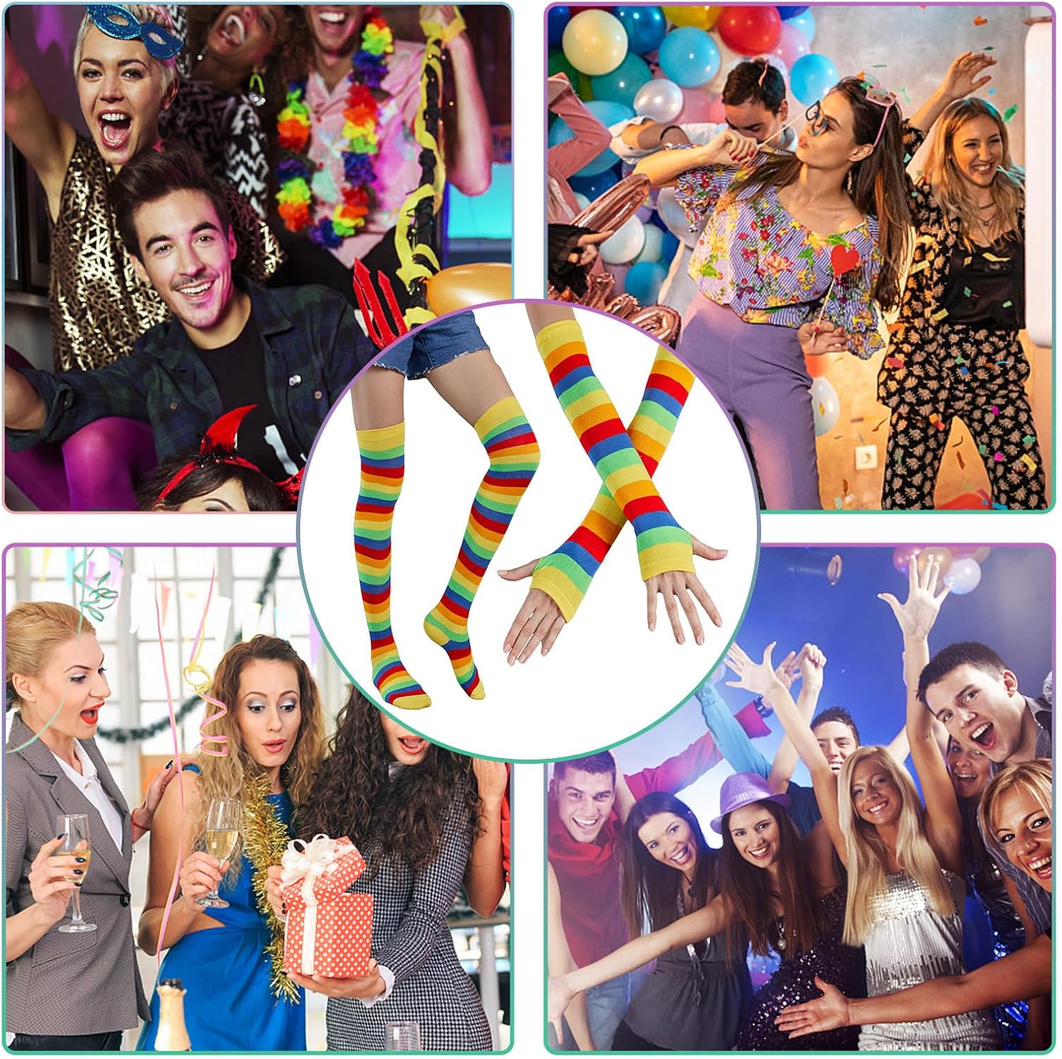 Materiale resistente: le calze e i guanti al ginocchio utilizzano fibre acriliche di alta qualità. Sono elastici, elastici, traspiranti e resistenti. Più scelta disponibile: con una varietà di colori disponibili per il set di calze al ginocchio e guanti, puoi scegliere tra multicolore, viola, nero, rosa e giallo. Comode composizioni: sono facili da indossare calze al ginocchio e guanti con i tuoi vestiti come costume cosplay, gonna, uniforme, vestito e stivali, ecc. Morbidi e comodi: le calze al ginocchio e i guanti sono comodi da indossare con una dimensione libera delle calze al ginocchio di circa 53 cm di lunghezza e guanti di circa 34 cm di lunghezza. Ampia applicazione: le calze al ginocchio e i guanti sono progettati con motivi a strisce arcobaleno, adatti per feste, cosplay, spettacoli sul palcoscenico o abbigliamento quotidiano, ecc. Ti sentirai caldo in inverno.